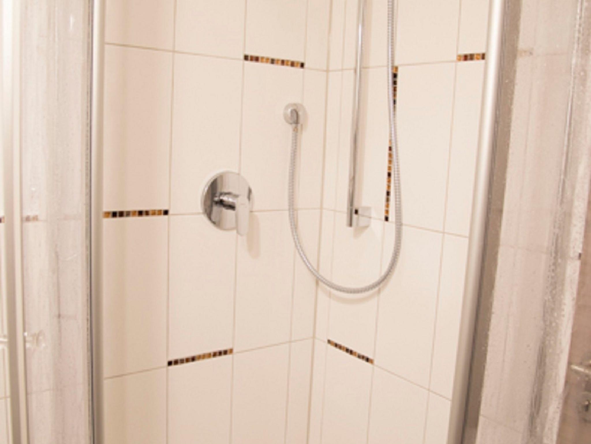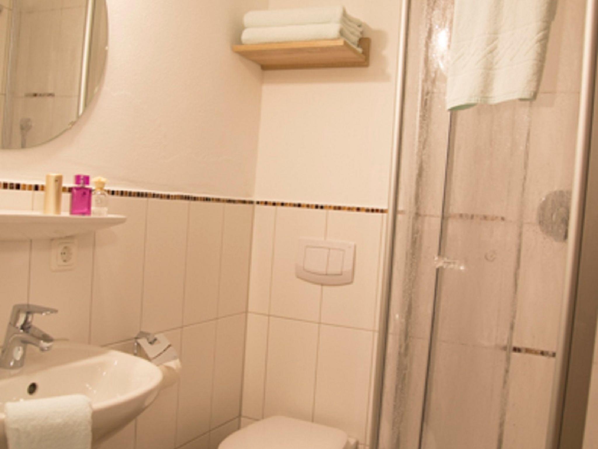 Gehobene Ausstattung mit Doppelbett, HD-Flachbildschirmfernseher und Schreibtisch, Bad mit WC, Dusche und Waschbecken, Handtücher und Föhn bekommen Sie von uns. WLAN im Zimmer verfügbar. Alle Zimmer mit Außenrollos.
