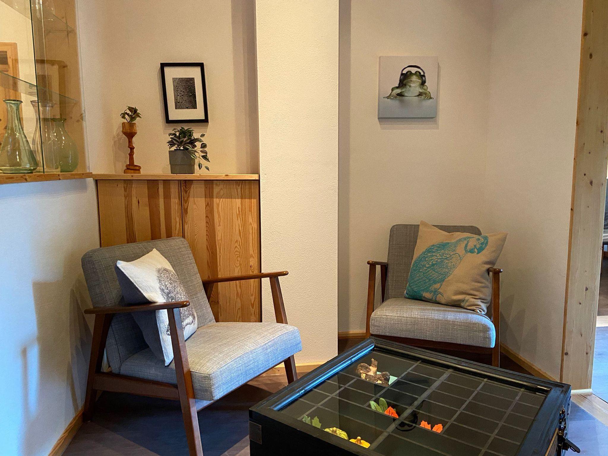 ... ein gemütliches Wohnzimmer mit angrenzender Lounge und Ausziehcouch