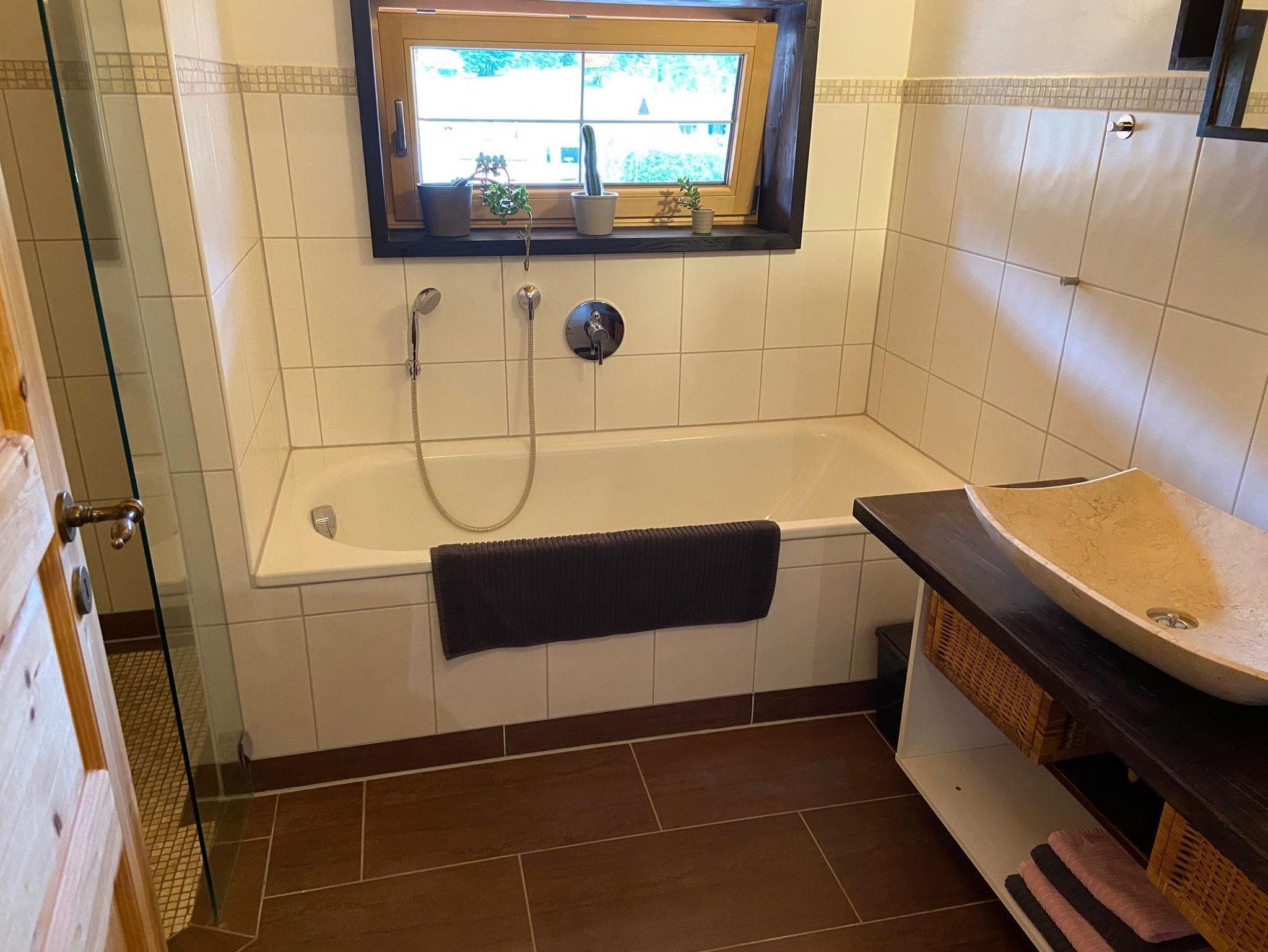 ... ein seperates Bad mit großzügiger Dusche und Badewanne
