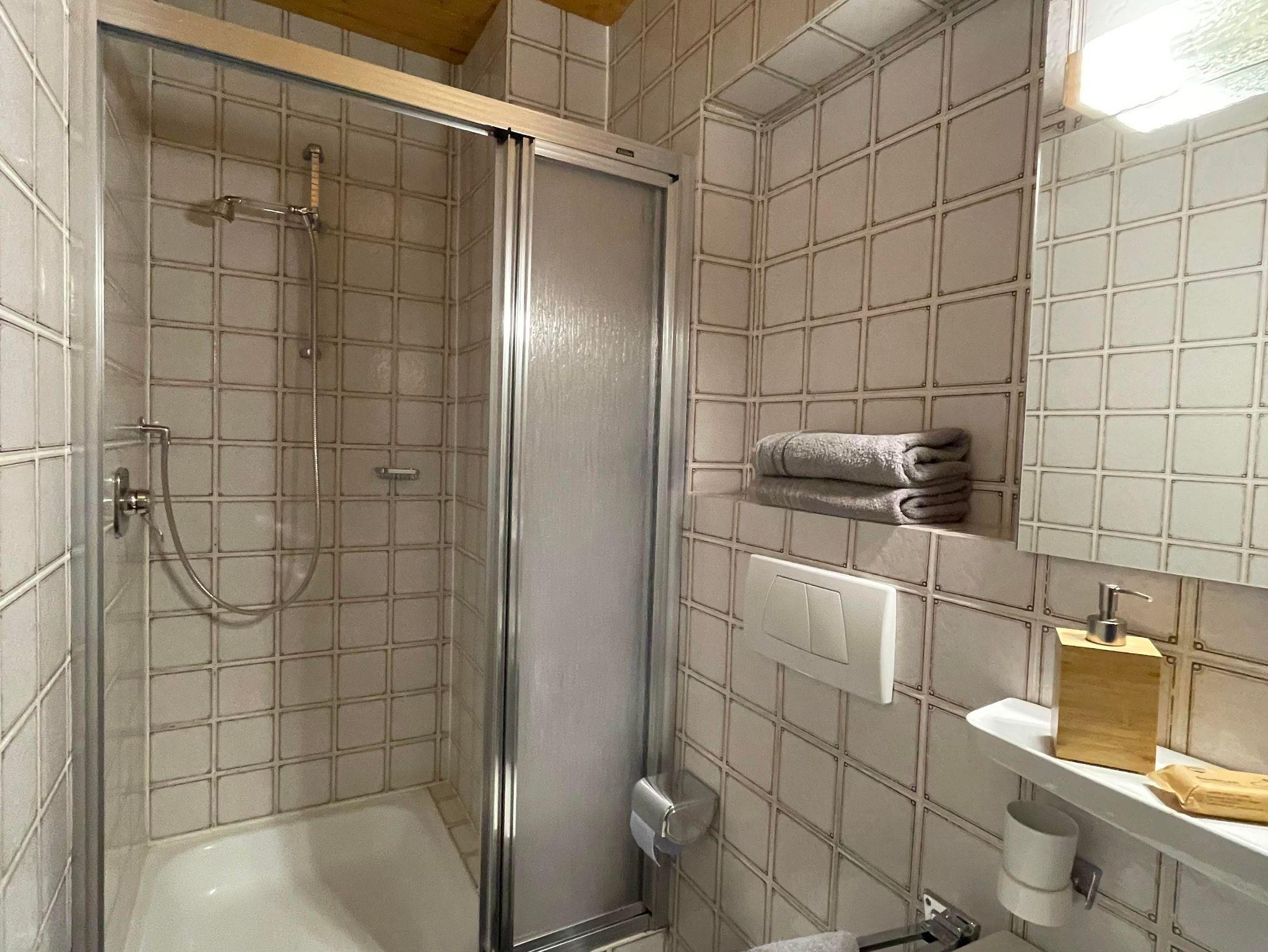 Badezimmer ist mit Dusche und WC ausgestattet.