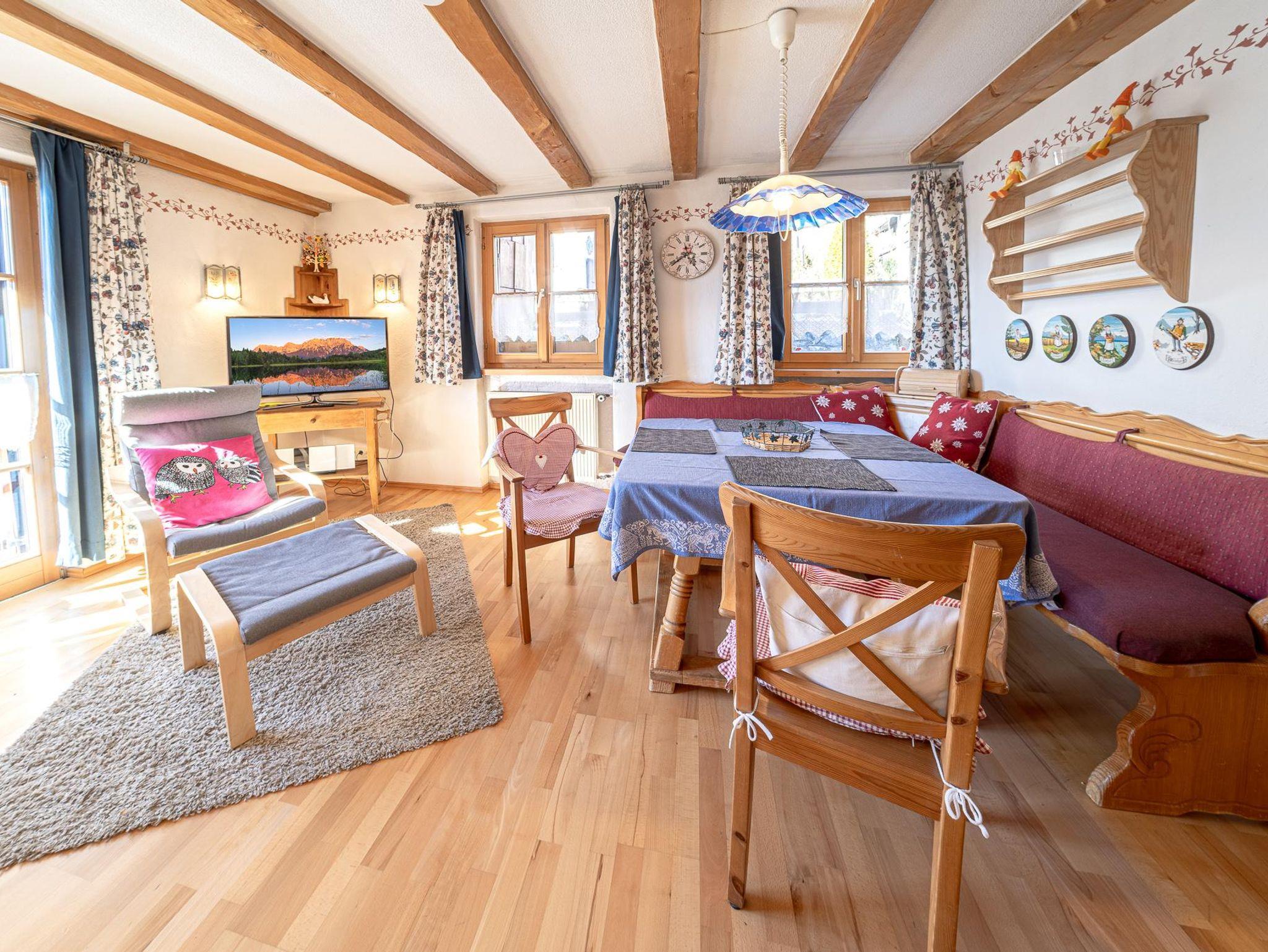 Die Ferienwohnungen liegen ca. 300 m vom Dorfplatz mit Geschäften, Restaurants und Bushaltestelle. Schöne Spazier- und Wanderwege, sowie im Winter die Langlaufloipe beginnen gleich in der Nähe. Wir bieten für Zugreisende einen Hol- und Bringdienst zum Bahnhof Klais an.