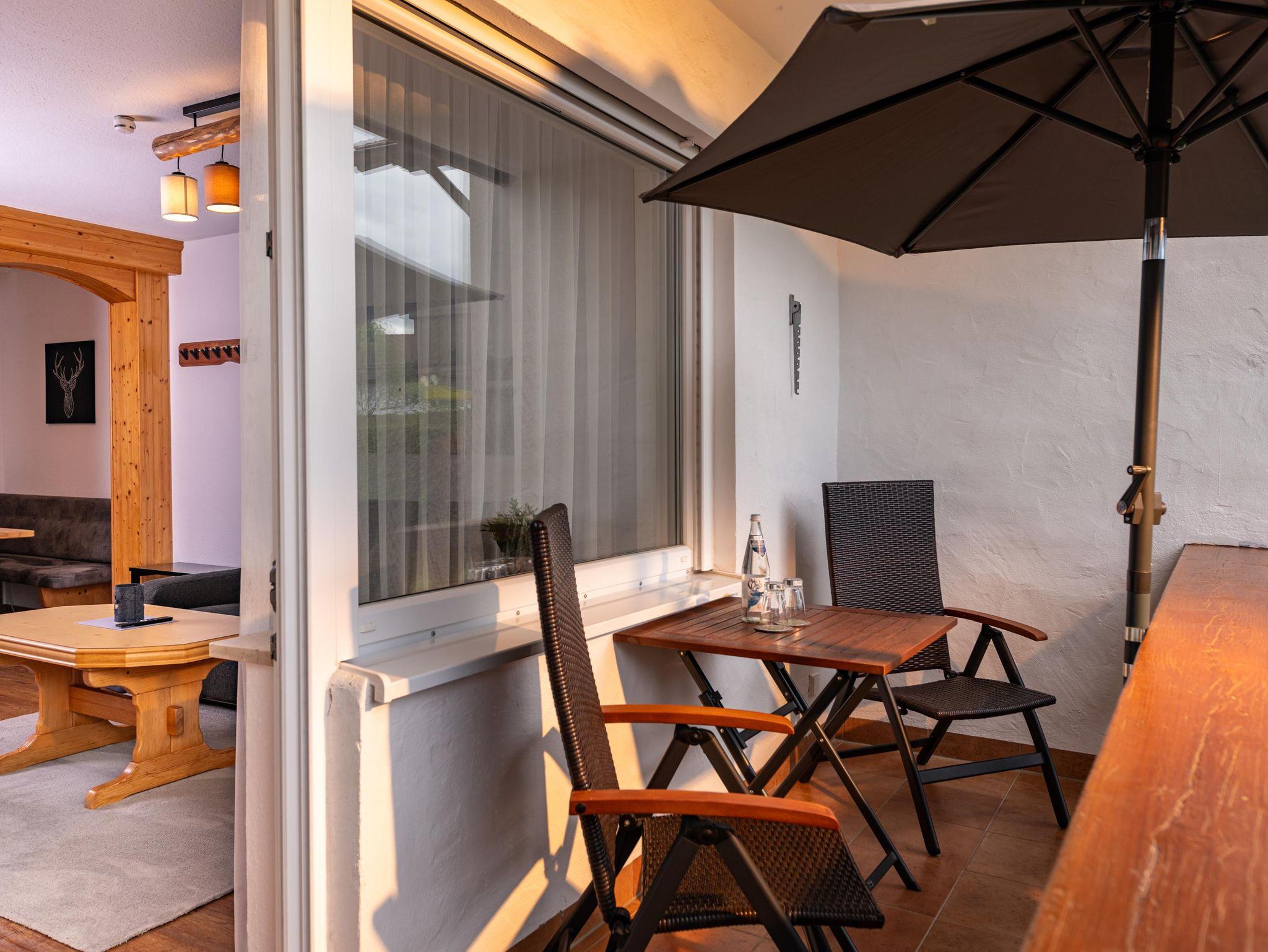 Genießen Sie entspannte Abende auf Ihrem eigenen Balkon und lassen Sie sich von der traumhaften Bergkulisse verzaubern. Die Ferienwohnung ist außerdem mit Rollläden ausgestattet, um Ihnen eine angenehme Nachtruhe zu garantieren.