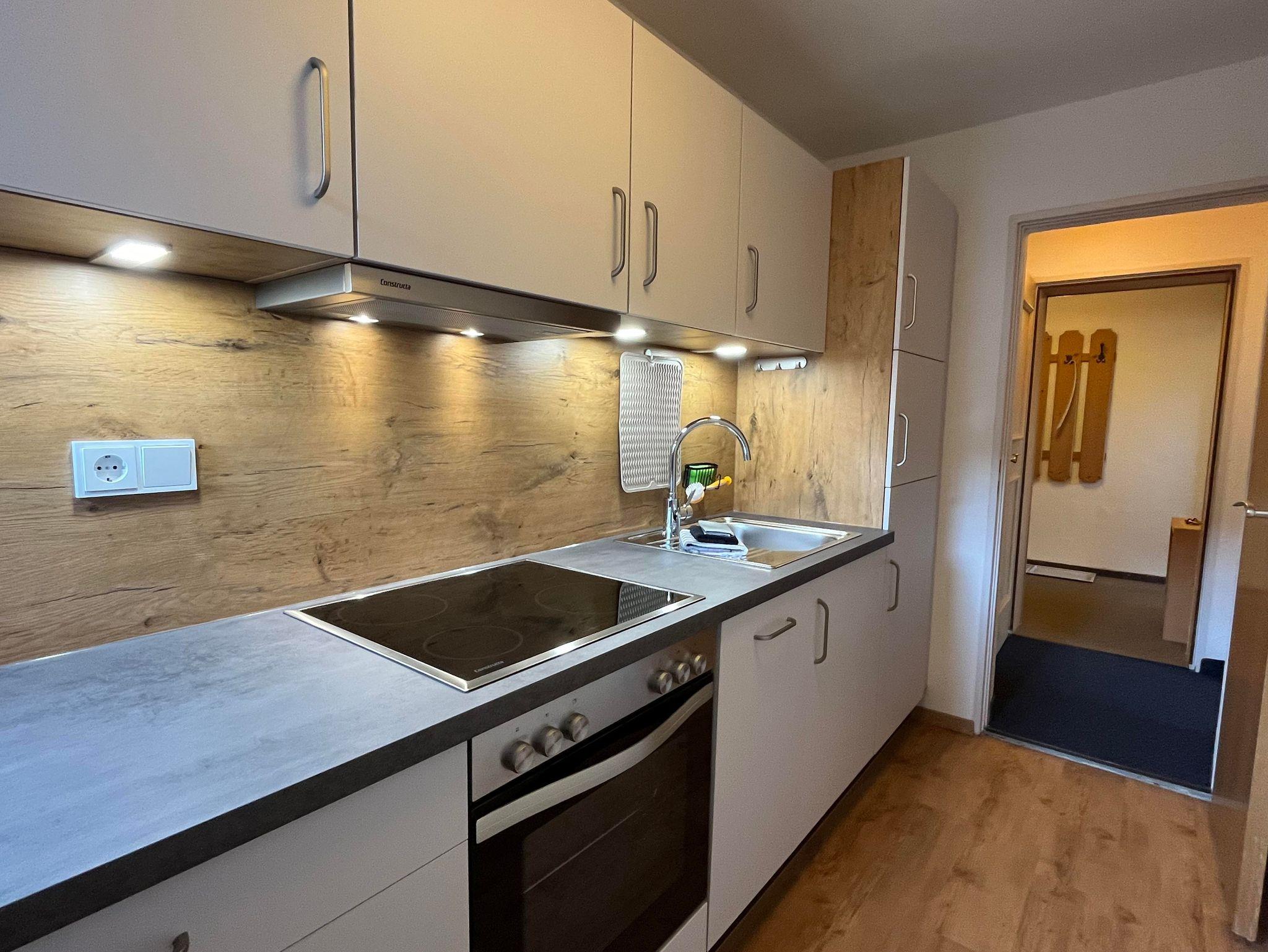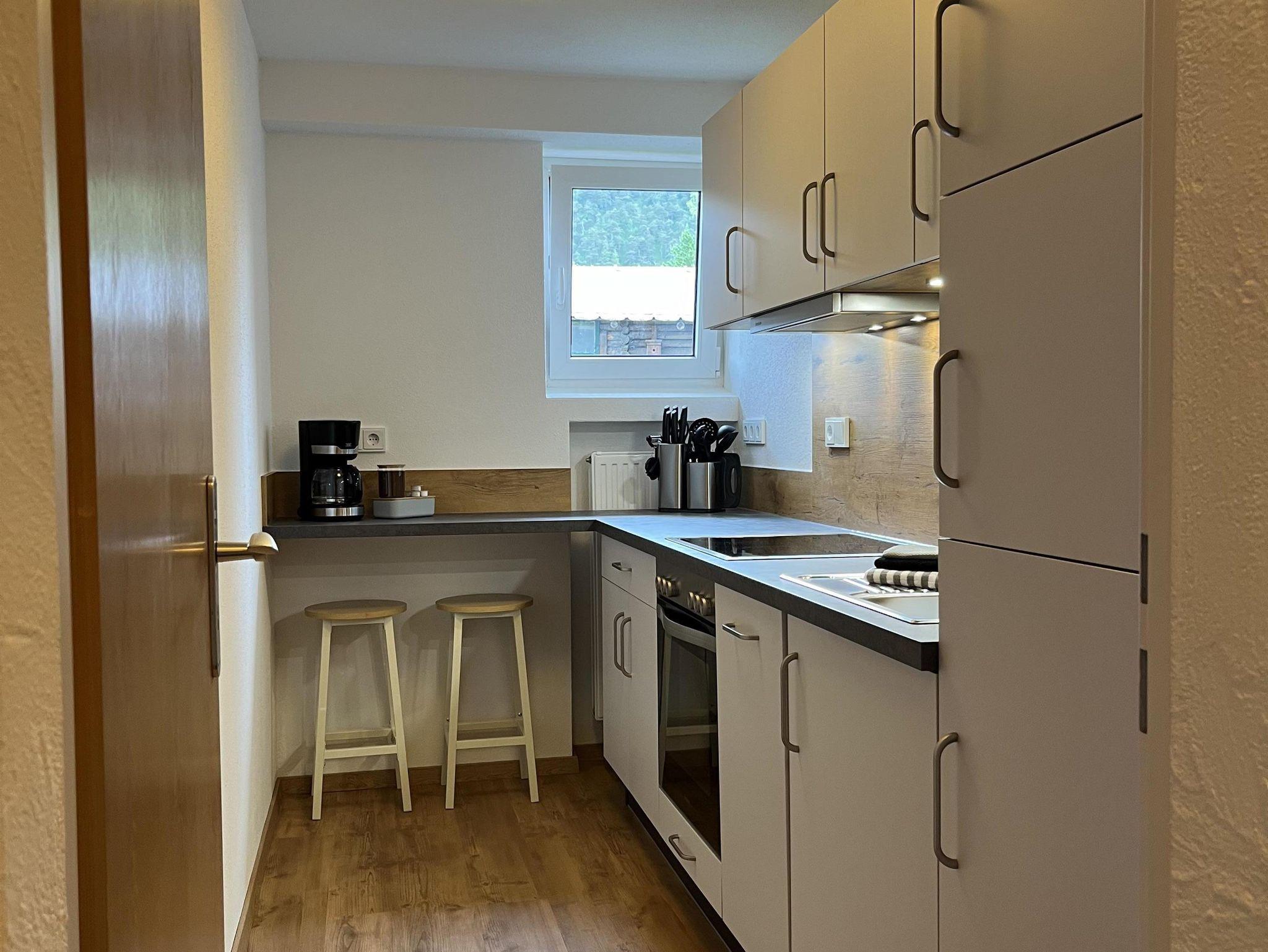 Die Ferienwohnung mit separater Küche ist um die 60m² gross und besitzt eine neue, voll ausgestattete Küche mit Kühlschrank, Backofen, Herd und Geschirrspüler. Der Wohn-Essbereich ist mit einem Esstisch und einem bequemen Schlafsofa mit Salontisch ausgestattet. Im ganzen Appartement haben Sie WLAN-Empfang.