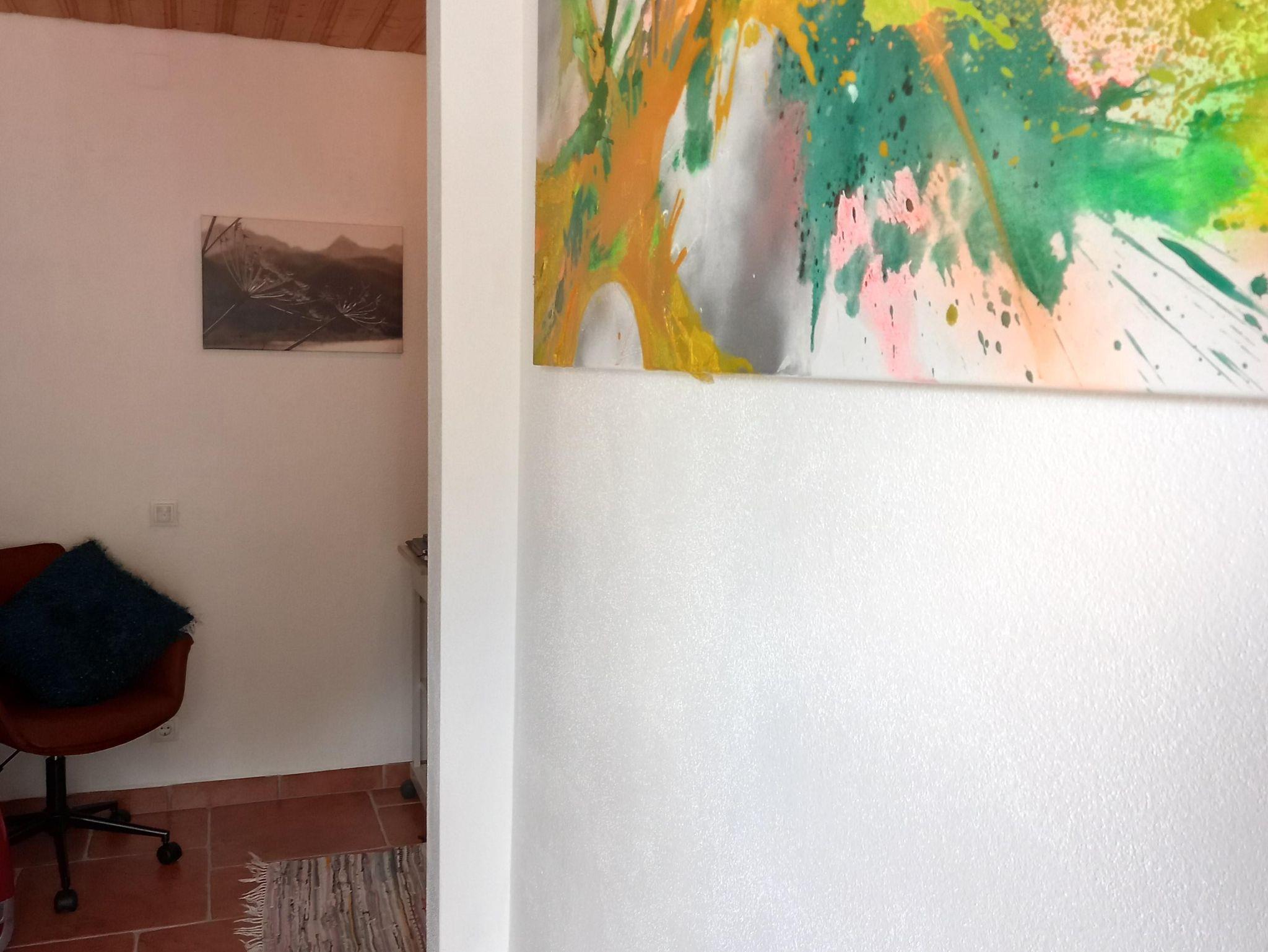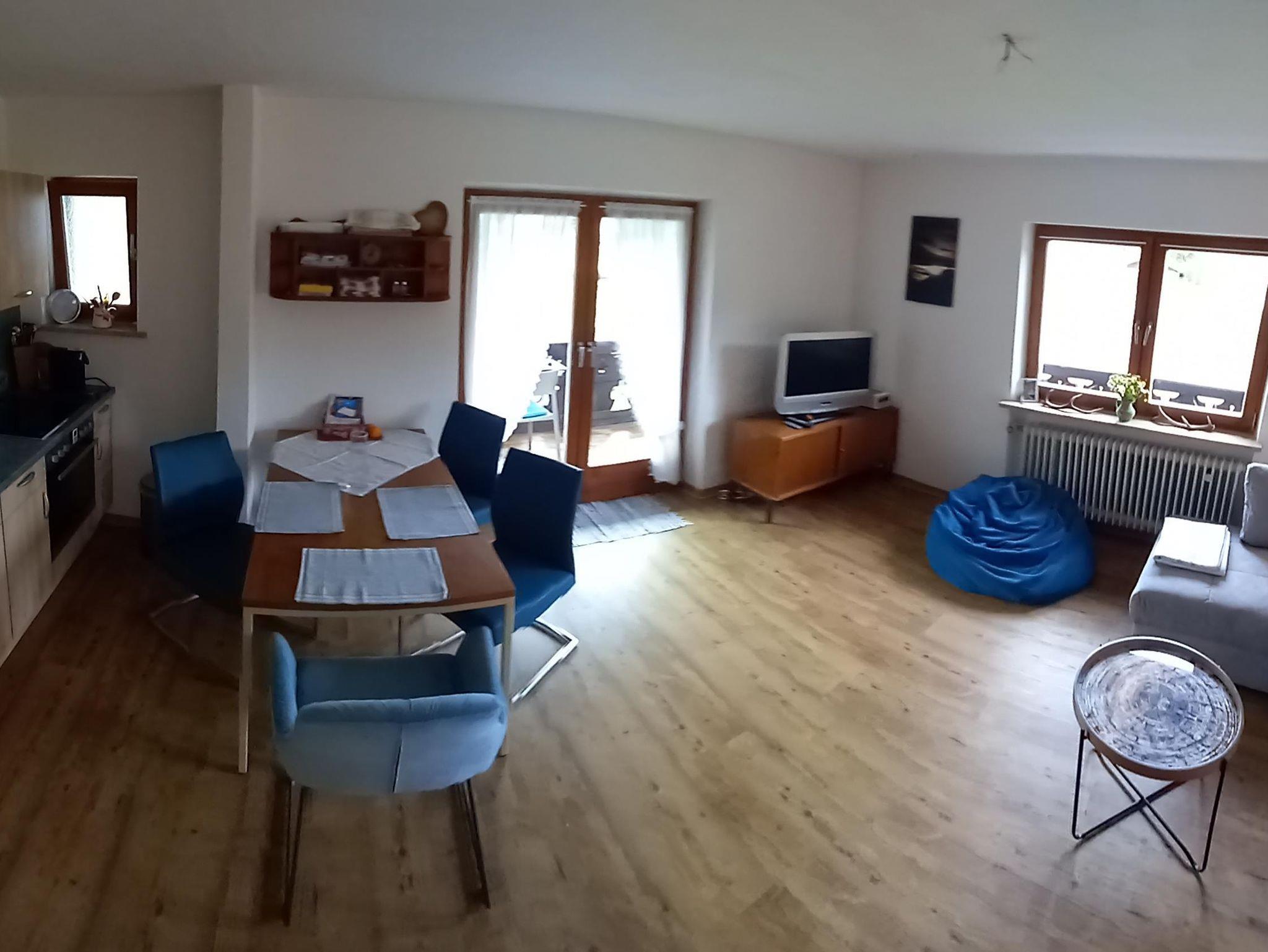Die 60 qm große, individuell eingerichtete Ferienwohnung verfügt über ein separates, alpenländisch eingerichtetes Schlafzimmer, das Wohn-/ Koch- / Eßzimmer ist liebevoll mit Familienerbstücken möbliert, die Schlafcouch kann ggfs. für 2 weitere Gäste genutzt werden. Moderne Elemente und zwei gemütliche Arbeitsbereiche runden die heimelige Atmosphäre ab. Praktische Vorrichtungen wie leistungsstarkes Wlan, 2 Fernseher, Toaster, Kaffeemaschinen, Bett- / Tischwäsche, Handtücher, Spielesammlungen und kleine Spielgeräte lassen Sie den Ferien-/ oder Homeofficeaufenthalt einfach organisieren.