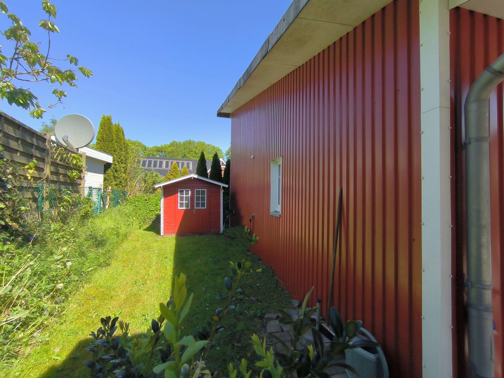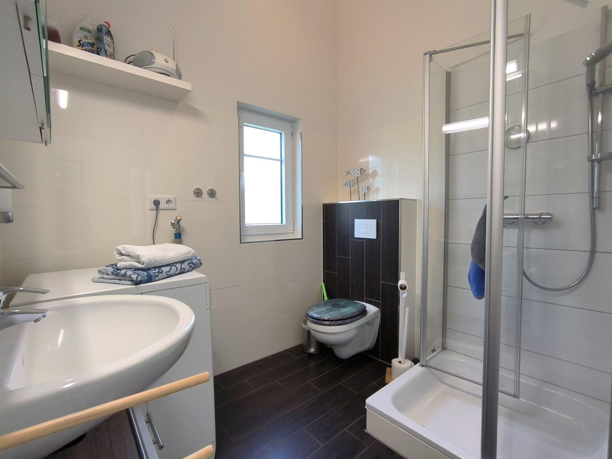 Bis zu drei Personen können sich in der Ferienwohnung Südertoft wohlfühlen: der große Wohn-, Küchen- und Essbereich ist hübsch eingerichtet und bestens ausgestattet. In der offenen Küche ist alles vorhanden, was man zum Zubereiten leckerer Urlaubsmahlzeiten benötigt (plus ein großer Gefrierschrank) und die Sofaecke mitsamt Lesesessel und Blick auf die Terrasse ist sehr gemütlich. Vom großen Wohnzimmer aus erreicht man zunächst das Schlafzimmer mit dem Einzelbett: es ist mit einem großen Kleiderschrank, dem Bett (0,90x2,00m), einem Nachtisch und einem Schreibtisch ausgestattet. Als Durchgangszimmer führt es in das Schlafzimmer mit Doppelbett (1,80x2,00m), das einen schönen Blick ins Grüne hat. Beide Schlafzimmer sind mit Plissees und Gardinen ausgestattet, die die Zimmer sehr gut verdunkeln. Das Badezimmer ist mit einer Dusche, WC, Waschbecken und Spiegelschrank ausgestattet und hat ein Fenster. Im Bad steht auch die Waschmaschine, die von den Gästen genutzt werden darf. Vor dem Eingangsbereich liegt die große Terrasse mit Gartentisch, Stühlen und einer Hollywoodschaukel: ein Sonnenschirm und ein kleiner Grill sind auch vorhanden. Der Garten, der das Mehrzweckgebäude umgibt, kann leider nicht mitgenutzt werden. Kleinkinder sind auch willkommen: vor Ort gibt es einen Kinderstuhl, ein Reisebett muss jedoch mitgebracht werden.
