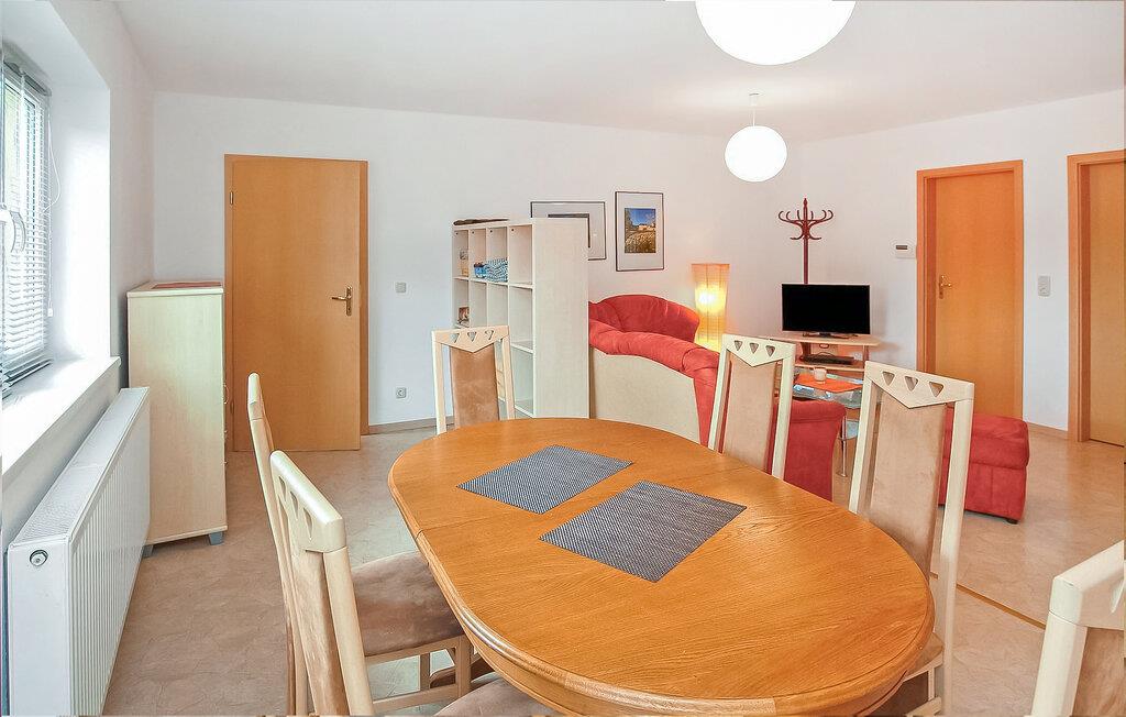 Kun få skridt væk og inden for synsvidde af Großer Kressiensee med dens smukke badeområde, ligger der to ferielejligheder for op til 5 eller 6 personer på en særejendom på cirka 700 kvadratmeter i frontområdet af et rækkehus . Der er yderligere ferieboliger på bagsiden af huset. Den cirka 75 kvadratmeter store ikke-ryger lejlighed for op til 5 voksne og 1 baby, med separat indgang, er på mezzaninen. Det har en stor stue (sovesofa, lænestol, fladskærms-tv, radio, DVD-afspiller) med spisebord og åbent, komplet køkken (elkomfur med ovn, køleskab med fryser, opvaskemaskine, diverse små køkkenmaskiner), to soveværelser (1 x 2 enkeltsenge, 1 x dobbeltseng 1,40 m bred), en lille gang og et badeværelse (bruser/toilet). Lejligheden er centralvarme og er udstyret med insektbeskyttelse på soveværelsesvinduerne. Der er også en parkeringsplads, en grill, en barneseng og en høj stol på forespørgsel og en robåd på forespørgsel. Slutrengøring, sengelinned og håndklæder samt vand- og energiforbrug er inkluderet i den samlede pris. Strietfeld er et lille, roligt distrikt i Walow kommune midt i Mecklenburgs sødistrikt og ligger i et område rigt på skove og enge direkte ved Großer Kressinsee. Udover sin fremragende vandkvalitet byder den på et stort, velholdt badeområde med badebro og også ideelle forhold for lystfiskere. Der er en gård i byen, der regelmæssigt giver friske æg. Kölpinsee og Fleesensee samt Müritz og Plauer See ligger også tæt på Strietfeld. De nærmeste byer med et udvalg af indkøbsmuligheder og seværdigheder er Malchow (ca. 12 km), Röbel/Müritz (ca. 18 km) og Waren (Müritz) (ca. 18 km). Malchow, for eksempel, tiltrækker med en sommerkælkebakke, en abeskov, det fredede klosterkompleks og svingbroen, et teknisk monument. I Röbel er der blandt andet Müritztherme, et stort eventyrbad, og i Waren (Müritz) er Müritzeum, naturoplevelsescentret med et stort ferskvandsakvarium, et populært udflugtsmål. Derudover er der forskellige restauranter, caféer, passagerbådsselskaber og udlejningsmuligheder for cykler, både osv. i alle byer.