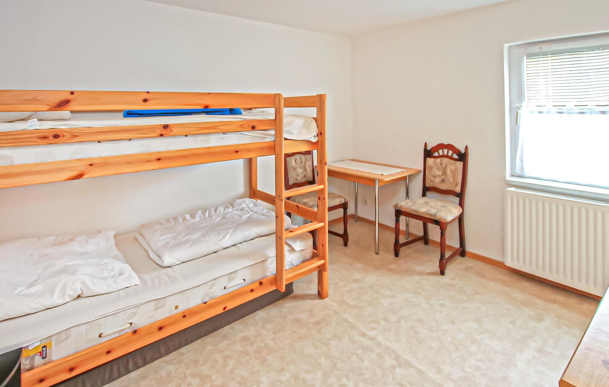 Kun få skridt væk fra det smukke badeområde ved Großer Kressinsee ligger to ferielejligheder til hver op til 7 personer (inklusive 1 lille barn) på en cirka 2.000 kvadratmeter stor indhegnet naturgrund bagerst i en rækkehus. hus. Der er yderligere ferieboliger i den forreste del af huset. Den cirka 55 kvadratmeter store ikke-ryger lejlighed for op til 6 voksne og 1 lille barn (3 år) ligger i stueetagen og har separat indgang. Der er en stor stue (sovesofa - ekstra seng til 2 personer, fladskærms-tv, radio/cd-dvd-afspiller) med åbent køkken (elkomfur med ovn, køleskab, mikroovn, diverse små køkkenmaskiner), to soveværelser (1 x 2 enkeltsenge, der kan slås sammen, barneseng, 1 x køjeseng), badeværelse (bruser, toilet, hårtørrer). Lejligheden er centralt opvarmet og har insektnet på vinduerne, entre og en møbleret terrasse. Der er også parkeringspladser til begge lejligheder, en lille legeplads på ejendommen (rutschebane, sandkasse, fodboldmål, basketballkurv), bordtennisbord, grill, ryger, fælles overdækket opholdsområde, liggestole, cykelrum ( aflåselig) og en robåd (anker 4). , fisketegn og en vandløber til rådighed. Mulighed for cykeludlejning efter aftale. Den samlede pris inkluderer slutrengøring, el og vand samt fisketegn og brug af båden. Medbring venligst dit eget sengelinned og håndklæder eller leje dem mod et gebyr. I denne ejendom er et kæledyr tilladt med en maksimal højde på 40 cm. Strietfeld er et lille distrikt i Walow kommune midt i Mecklenburgs sødistrikt og ligger i et skov- og engrigt område direkte ved Großer Kressinsee. Udover et stort og velholdt badeområde med badebro, giver dette også optimale forhold for lystfiskere. Der er en gård i byen, hvor friske æg regelmæssigt er tilgængelige. Kölpinsee og Fleesensee samt Müritz og Plauer See ligger også tæt på Strietfeld. De nærmeste byer med forskellige indkøbsmuligheder og turistattraktioner er Röbel (ca. 18 km væk), Waren (ca. 18 km væk) og Malchow (ca. 13 km væk). Der er blandt andet et vandland i Röbel, Malchow, for eksempel, tiltrækker med den fredede svingbro og i Waren er Müritzeum, naturoplevelsescentret med et stort ferskvandsakvarium, en destination. Der er også forskellige restauranter, caféer, passagerbåde osv. i alle byer.