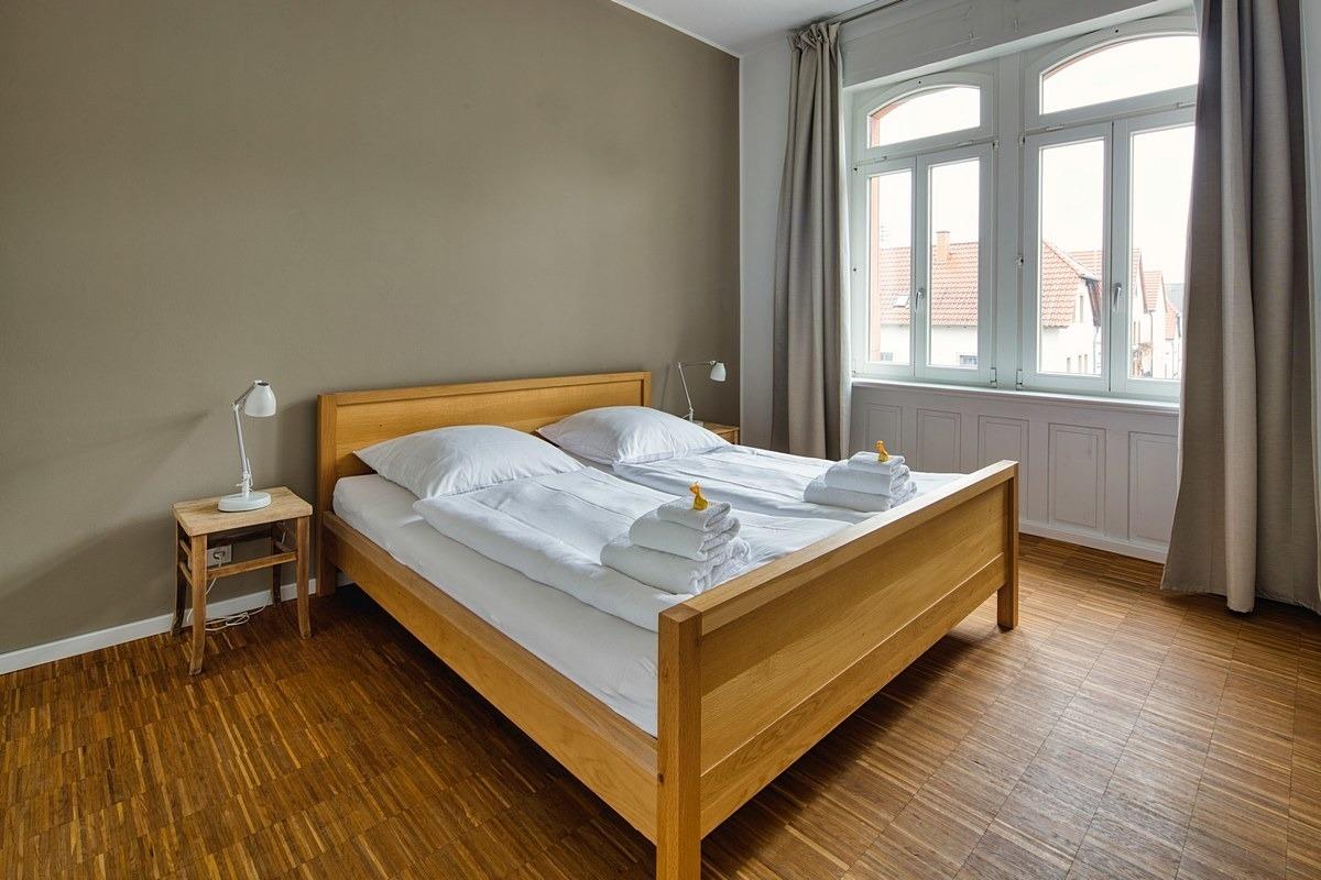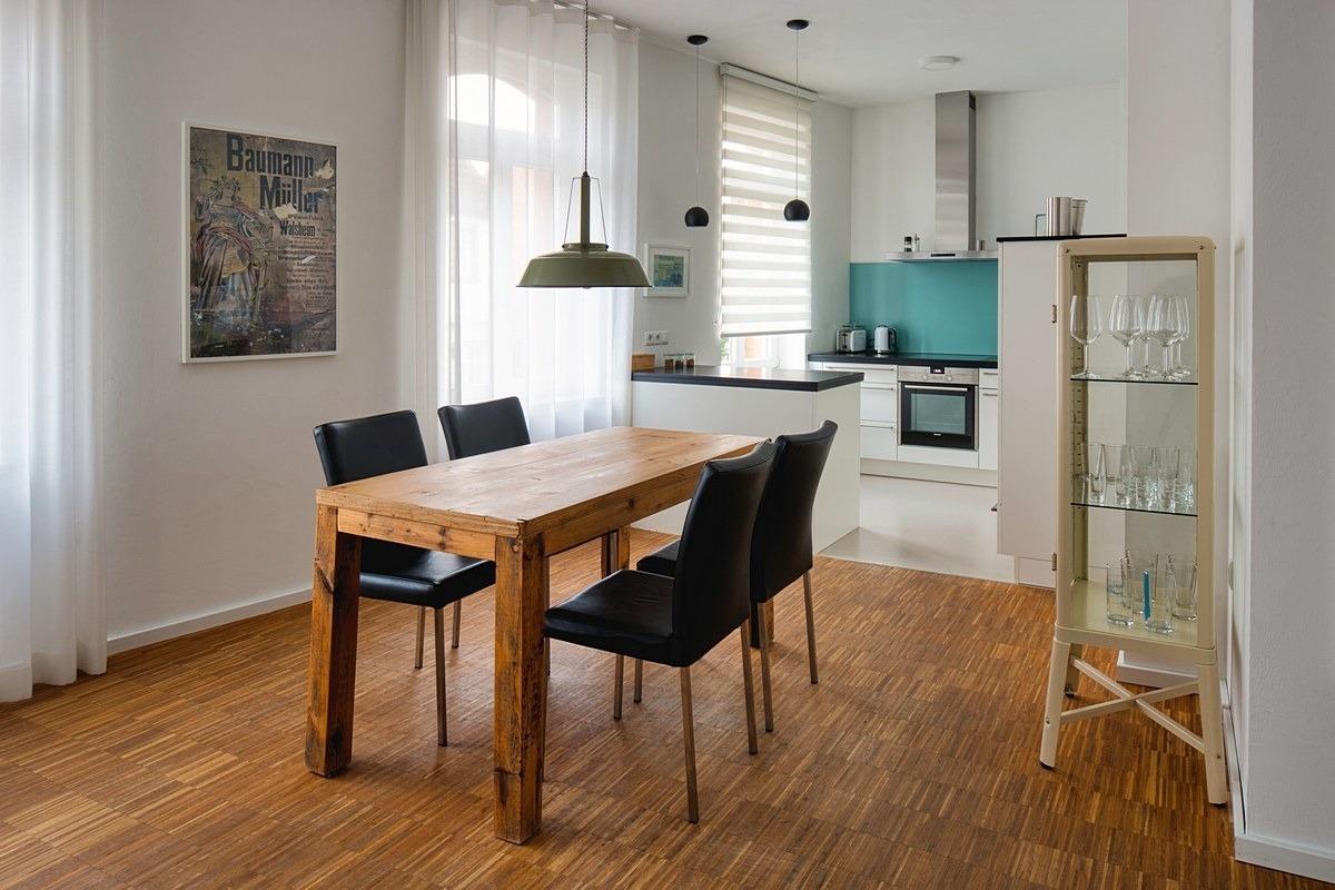 Parkettboden und eine schlicht-moderne (und geschmackvolle) Einrichtung, gepaart mit der großzügigen Altbauhöhe der Wohnung – hier könnt Ihr problemlos und mit Freude gut und gerne mehrere Wochen genussvoll verbringen.