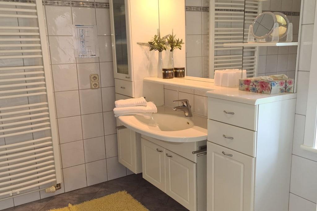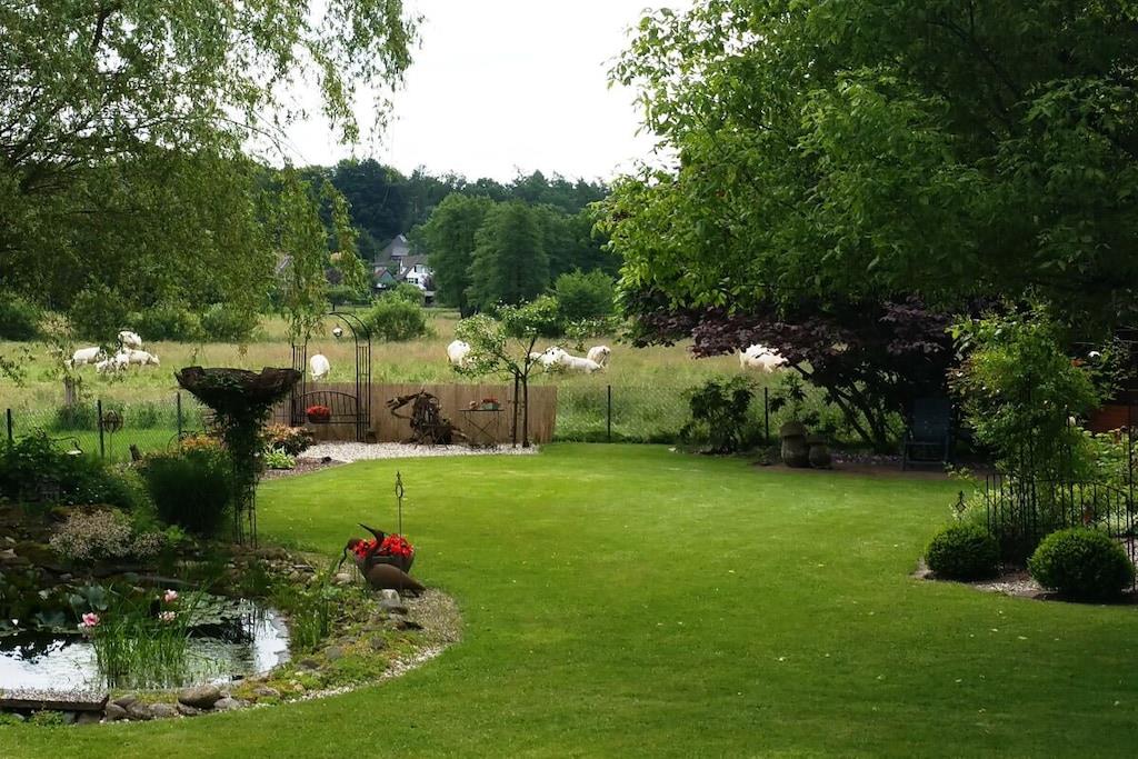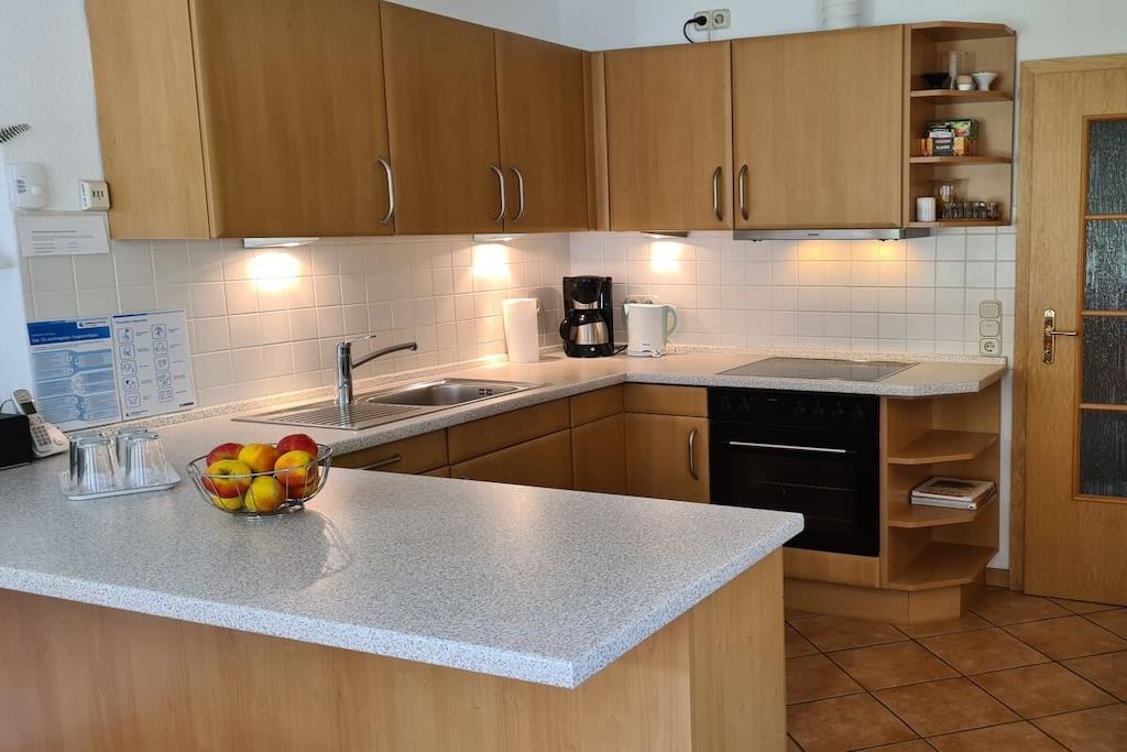 Ferielejligheden på 78 kvm har separat indgang, to separate soveværelser og en stue med integreret køkken. Badeværelset har bruser, toilet, spejlskab og håndvask. Der er hårtørrer. Stuen har satellit-tv og stereoanlæg. Telefon og internetadgang er også tilgængelige. Terrassen er møbleret med et havebord, stole og to liggestole. Der er grill. En markise giver skygge. Der er en parkeringsplads i gården.