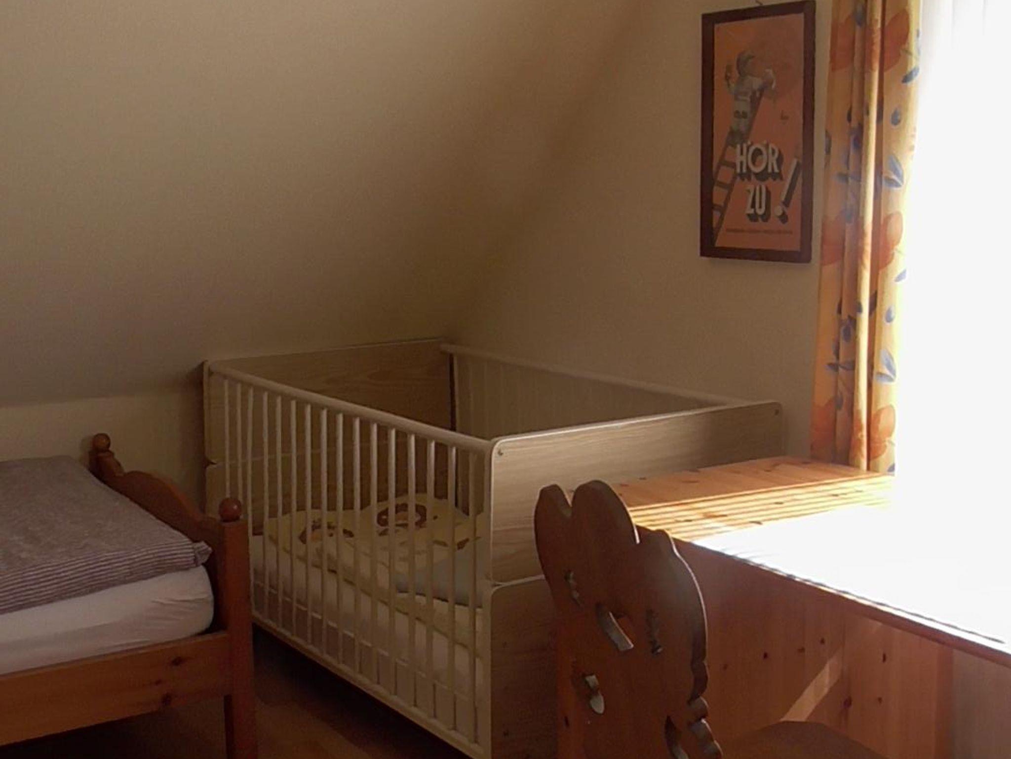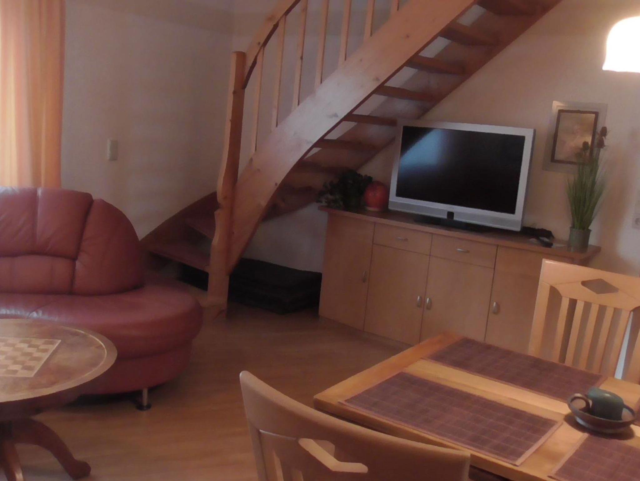 Im Erdgeschoss befinden sich Wohn-/Esszimmer, Schlafzimmer mit Doppelbett, Dusch-Bad und die voll ausgestattete Küche. Das Obergeschoss verfügt über zwei Schlafzimmer mit jeweils zwei Einzelbetten. Zusätzlich ist ein Kinderbett vorhanden; auch ein Kinderstuhl.