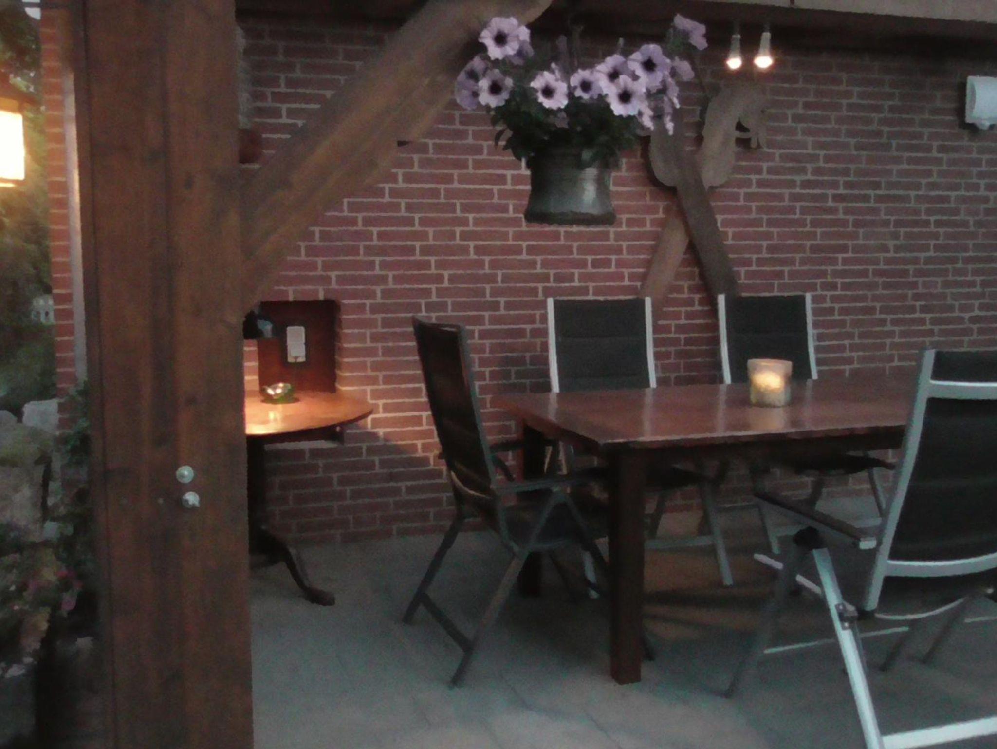 Im Außenbereich gibt es eine überdachte Terrasse, sodass wegen eines kleinen Regenschauers die Grillparty nicht abgebrochen werden muss. Die Grillkohle ist nicht im Mietpreis enthalten.