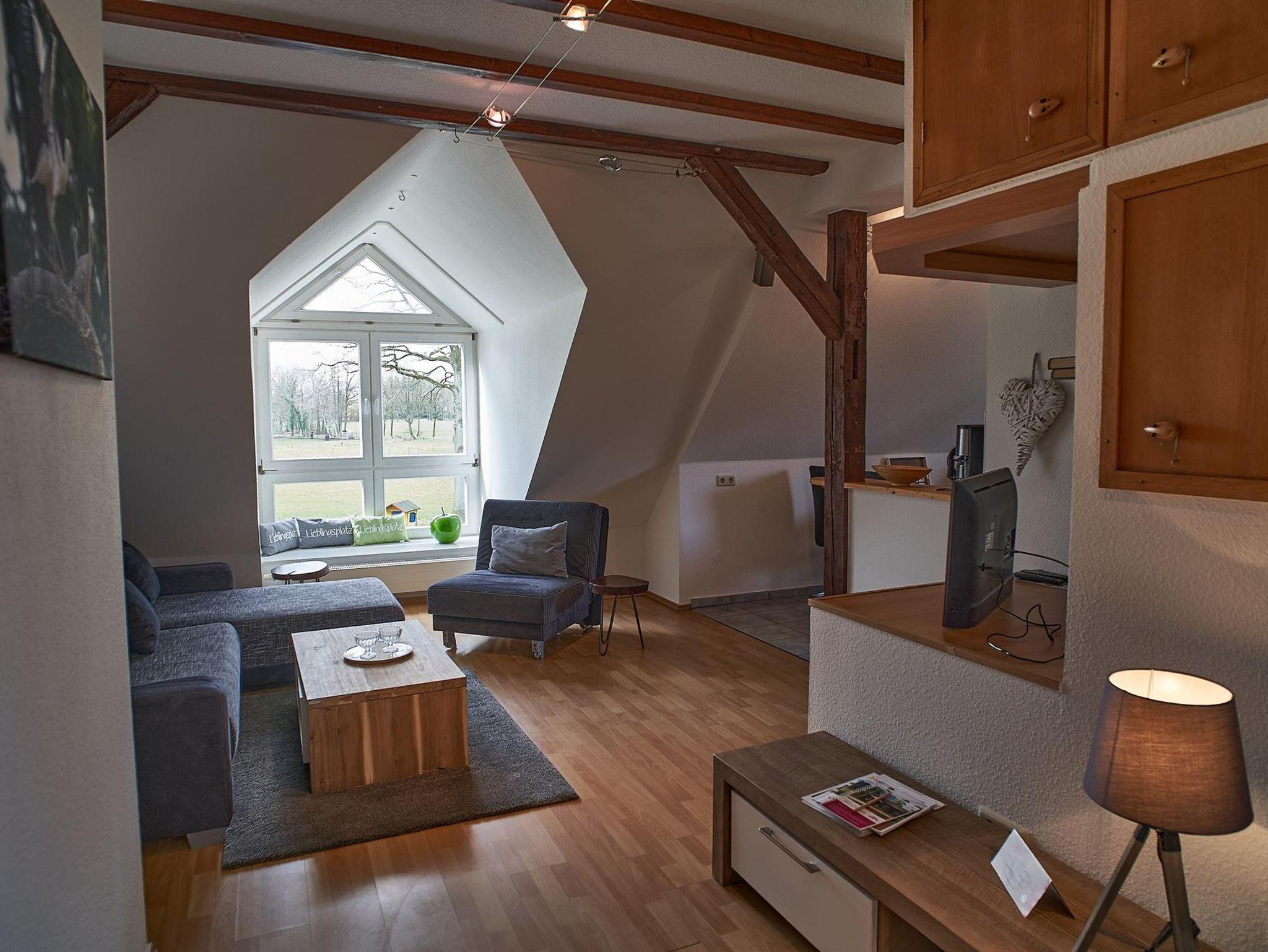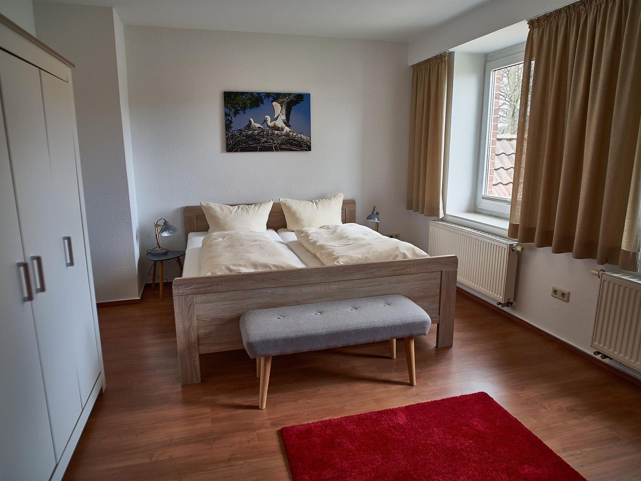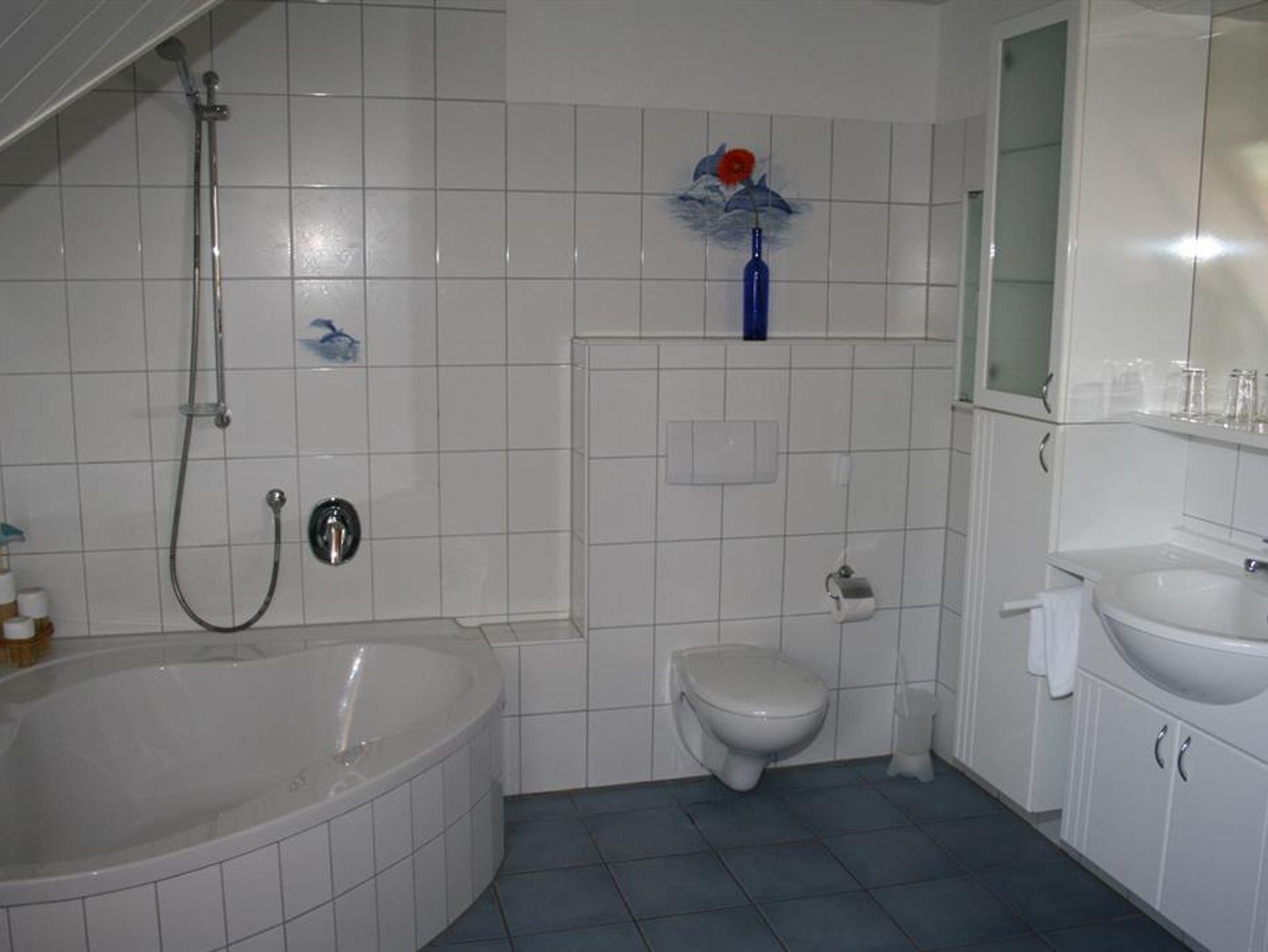 Fewo Storchenblick 90m², 2 Schlafräume, 1 Wohnraum, Eckwanne mit Dusche