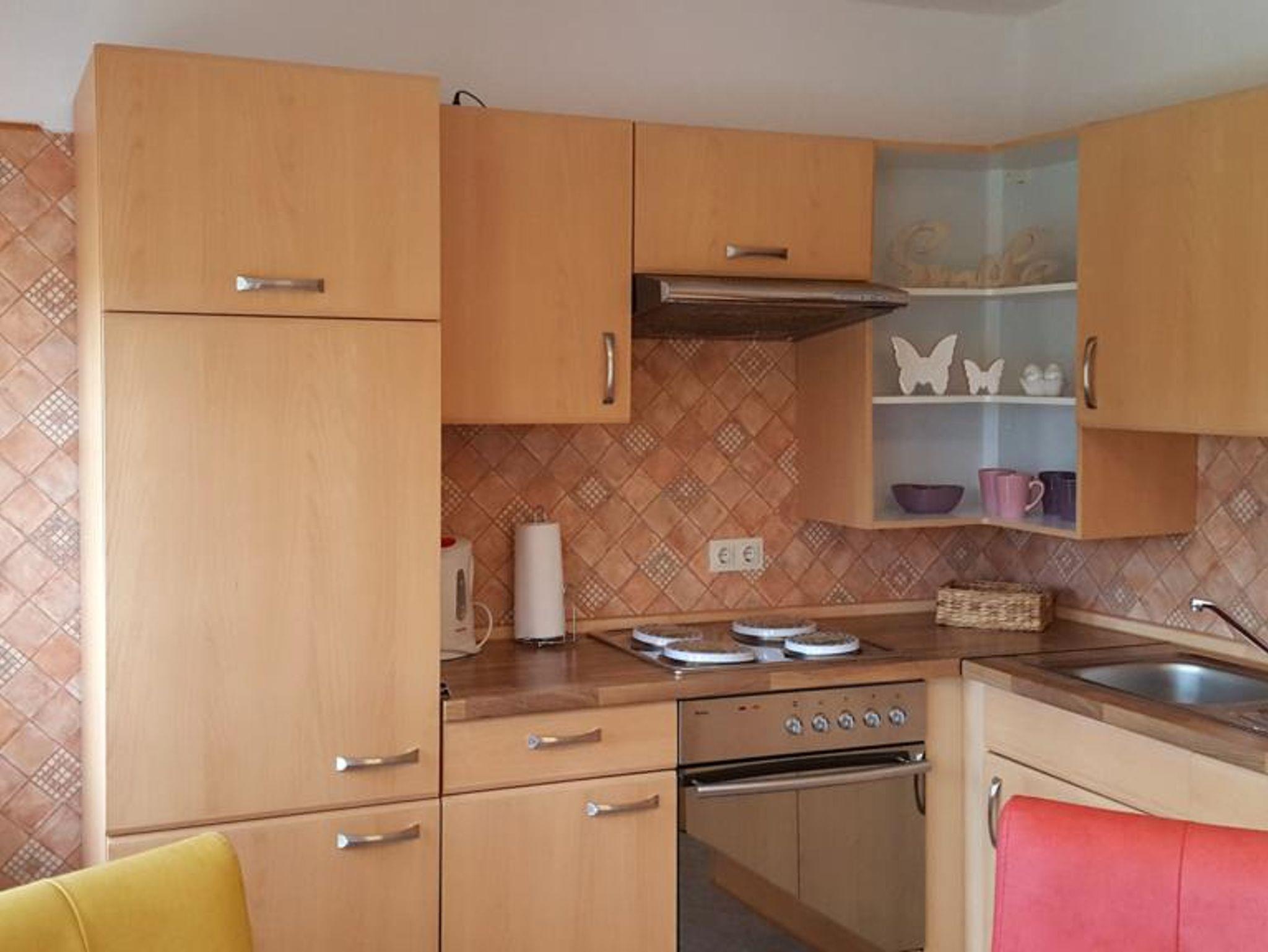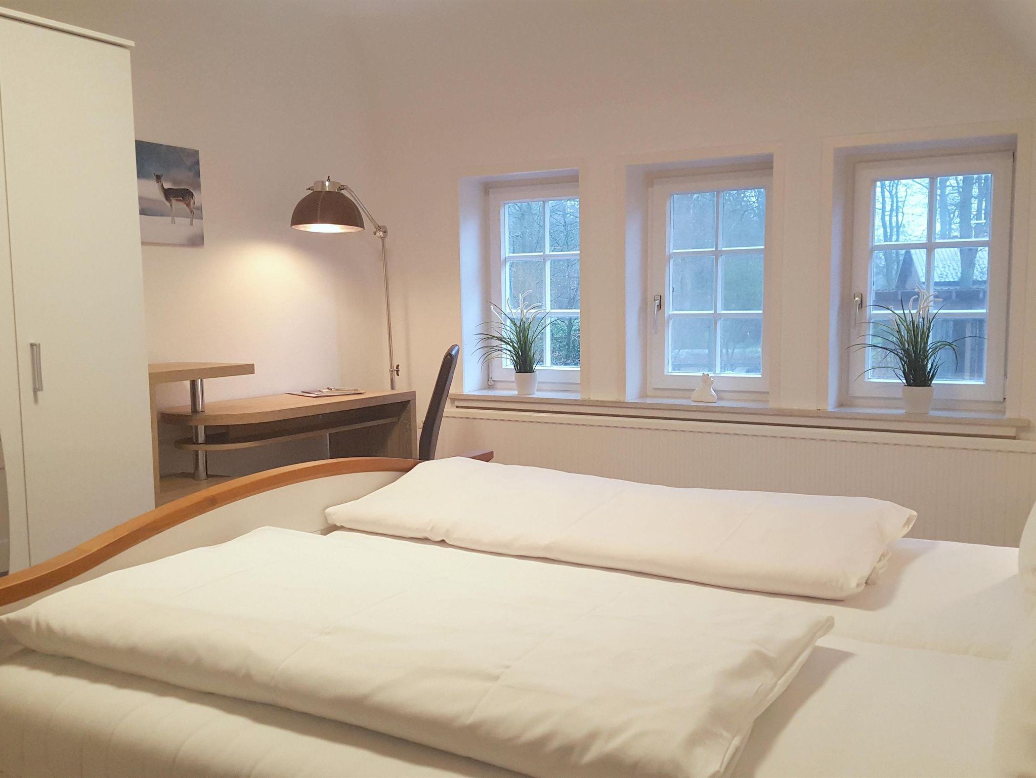 2 Schlafzimmer, 1 Wohn- Essraum, Küche mit Frühstückstheke, Bad mit Dusche WC, Ausblick auf die Teichanlage