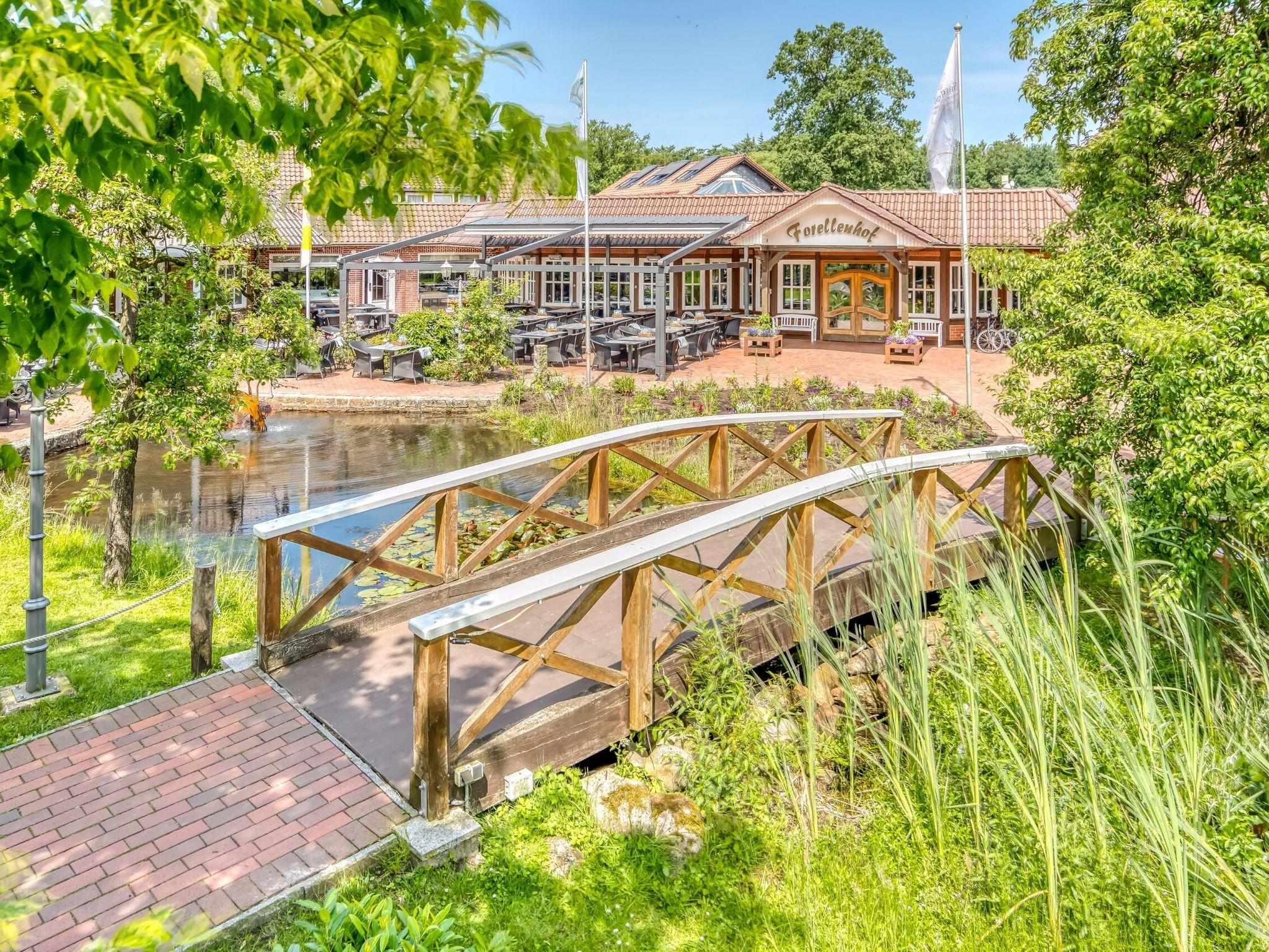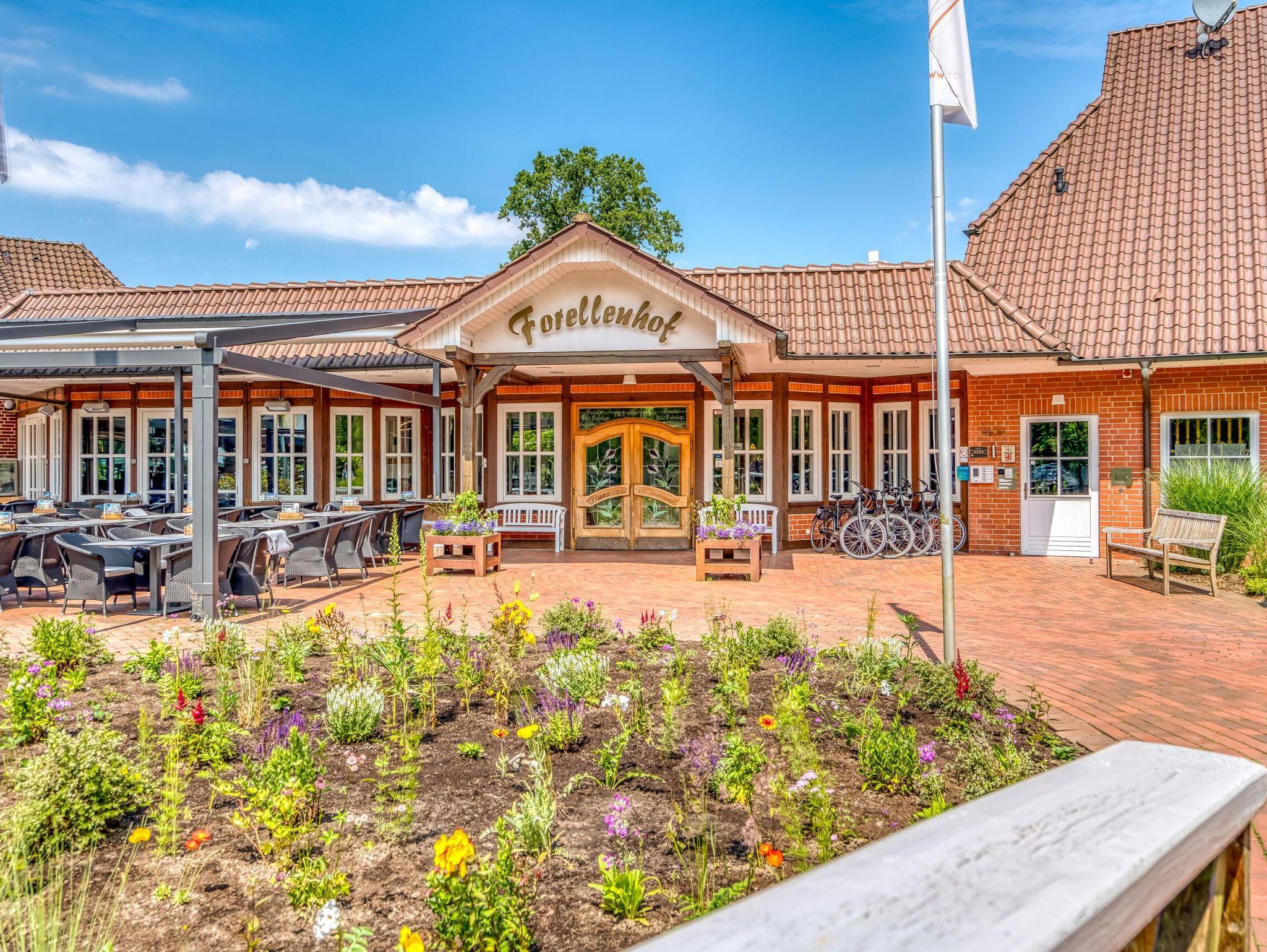 Gastlichkeit durch' s ganze Jahr! Ruhe und Entspannung - zwei unschätzbare Werte unserer Zeit. Wir möchten Ihnen mit unserem Haus, dem Forellenhof Walsrode - ein Familienbetrieb mit viel Tradition, als Quelle neuer Energien und Tatendrang dienen. In ländlicher Idylle und komfortablem Ambiente. Aktiv faulenzen und erholen. Prasselndes Kaminfeuer, wohlige Saunawärme, ein Hauch von Luxus, unvergessliche Stunden voll Lebensfreude, kulturelle Erlebnisse, Radwander-Touren durch unberührte Natur und professionell ausgearbeitete Ferien-Programme. Wir machen selbst das scheinbar Unmögliche für unsere Gäste möglich. Erleben Sie die Vier Jahreszeiten in unserer Hotellerie und Gastronomie in der schönsten Gegend Norddeutschlands. 121 Hotelbetten im Haupt- und Gästehaus, u. a. eine Hochzeitssuite; 3 Ferienwohnungen; div. Seminarräume für bis zu 450 Personen, alle notwendige, technische Tagungstechnik; Banketträume, großer Saal mit Bühne; großzügiges, gemütliches Restaurant mit großer Außenterrasse; rustikale Schnuckenstube an der hauseigenen Brauerei mit Biergarten; individuelle Arrangements für Übernachtungen; Hochzeitskutsche; Planung und Ausführung touristischer Arrangements bis hin zu den beliebten Kutschfahrten. Kostenfreie Nutzung des Wellnessbereichs mit finnischer Sauna, Biosauna und Fitnessgeräten, Leihfahrräder, Kinderspielplatz am Hotel, behindertenfreundliche Zimmer, stufenloser Hotel- und Restaurantbereich. Das Hotel Forellenhof ist bekannt für seine professionelle Ausrichtung von Tagungen und Seminaren und Firmen-Events aller Art. Wir haben u. a. die spezielle Technik für Produktpräsentationen. Auch Outdoor-Tagungen und Rahmenprogramme für Tagungen und Seminare sind immer wieder eine kreative Herausforderung, der wir uns gerne stellen. Für Bankette - von rustikal bis exklusiv - und für die hervorragende Ausrichtung von Hochzeiten und anderen Feierlichkeiten hat der Forellenhof das professionelle Know How und einen erstklassigen Ruf im weiten Umland. In unserem stilvollen Restaurant - Spezialitäten der Region erforschen - wir servieren Saisonales aus Küche und Keller - trinken Sie ein zünftiges, erfrischendes Schnuckenbräu-Bier aus der hauseigenen Brauerei in unserer Kutscherdiele - lassen Sie sich von unserem Service auf unserer Sonnen-Café-Terrasse am Fontänenteich mit Kaffee und Kuchen verwöhnen - wir sind an 365 Tagen für Sie da! Herzlich willkommen - Ihre Familie Fuhrhop.