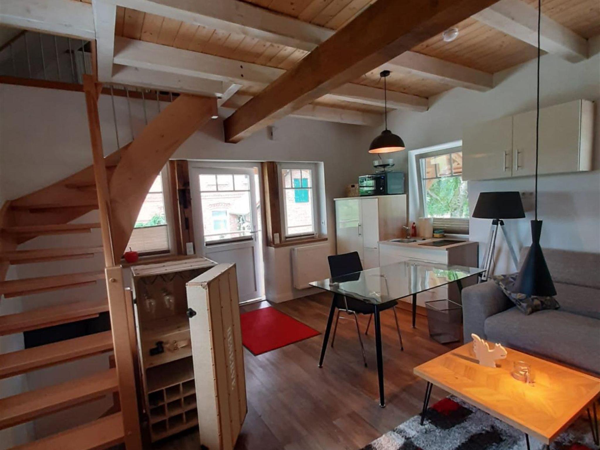 Unser neues Ferienhaus Zum Speicher befindet sich ca. 850 m vom Hotel Forellenhof. Das historische Gebäude wurde neu aufgebaut. Genießen Sie den Sonnenaufgang auf der einladenden Veranda oder auf dem Balkon. Der Speicher verfügt über ein Schlafzimmer mit WC im 1. Geschoss, Wohn/Essbereich im Erdgeschoss mit Bad/Dusche im Souterrain. Das Haus hat einen Hauswirtschaftsraum mit Waschmaschine und Trockner. Platz für max. 4 Personen (2 Pers. + 2 in Aufbettung)