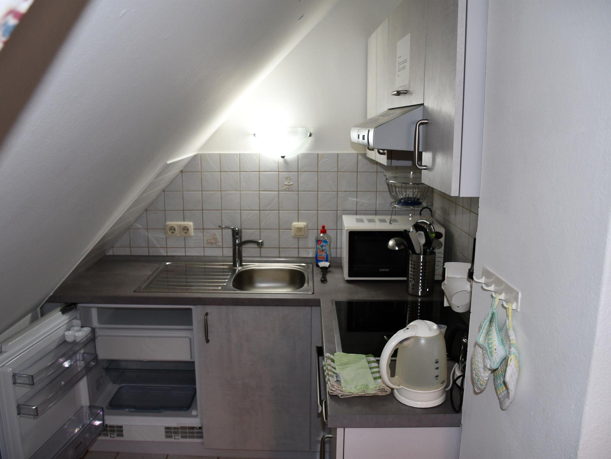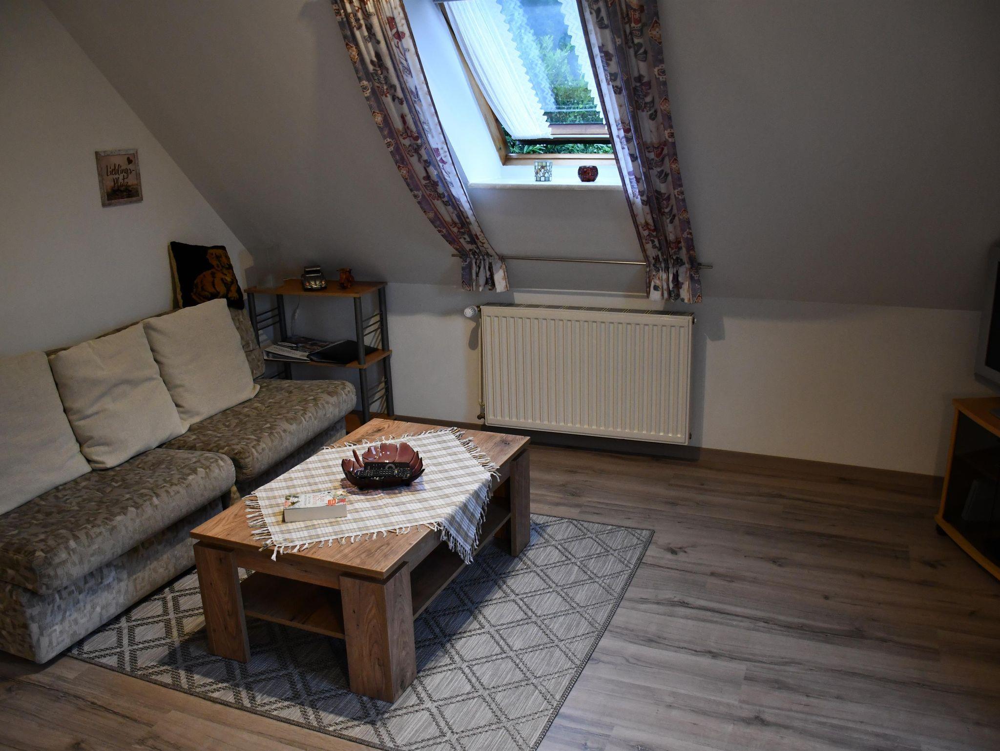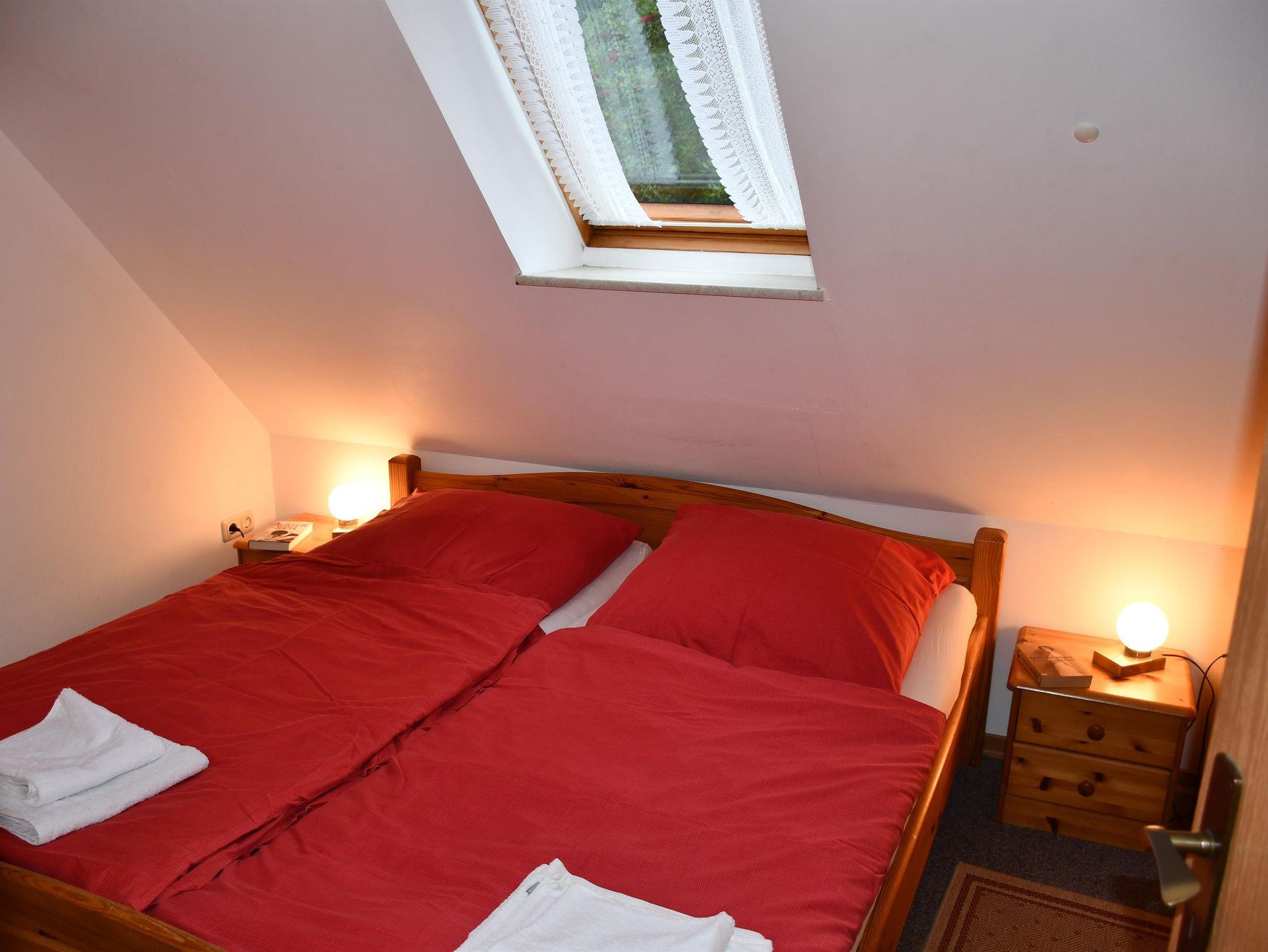 Gemütliche ca. 50 qm große Ferienwohnung mit 2 Schlafräumen (ein Doppelbett und ein Einzelzimmer), 1 Wohn-/Essraum, Küchenzeile und Duschbad. Der Garten und ein Spielplatz in der Nähe laden zum Verweilen ein.