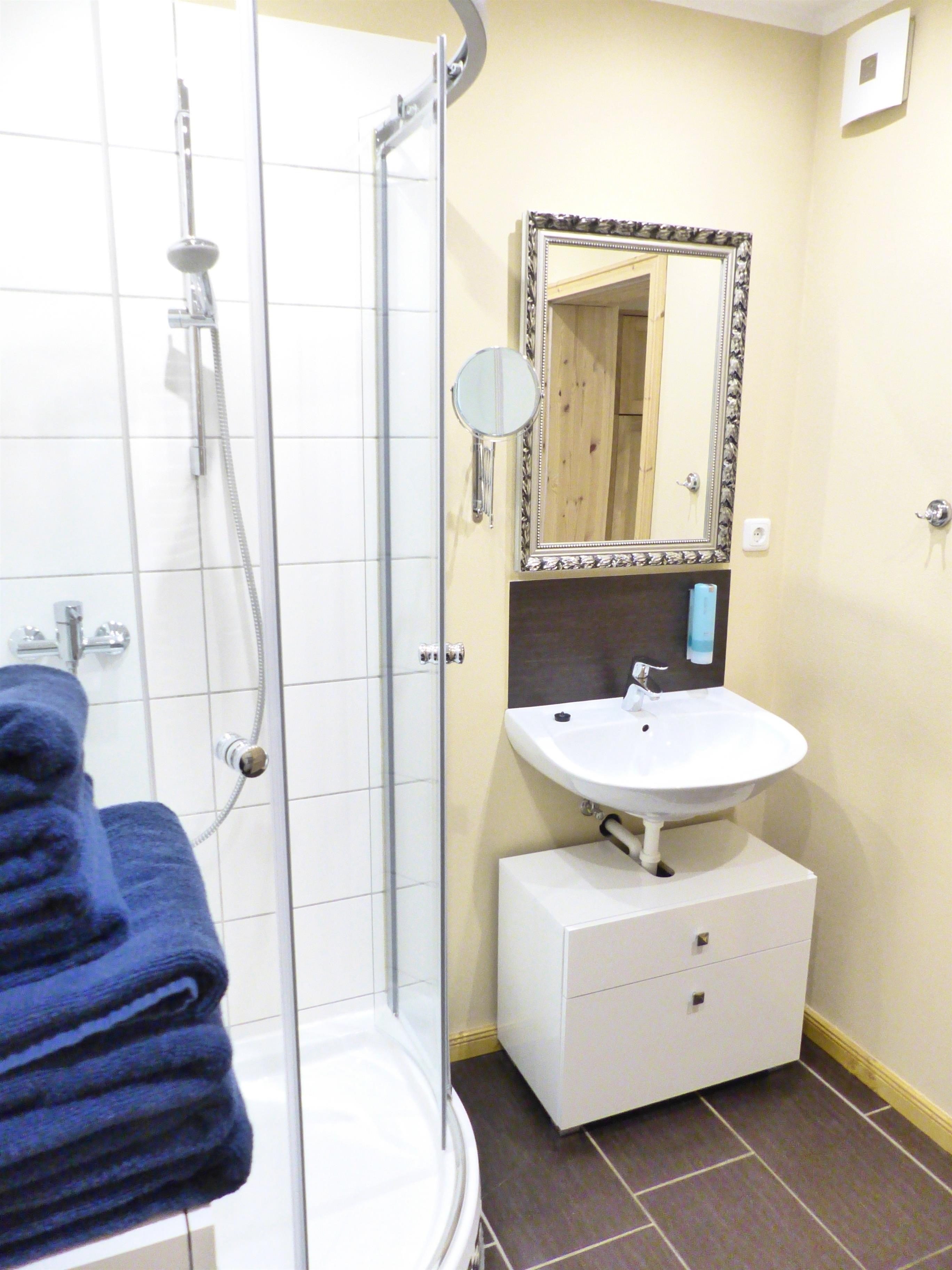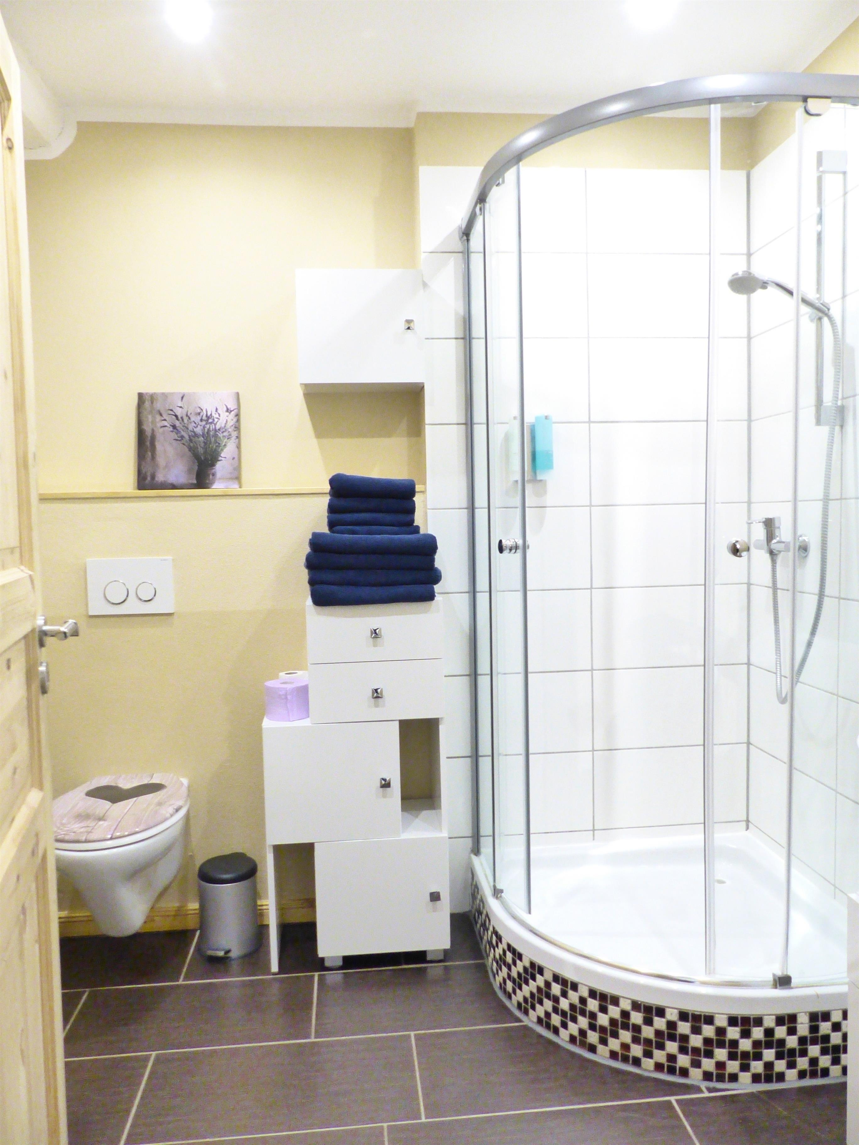 Die Einbauküche ist gut ausgestattet, das Bad verfügt über Dusche, WC und Waschbecken.