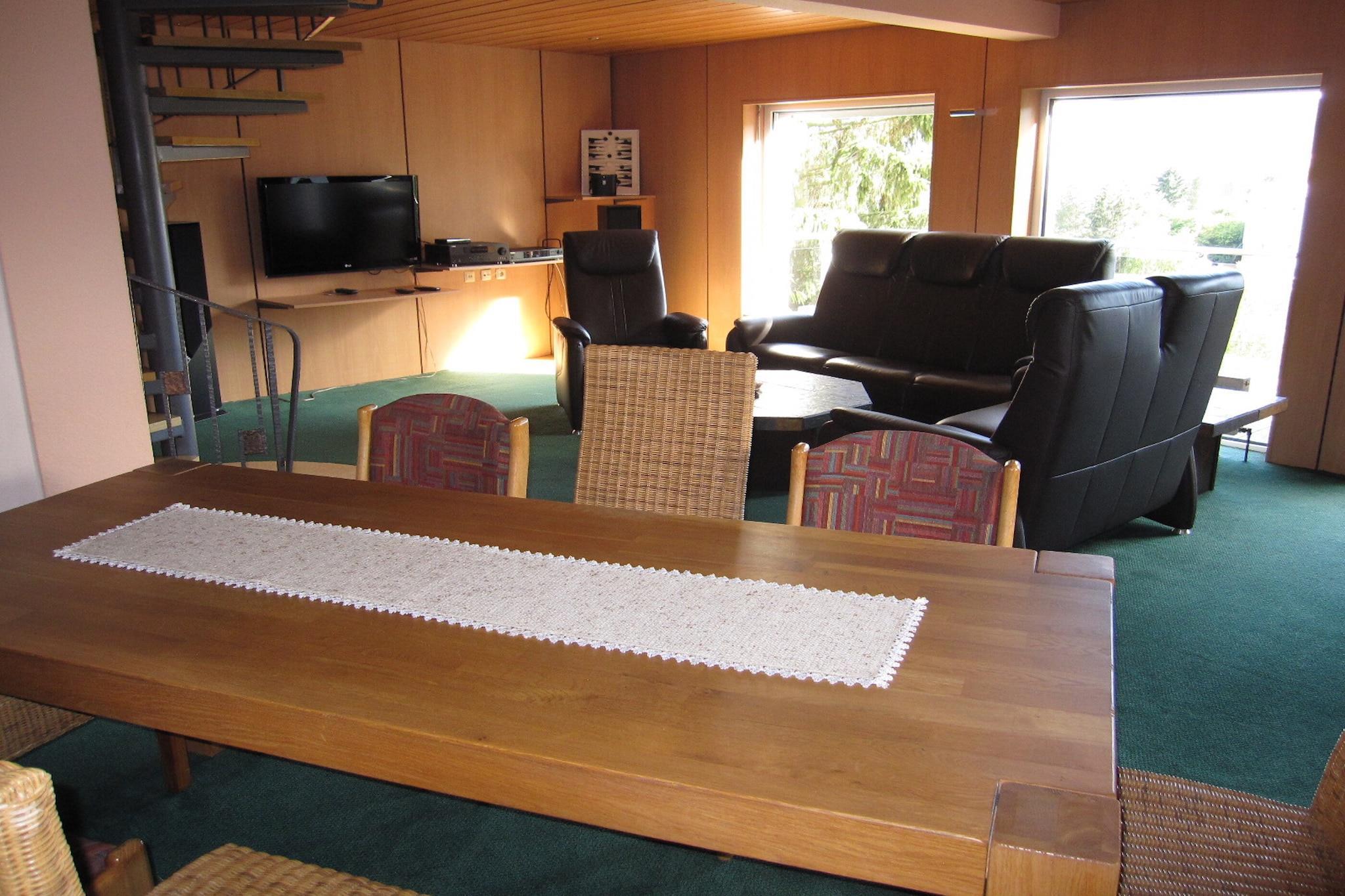 Stueetage: (Indgang , gang, åbent køkken(spisebord, komfur(Komfur med fire kogeplader), kaffemaskine(kaffetragt), ovn, mikrobølgeovn, køleskab(+ fryser)), stue / spisestue(enkeltseng, Fjernsyn(fladskærm, parabol), DVD-afspiller, radio, stereoanlæg), soveværelse(dobbeltseng(180 x 200 cm)), badeværelse(bruser, håndvask, toilet)) På 1. etage: (åbent køkken(brødrister, komfur(Komfur med fire kogeplader, glaskeramisk, elektrisk), kaffemaskine(kaffetragt), ovn, mikrobølgeovn, opvaskemaskine , køleskab(+ fryser)), stue / spisestue(Fjernsyn(fladskærm, parabol), spisebord, DVD-afspiller, radio, stereoanlæg), badeværelse(bruser, håndvask, toilet), Repos) Loft: (soveværelse(enkeltseng, dobbeltseng), soveværelse(enkeltseng(100 x 200 cm), dobbeltseng(160 x 200 cm)), soveværelse(køjeseng), toilet(håndvask)) balkon, varme(central, gas), terrasse(overdækket, 15 m2), have(privat, 400 m2), grill(trækul), 2x parkering, liggestole, barnestol, strygebræt, strygejern