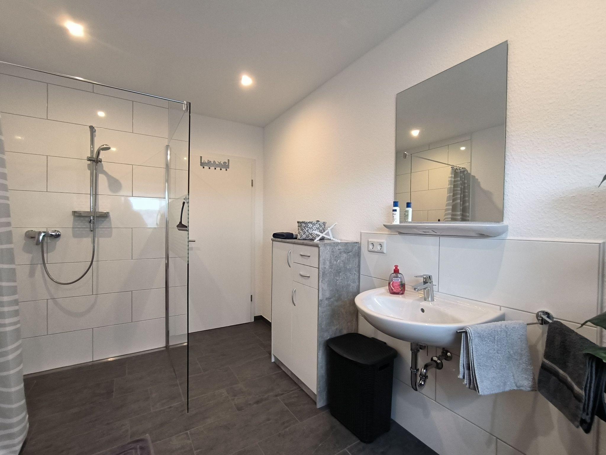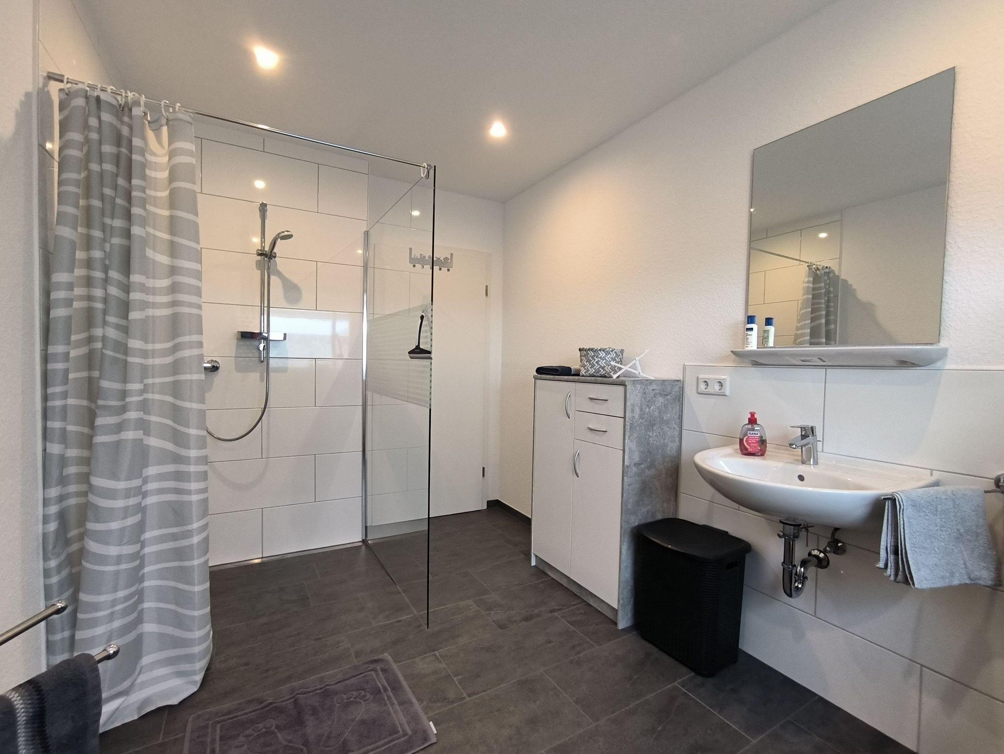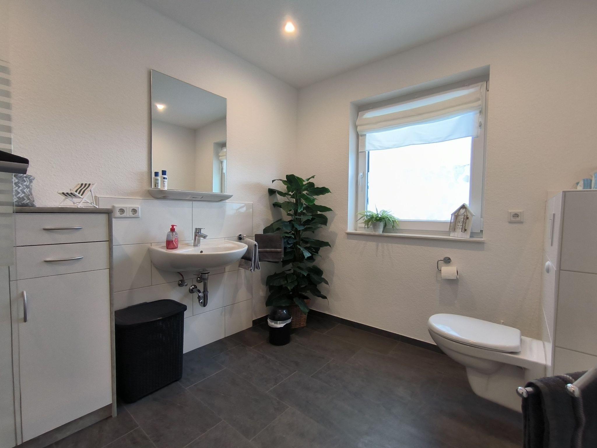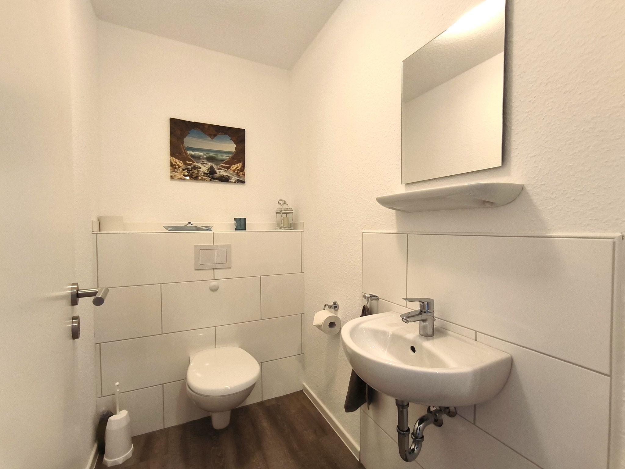 Das Schlafzimmer ist mit zwei zusammenstellbaren Einzelbetten (je 100 x 200 cm) und einem großen Kleiderschrank ausgestattet. Im Wohnzimmer gibt es ein sehr hochwertiges Schrankbett als Aufbettungsmöglichkeit für die 3. Person. Die Küche ist mit einer vollständig ausgesatteten Einbauküche und einem Esstisch für vier Personen eingerichtet - hier können leckere Urlaubsmahlzeiten vorbereitet, gekocht und verspeist werden. Es gibt ein helles und modernes Bad mit Dusche, Waschbeken und WC sowie eine Gästebad mit Toilette. Über den Glasfaseranschluss sind Sie mit schnellem W-Lan versorgt. Die gesamte Wohnung wird mit einer Fußbodenheizung beheizt.