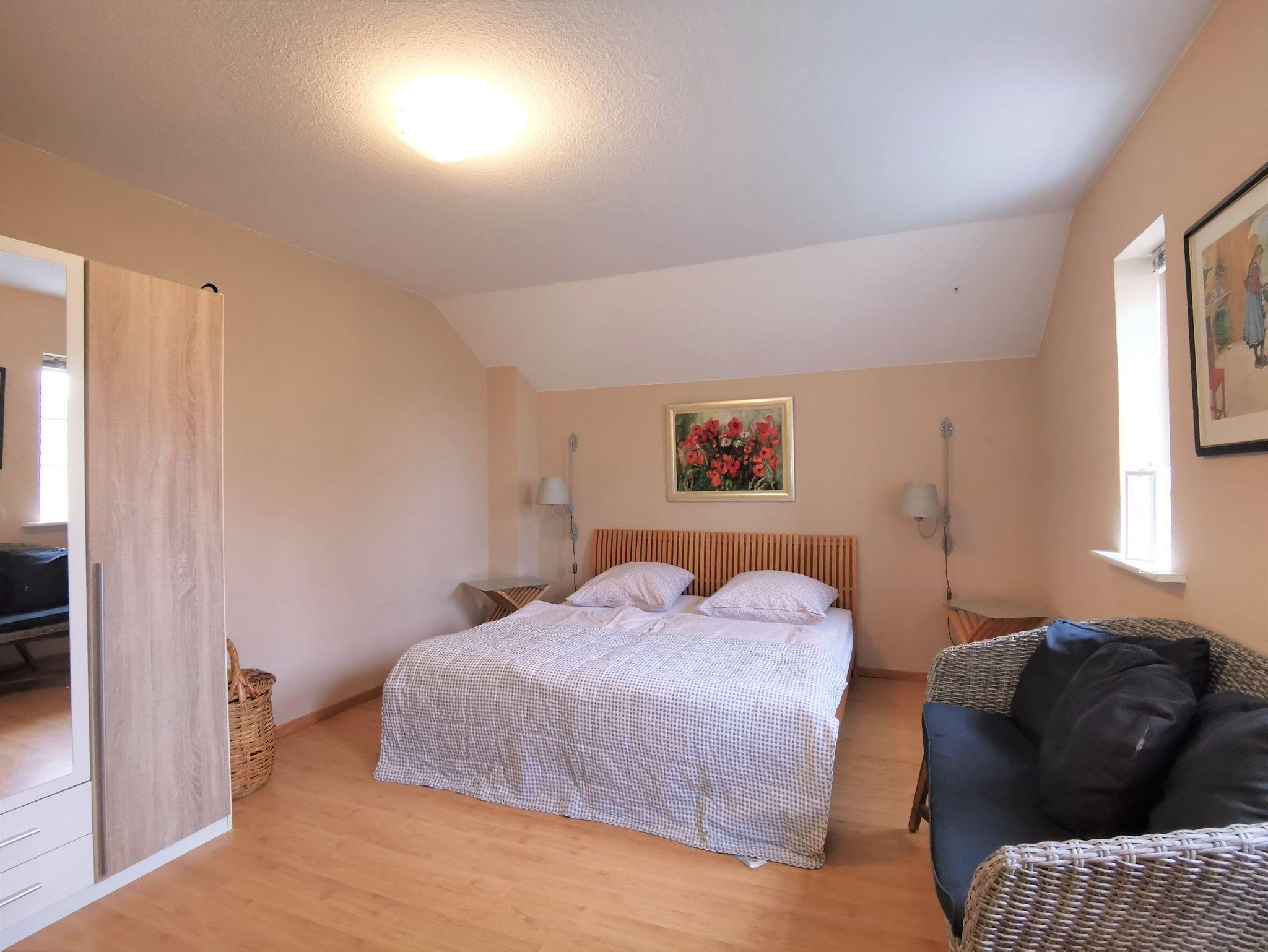 Ole für max. vier Personen: Ansprechende Ferienwohnung im 1. OG, 65 qm, gemütliches Wohnzimmer, ein Schlafzimmer mit Doppelbett, ein Schlafzimmer mit zwei Einzelbetten. Einbauküche, Duschbad mit Waschmaschine. Seperater Eingang und Flur. Sitzgruppe vor der Haustür.