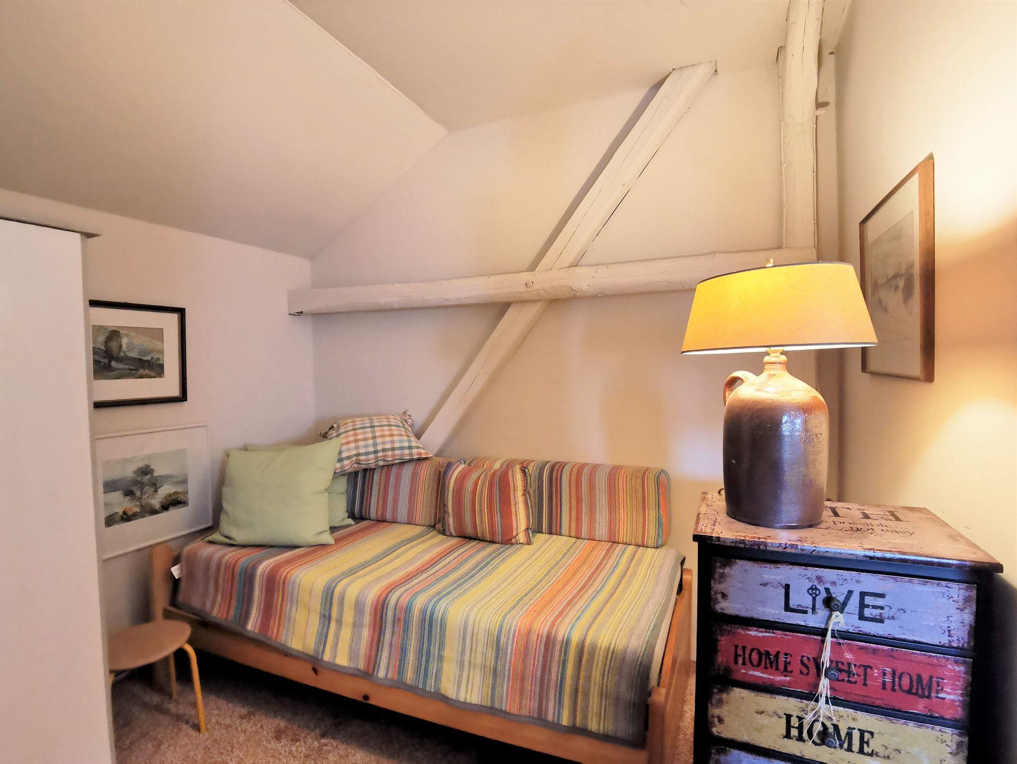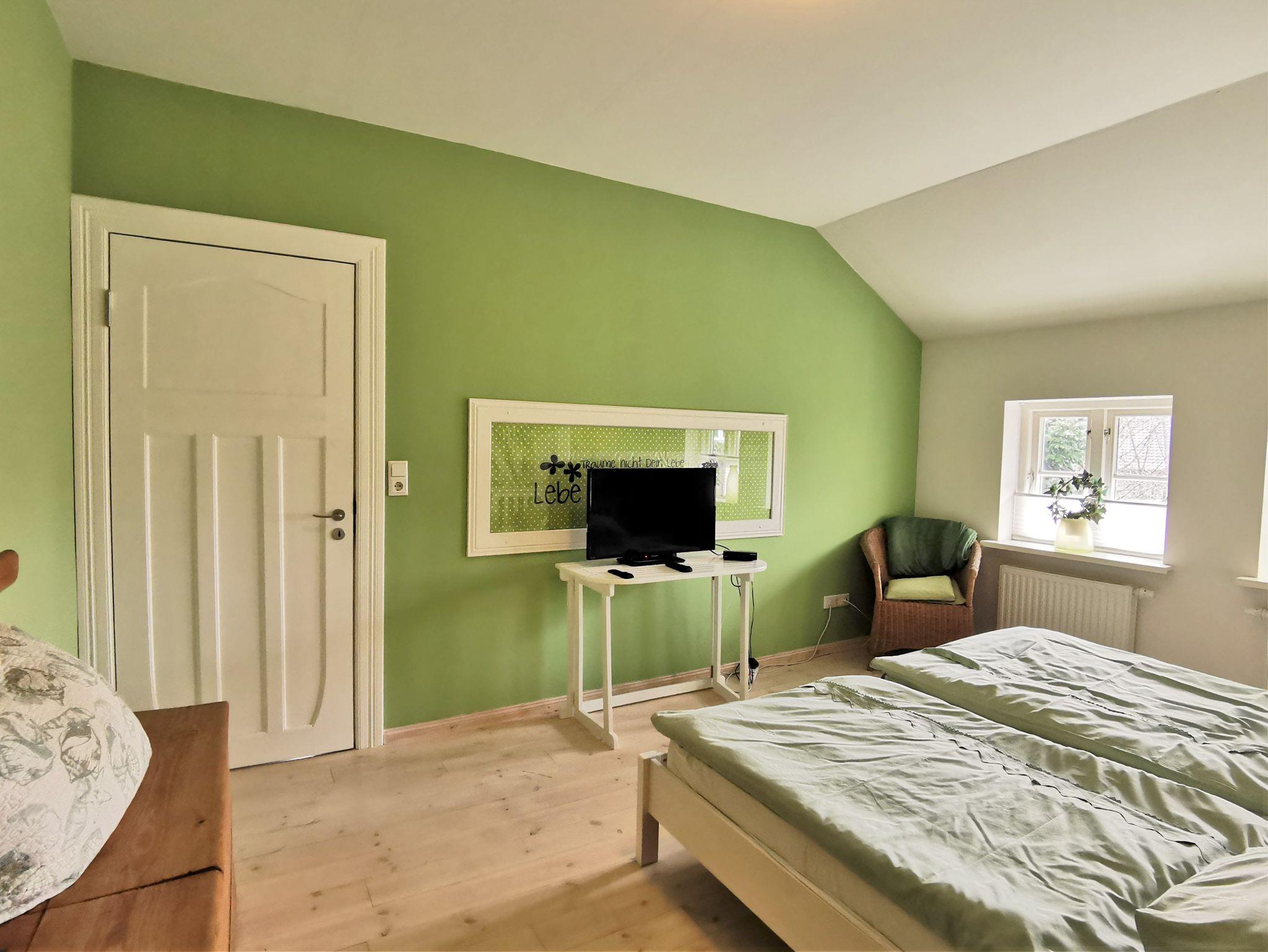 Im Obergeschoss: Zwei Schlafzimmer (ein Schlafzimmer mit zwei Einzelbetten, ein zum Flur offenes Schlafzimmer mit einem Einzelbett, Schrank und Sofa). Eigener Eingang mit Sitzgruppe auf dem Grundstück.