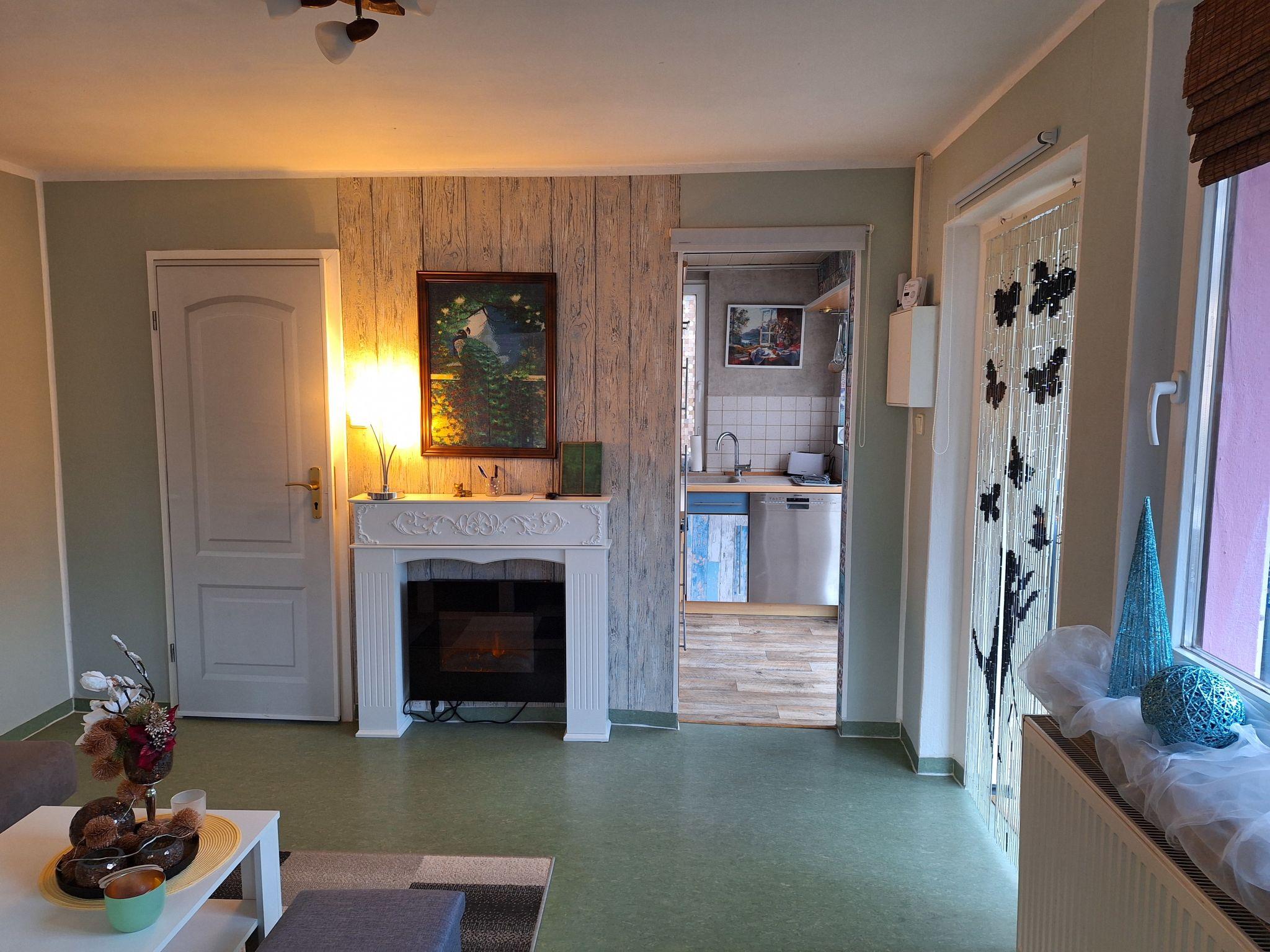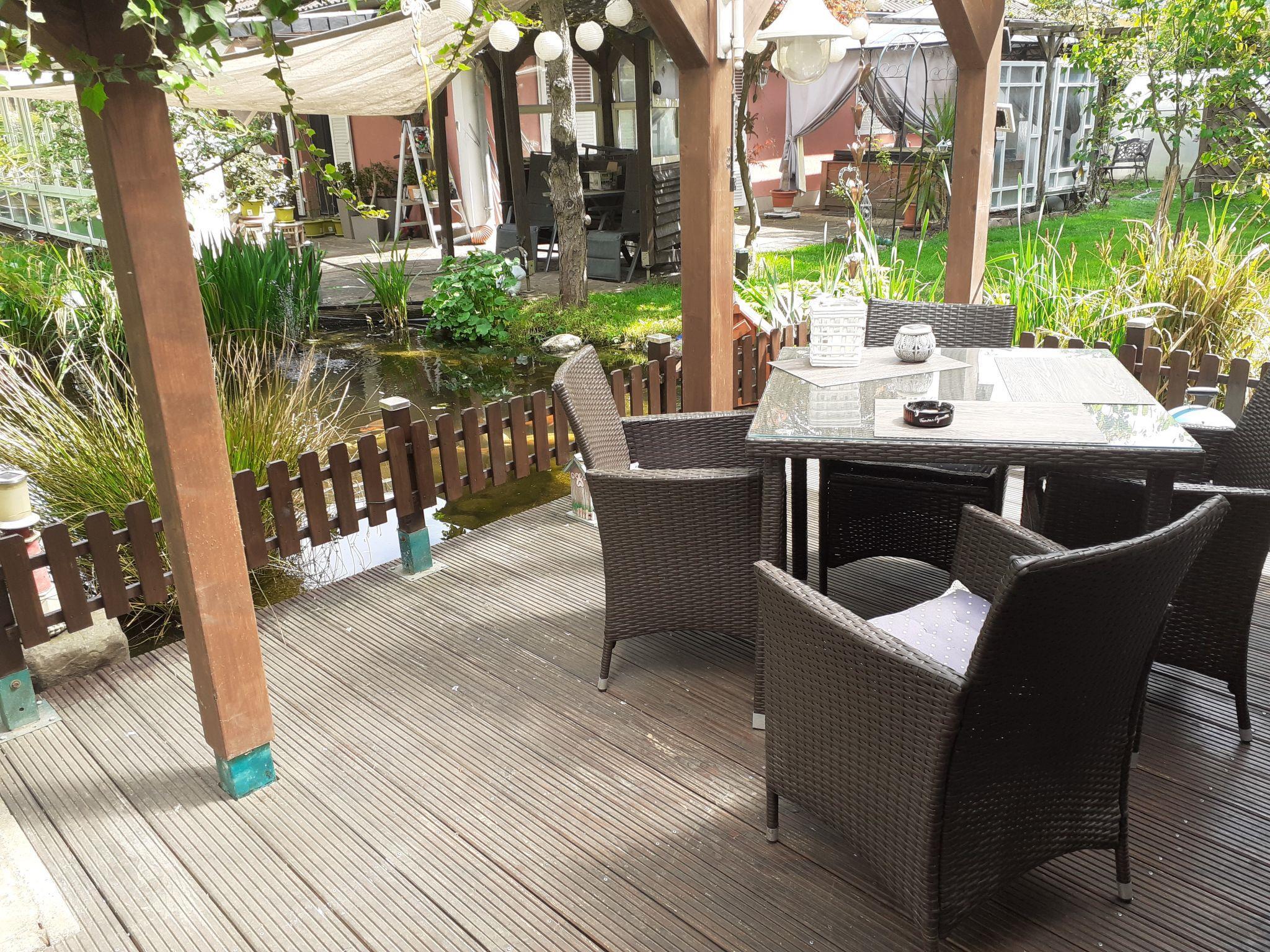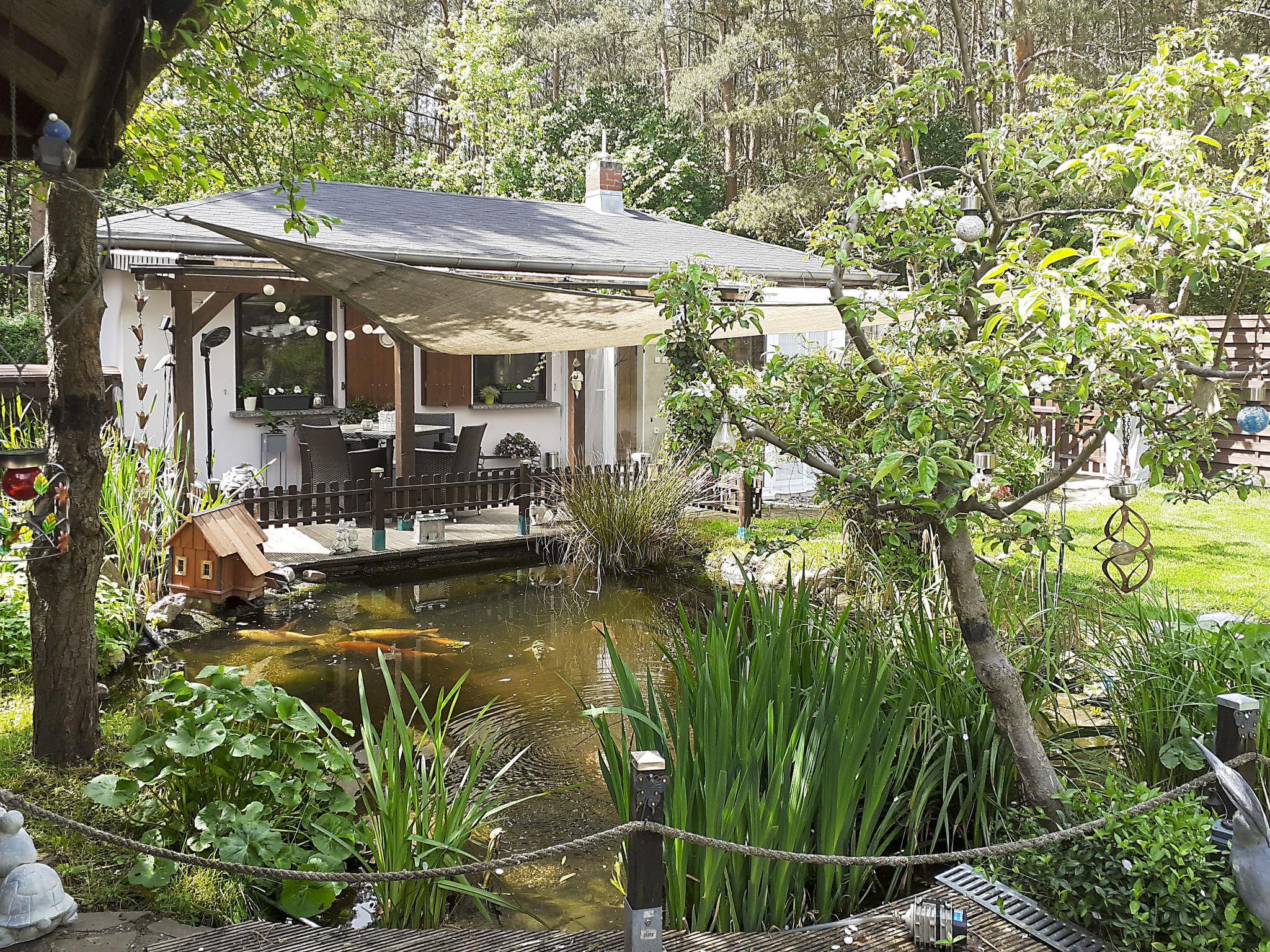 Cosy bungalow "Heike". 400 m from the centre of Wandlitz, 11 km from the centre of Bernau, 30 km from the centre of Berlin, in the residential district, 2 km from the lake, in a cul-de-sac. Private: property 200 m2 (fenced) with lawn, orchard, pond. Patio, terrace (9 m2), garden furniture, barbecue. 100 m long bumpy motor access to the house. Parking at the house at 10 m. Supermarket 800 m, bus stop "Wandlitz" 850 m, grass beach 2 km, outdoor swimming pool 2 km, indoor swimming pool 25 km. Please note: the owner lives on the same property.