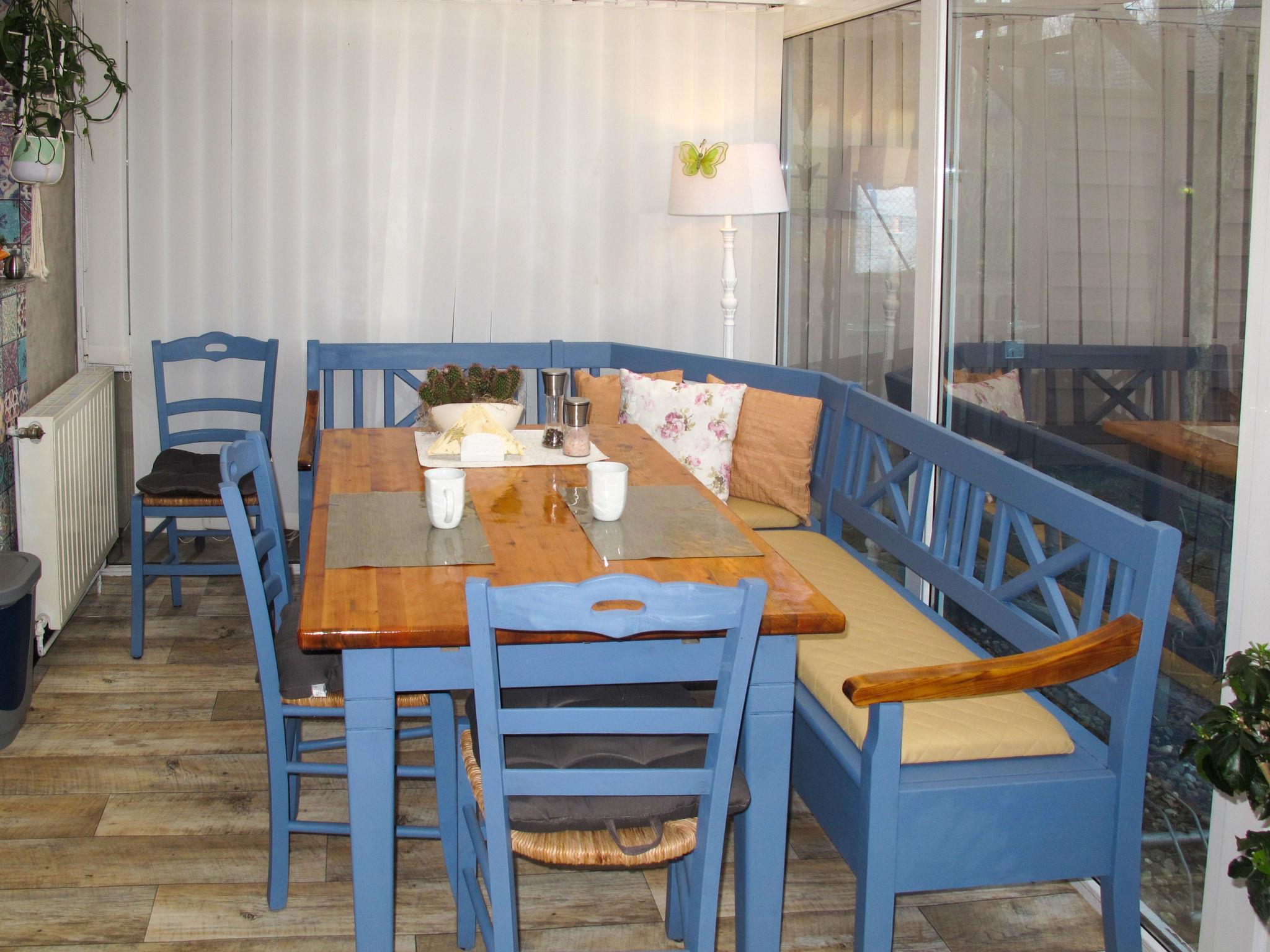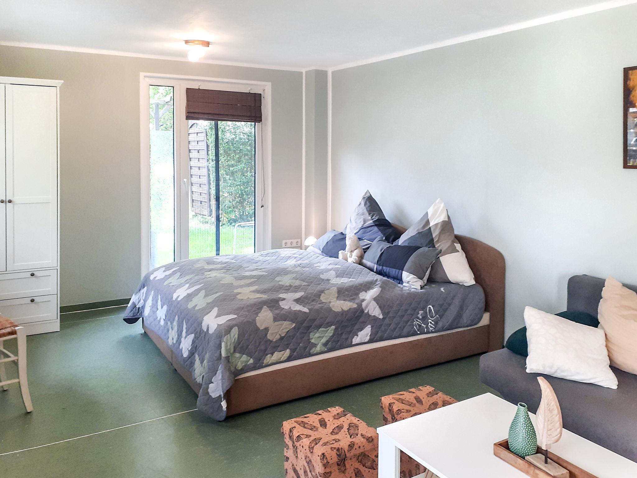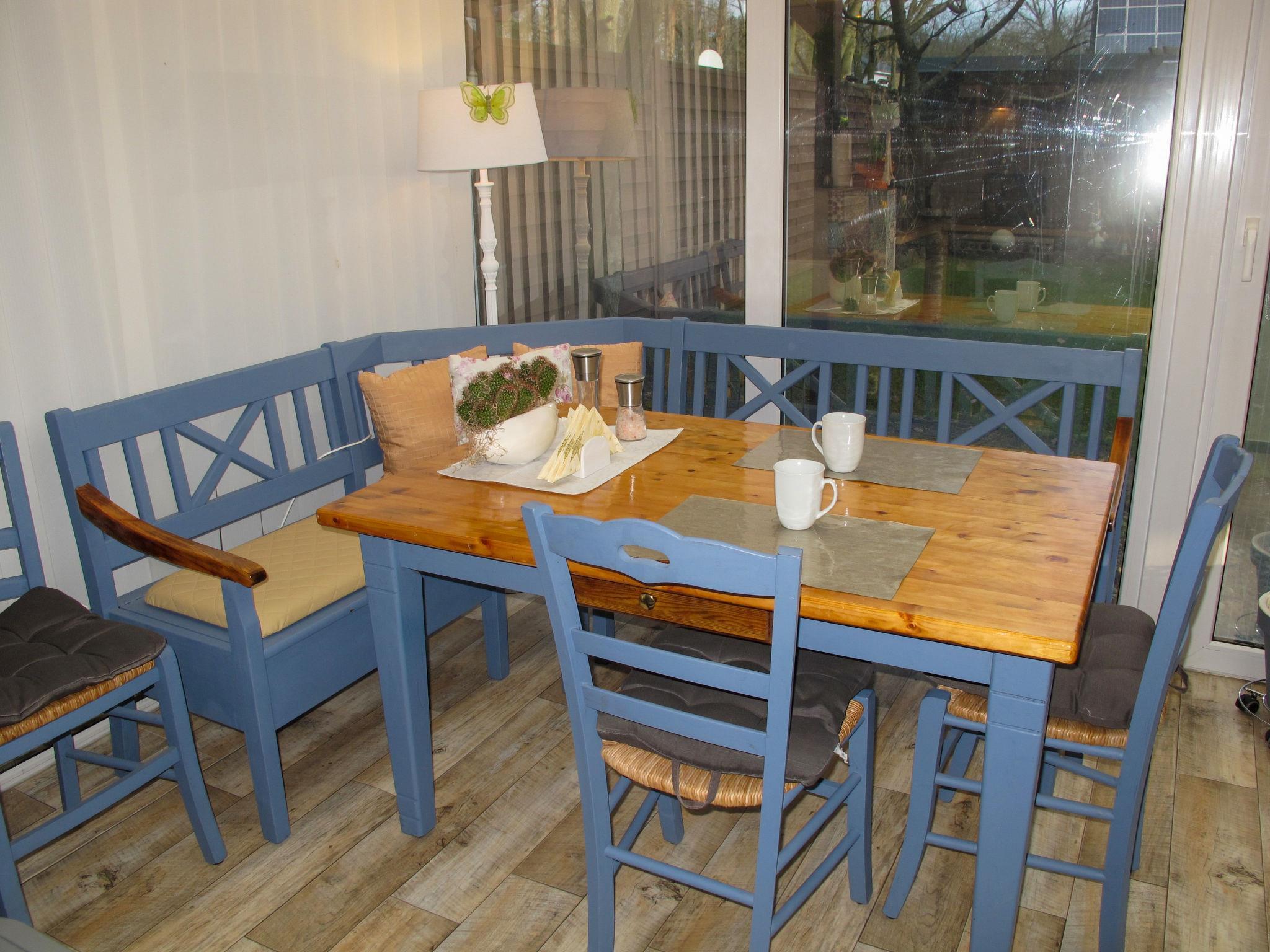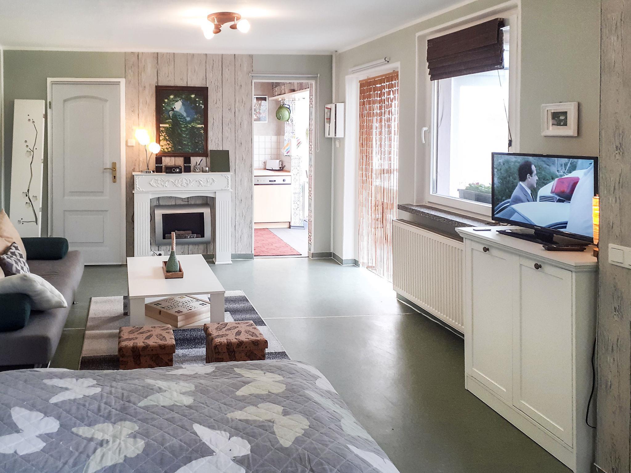 1-room bungalow 45 m2. Modern furnishings: living/sleeping room with winter garden with 1 sofabed, 1 double bed, satellite TV, radio and CD-player. Exit to the terrace. Open kitchen (oven, dishwasher, 4 ceramic glass hob hotplates, toaster, kettle, microwave, freezer, electric coffee machine) with dining table. Exit to the terrace. Bath/WC. Gas heating, underfloor heating. Facilities: children's high chair, baby cot. Please note: non-smoking house. Smoke alarm.