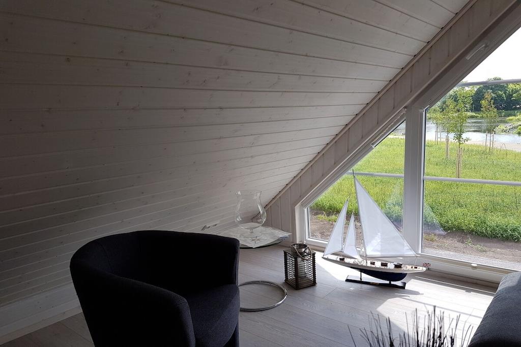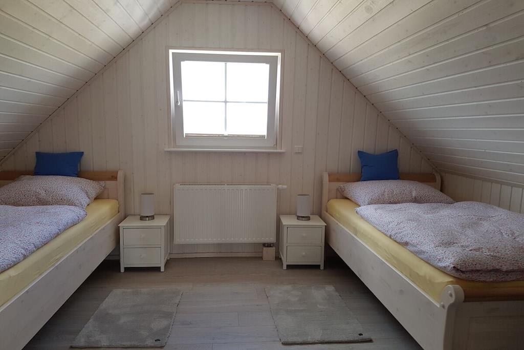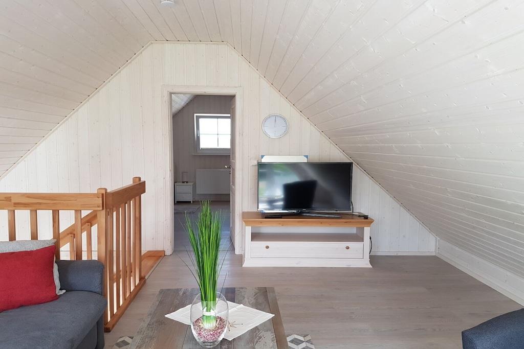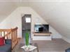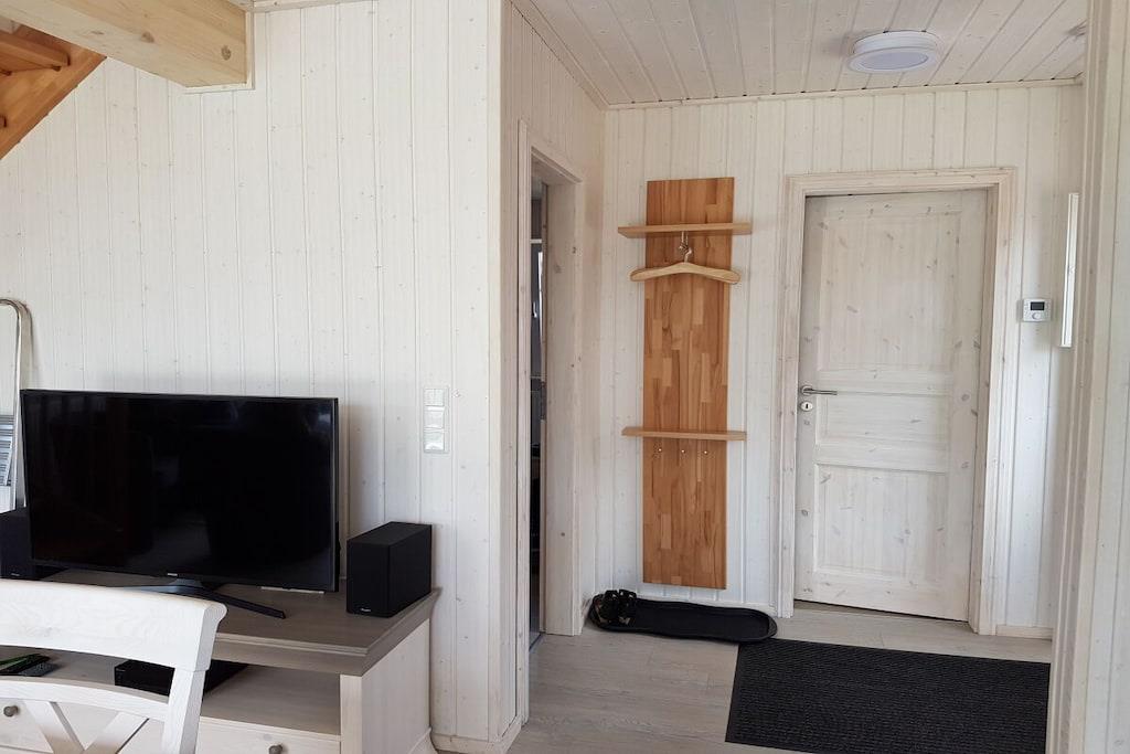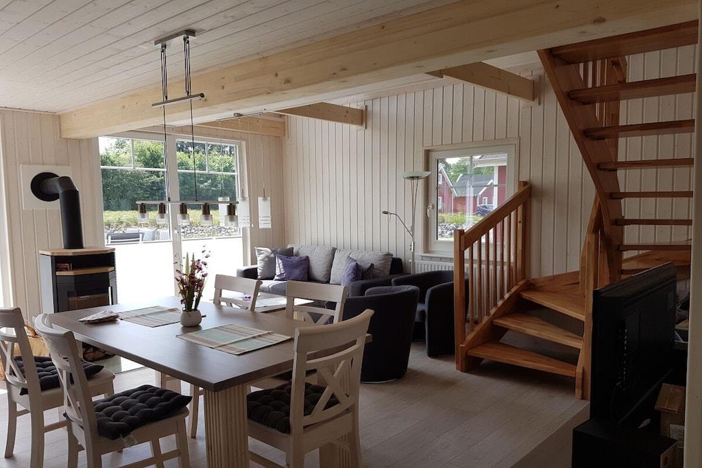 Ground floor: (Kitchen(hob, oven, dishwasher, fridge, Cooking basics), Living/diningroom(single sofa bed, TV, dining table), bedroom(double bed), bathroom(shower, washbasin, toilet, Towels incl.)) Attic: (bedroom(TV)) garden, garden furniture, parking, ironing board, iron