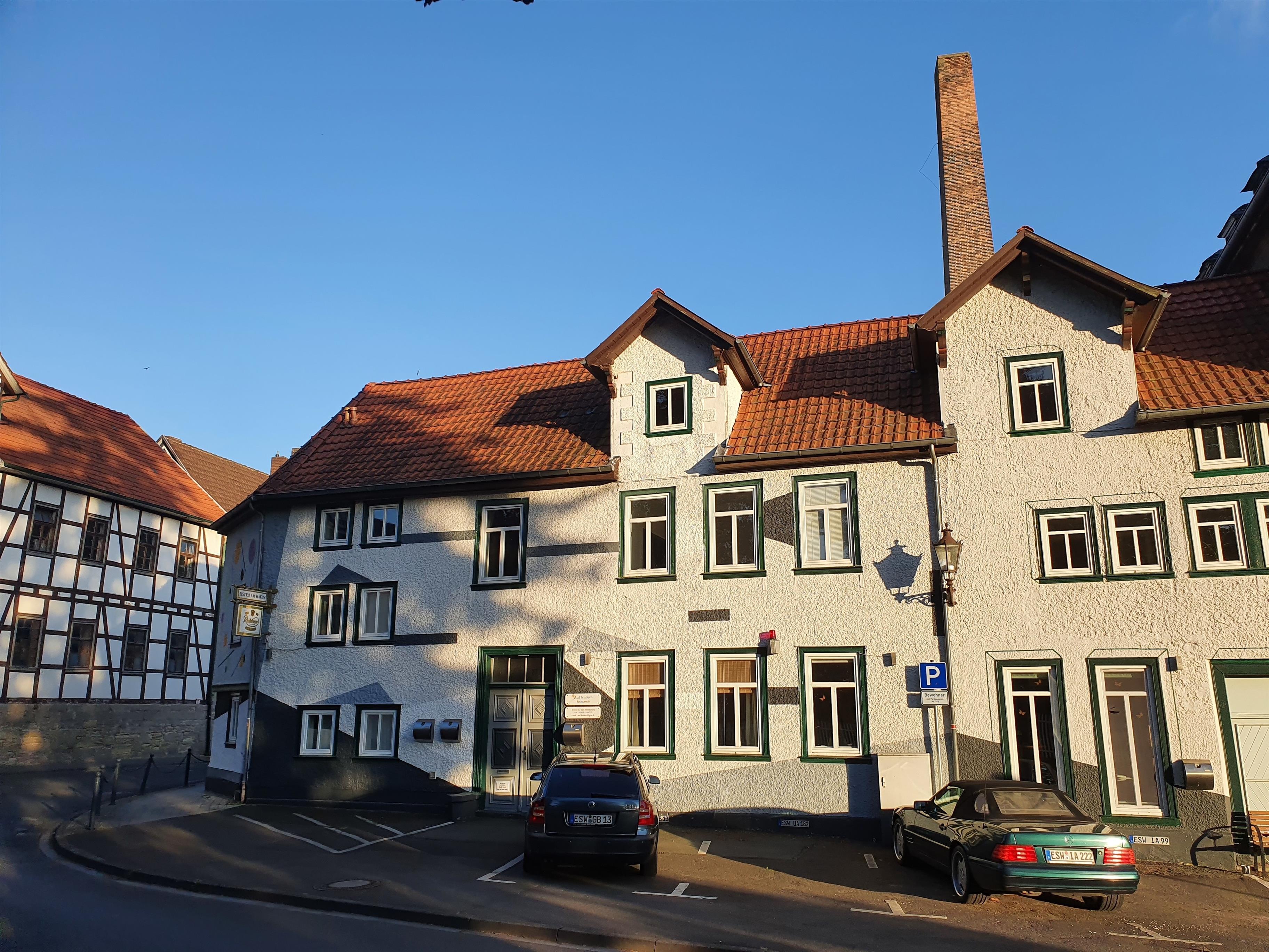 Das "Bedroo 2" befindet sich nur 50 mMeter entfernt vom historischen Hafen in einem Altbau mit Blick auf die Werra und einem großen Garten gegenüber