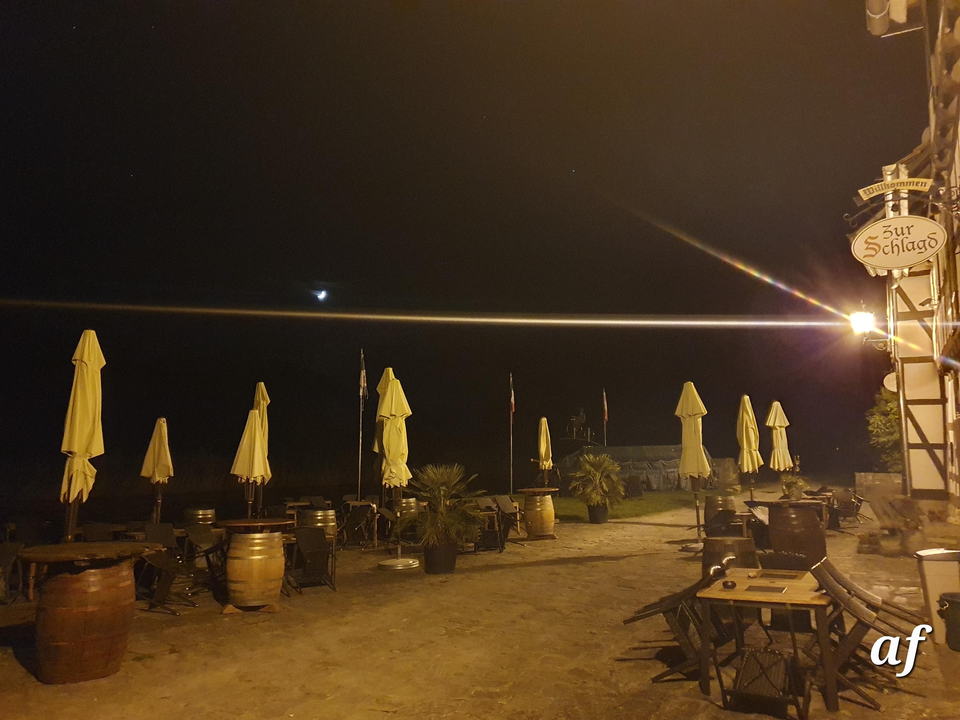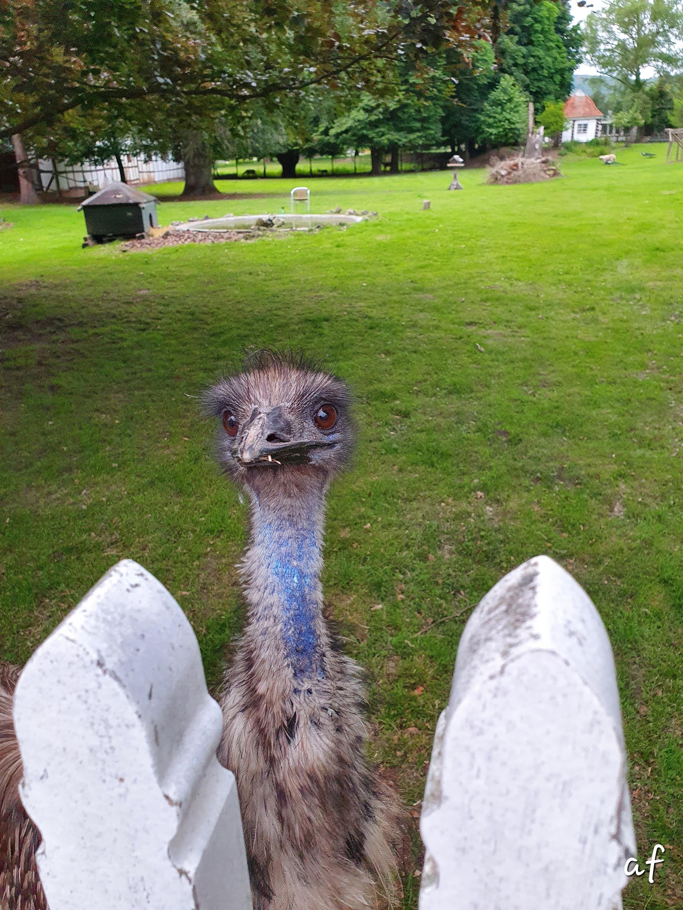 Ein wundervoller Ausblick auf einen gegenüber liegenden Garten, in welchem Tiere frei herum laufen, Hirsche, Rehe ,ein Emu, ein riesiges Schaf und ein Pfau. Die Hafengaststätte "Zur Schlagd" , ebenfalls schräg gegenüber,. ist ein wunderbarwes Restaurant