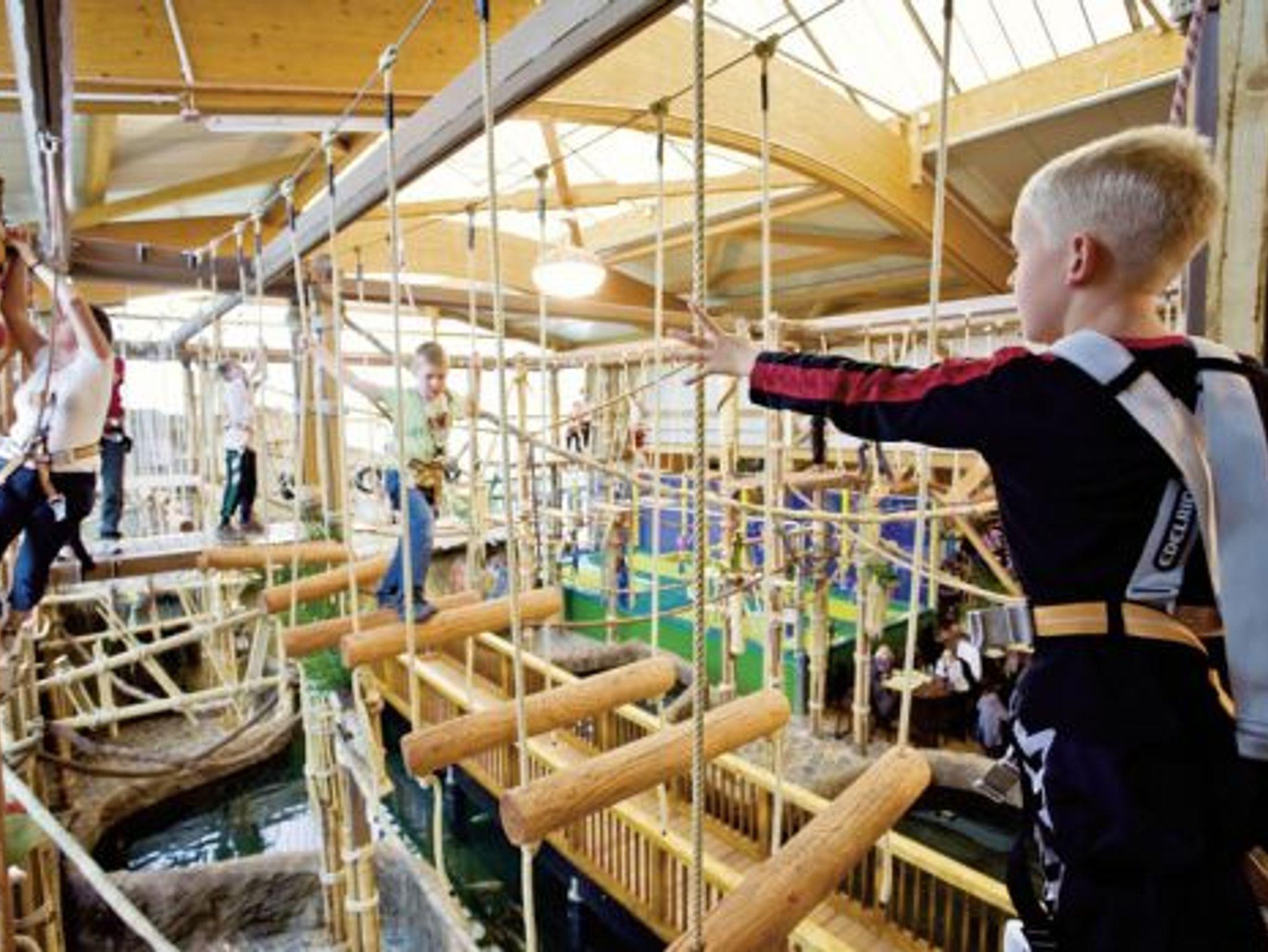 • Abenteuer Dschungelland: Einzigartige Abenteuer Dschungellandschaft mit Hochseilklettergarten, 2 Badmintonfeldern, Tischtennisplatten, riesiger Kinderspielanlage mit Rutschen, Hängebrücken, Terrarien mit lebendigen Tieren, Wellenrutsche, Trampolinen, Bällebad, Dschungel-Restaurant