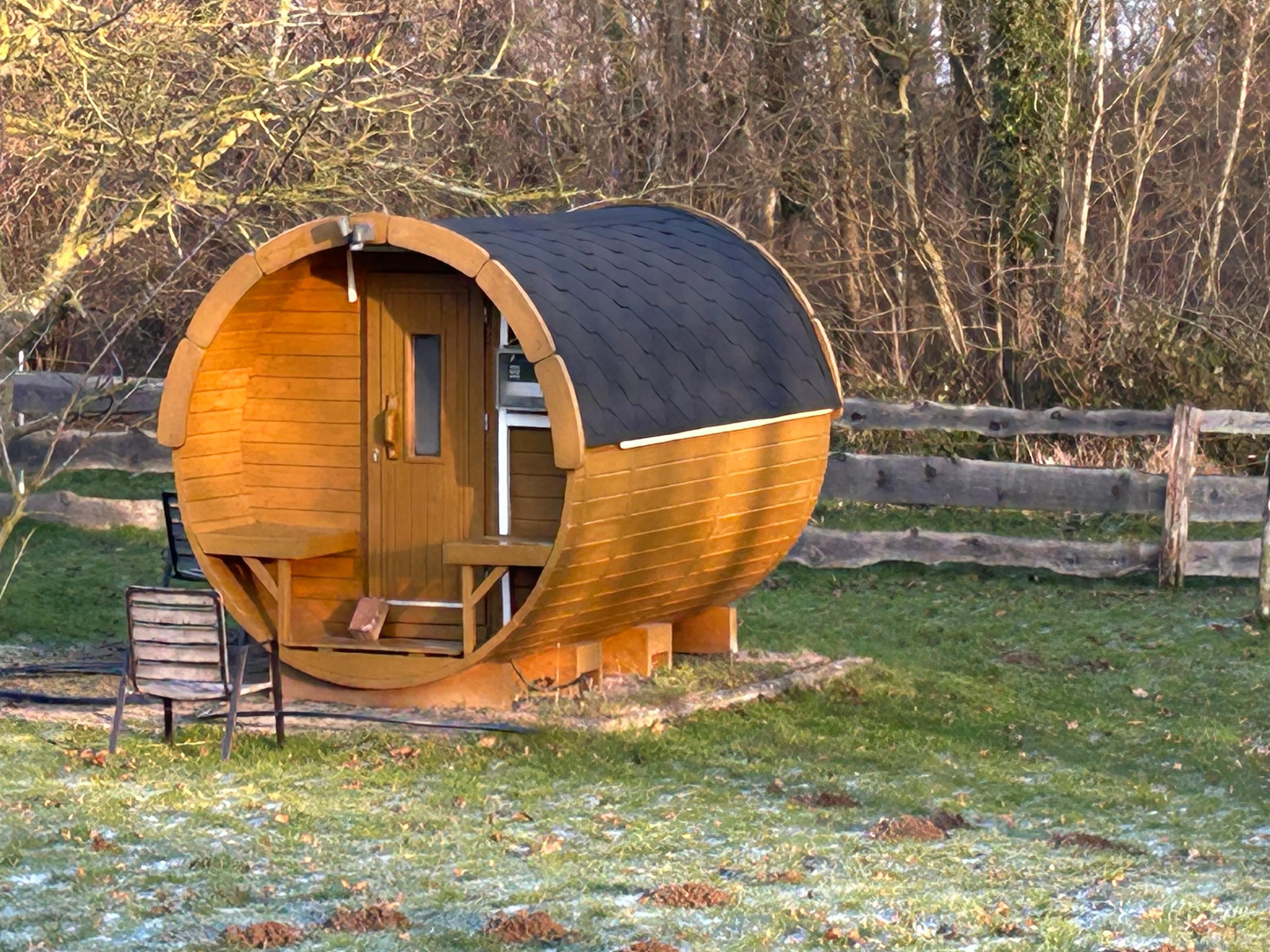 Für die kühle Jahreszeit bietet sich unsere Fasssauna im Garten an für einen erholsamen Aufenthalt.