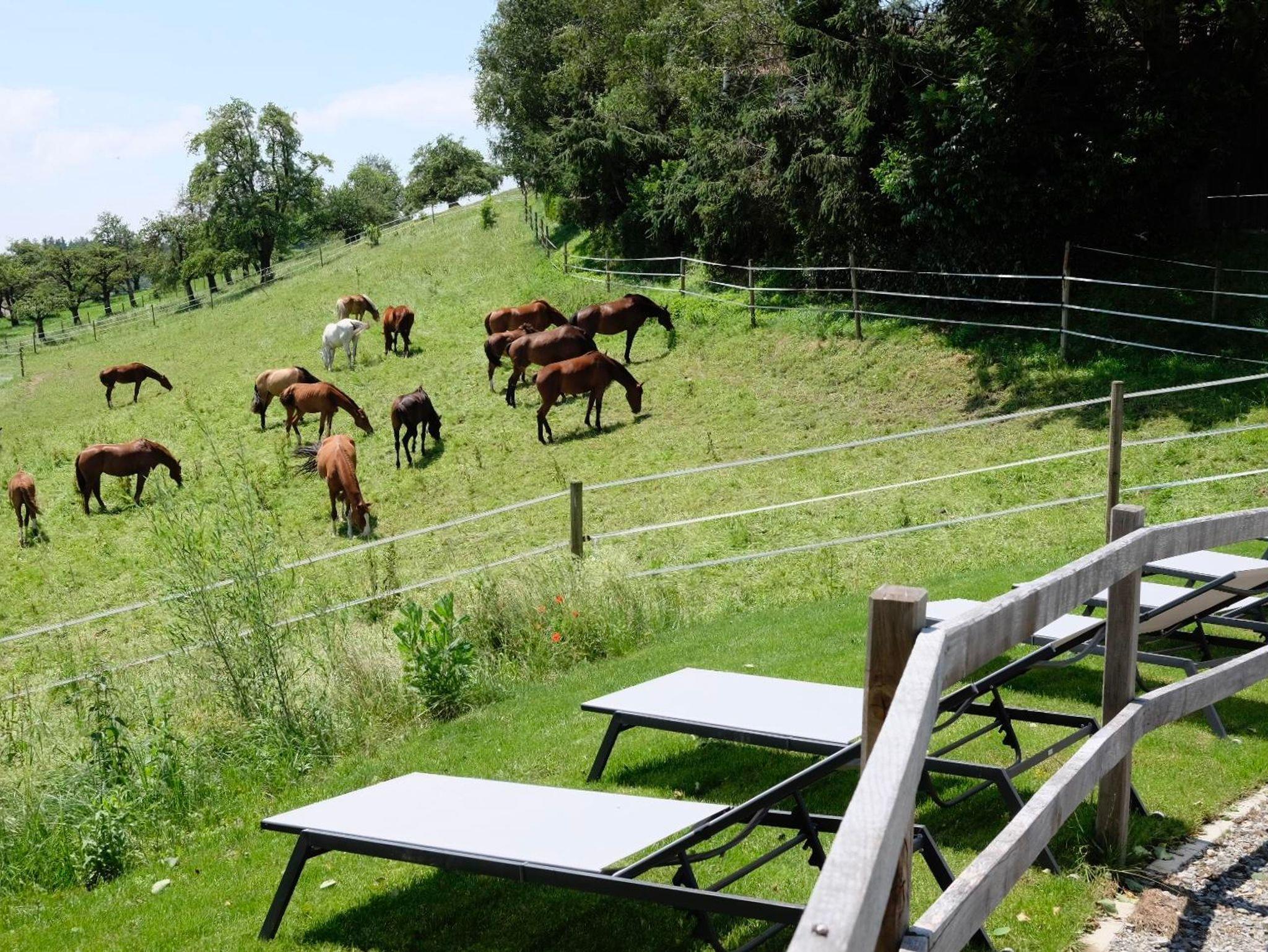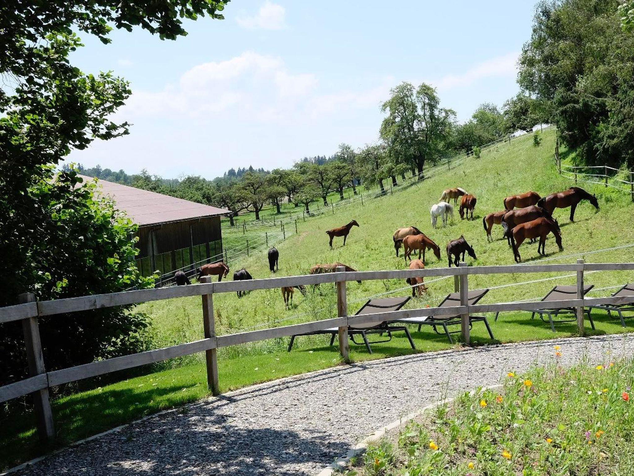 Im Ortskern des 100 Einwohnerdorfs Untermooweiler, idyllisch zwischen Wangen im Allgäu und Lindau, wurde ein über 70 Jahre altes Stallgebäude zu Ferienwohnungen umgebaut (2. & 3. OG). Im Ort gibt es zwei Reiterhöfe und ein Milchviehbetrieb-mehr Tiere als Einwohner, Feldwege und die direkte Umgebung von Obstbäumen, Wiesen sowie dem Naturschutzgebiet Degermoos lassen nicht nur die Herzen von Dorfkindern höher schlagen.