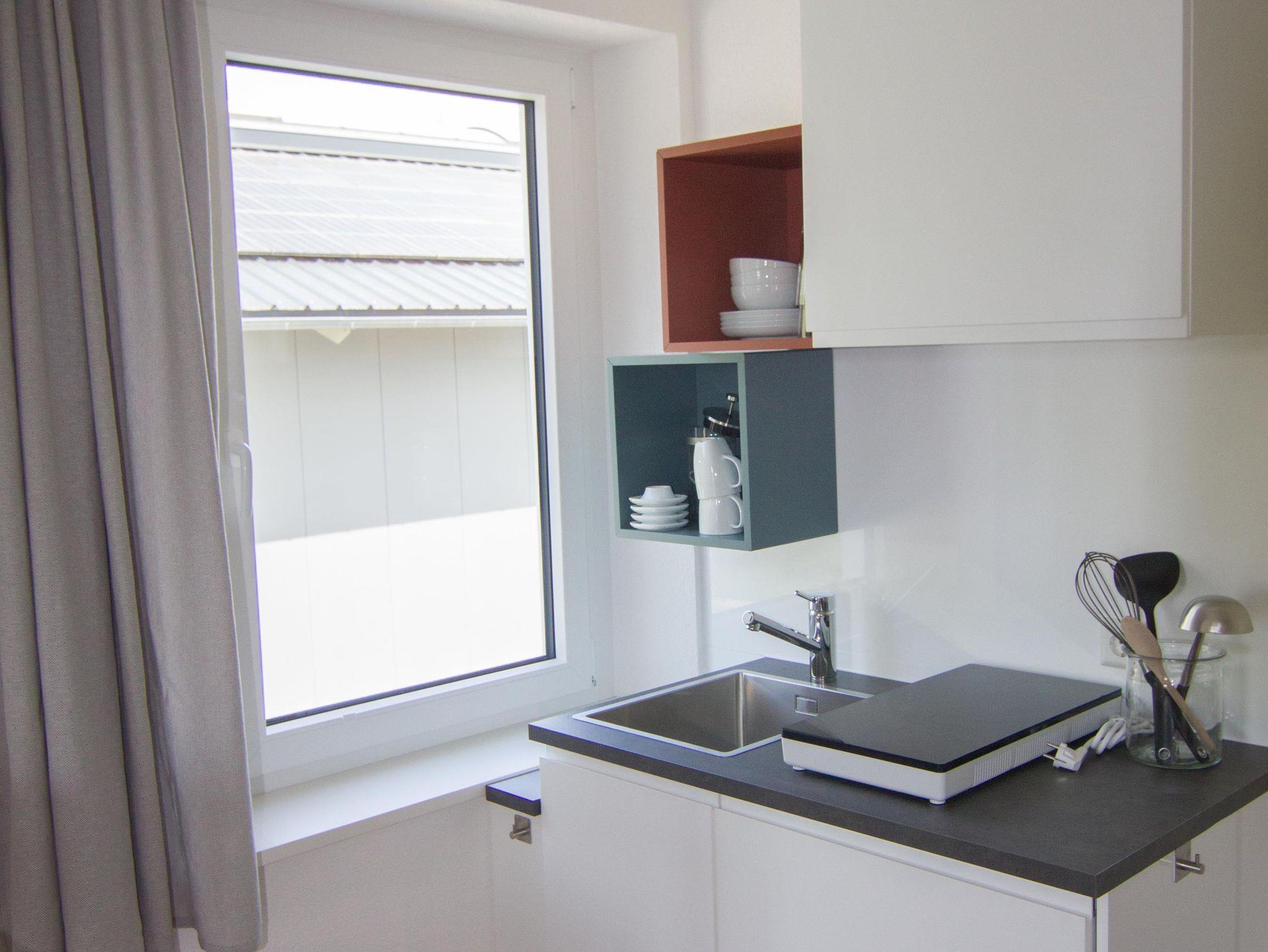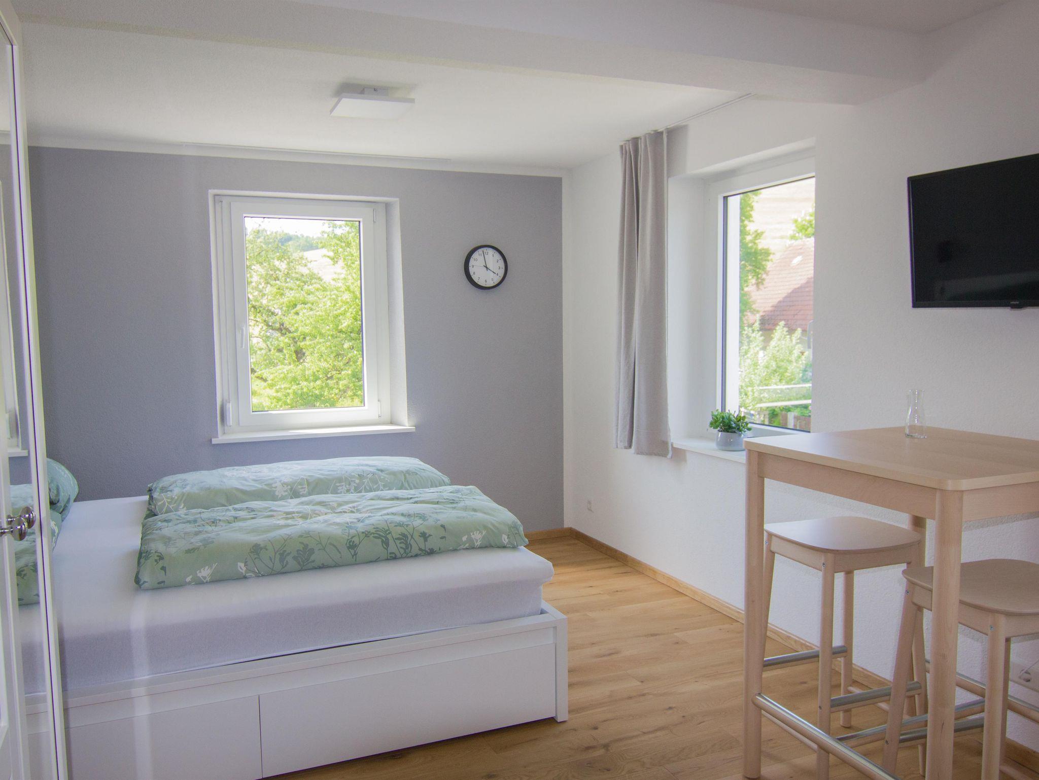 Das 20 m² große Studio Franz ist hell, modern und sehr gemütlich eingerichtet. Es befindet sich im 1.OG, verfügt über ein separates Bad mit Dusche und WC, eine Miniküche, WLAN, Flat TV und einem Doppelbett.