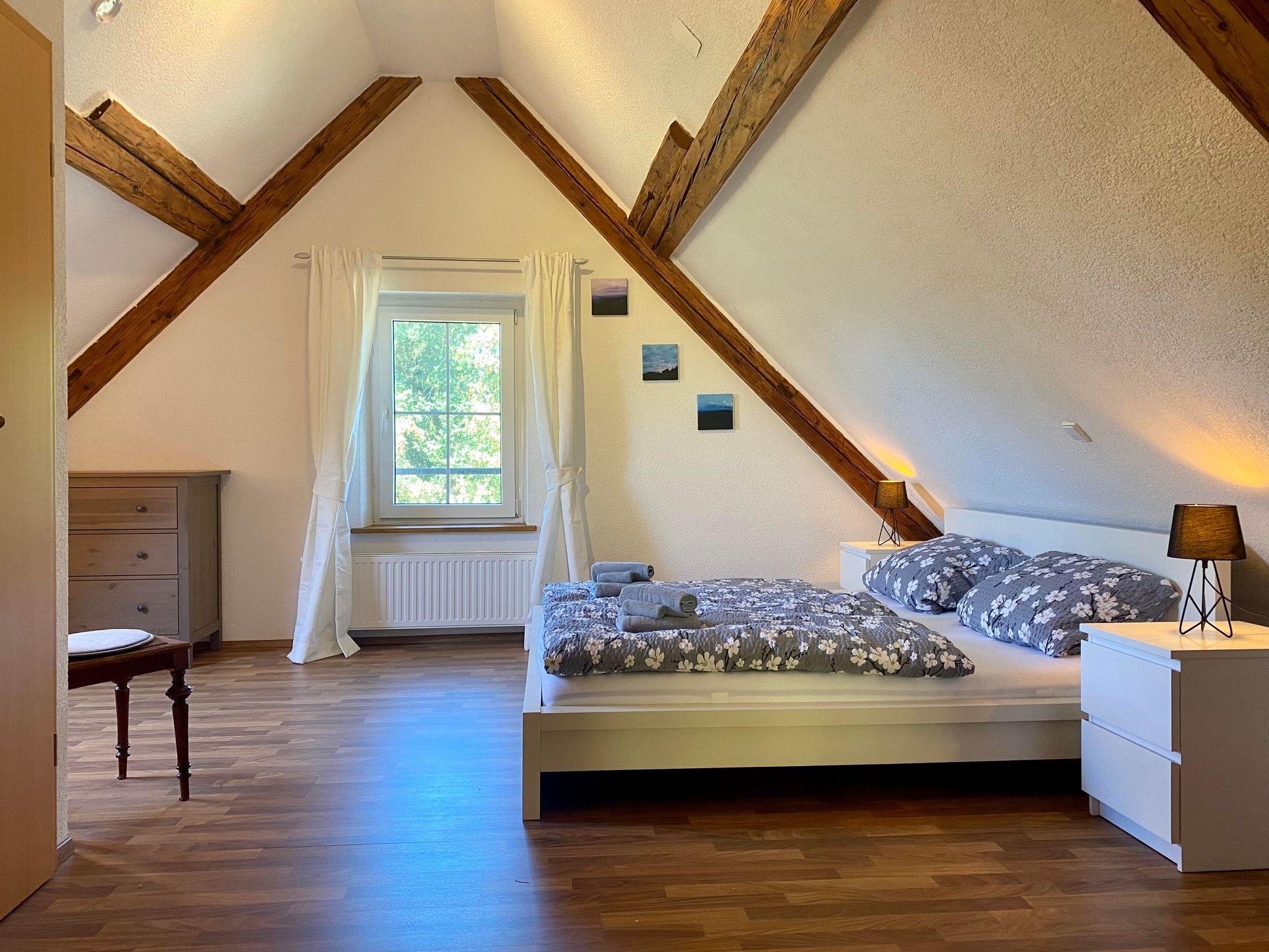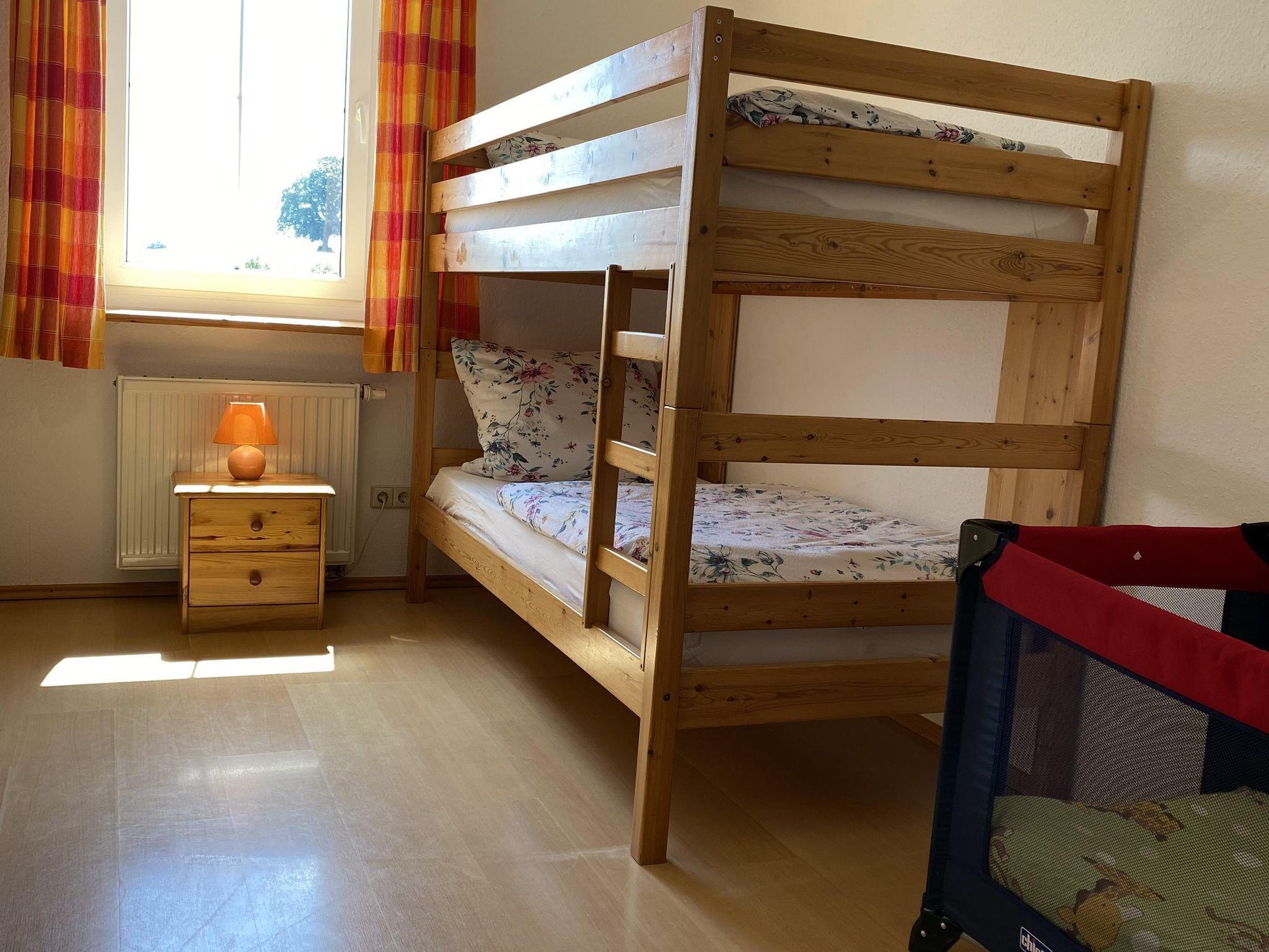 Im 2. OG befindet sich die helle und gemütlich eingerichtete Ferienwohnung Bergblick mit 80 m². Mit 2 Schlafräumen für Eltern und Kinder (Hochbett), großzügiger Wohnküche inkl. Spühlmaschiene, Bad mit Badewanne und separatem WC finden Sie alles, was Sie für einen erholsamen Urlaub brauchen. Die traumhafte Bergsicht und die Sonnenaufgänge werden Sie begeistern.