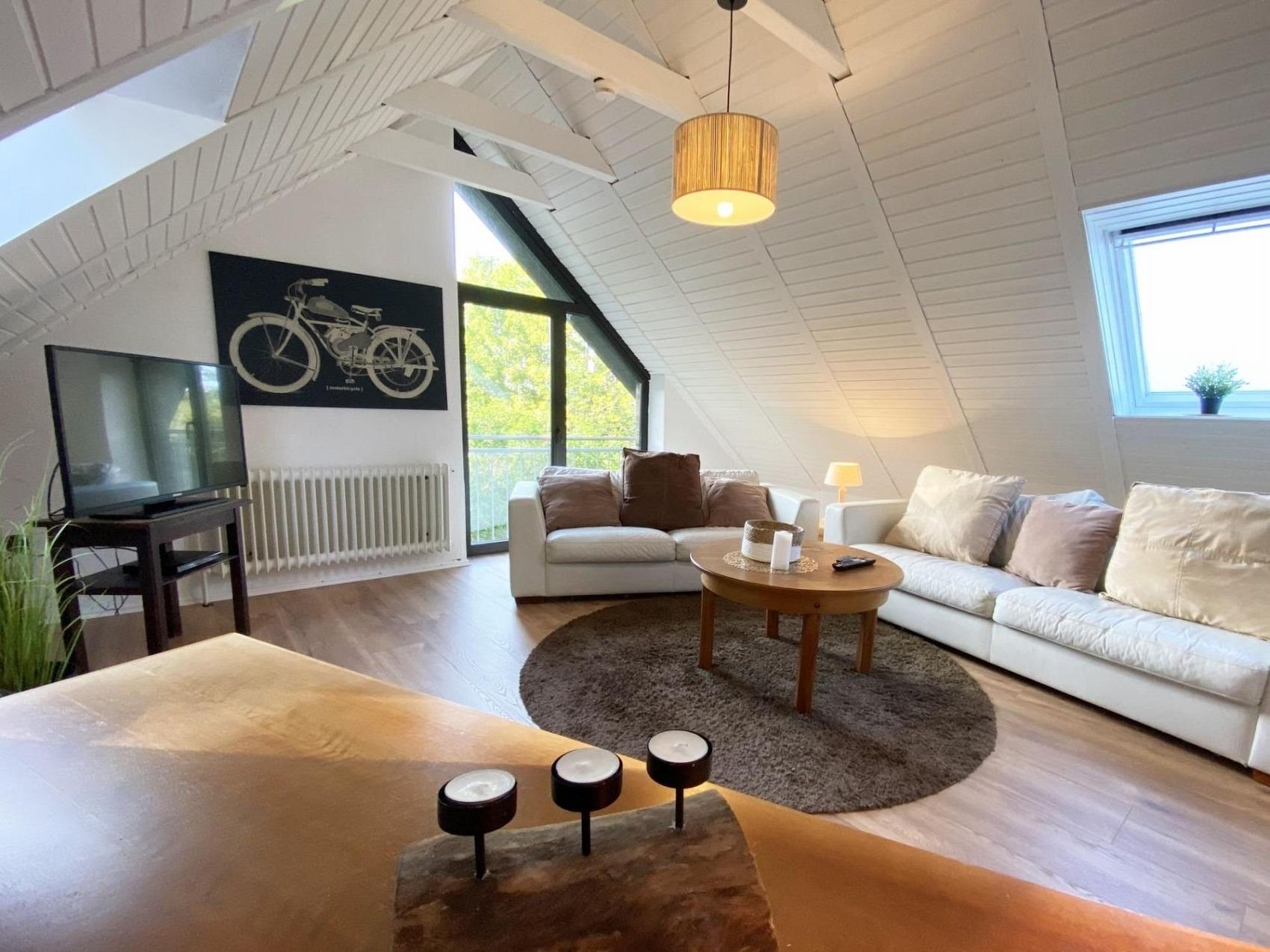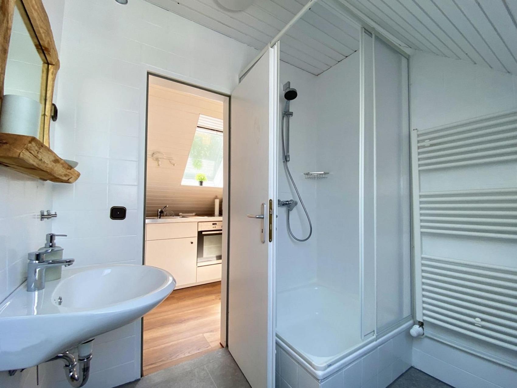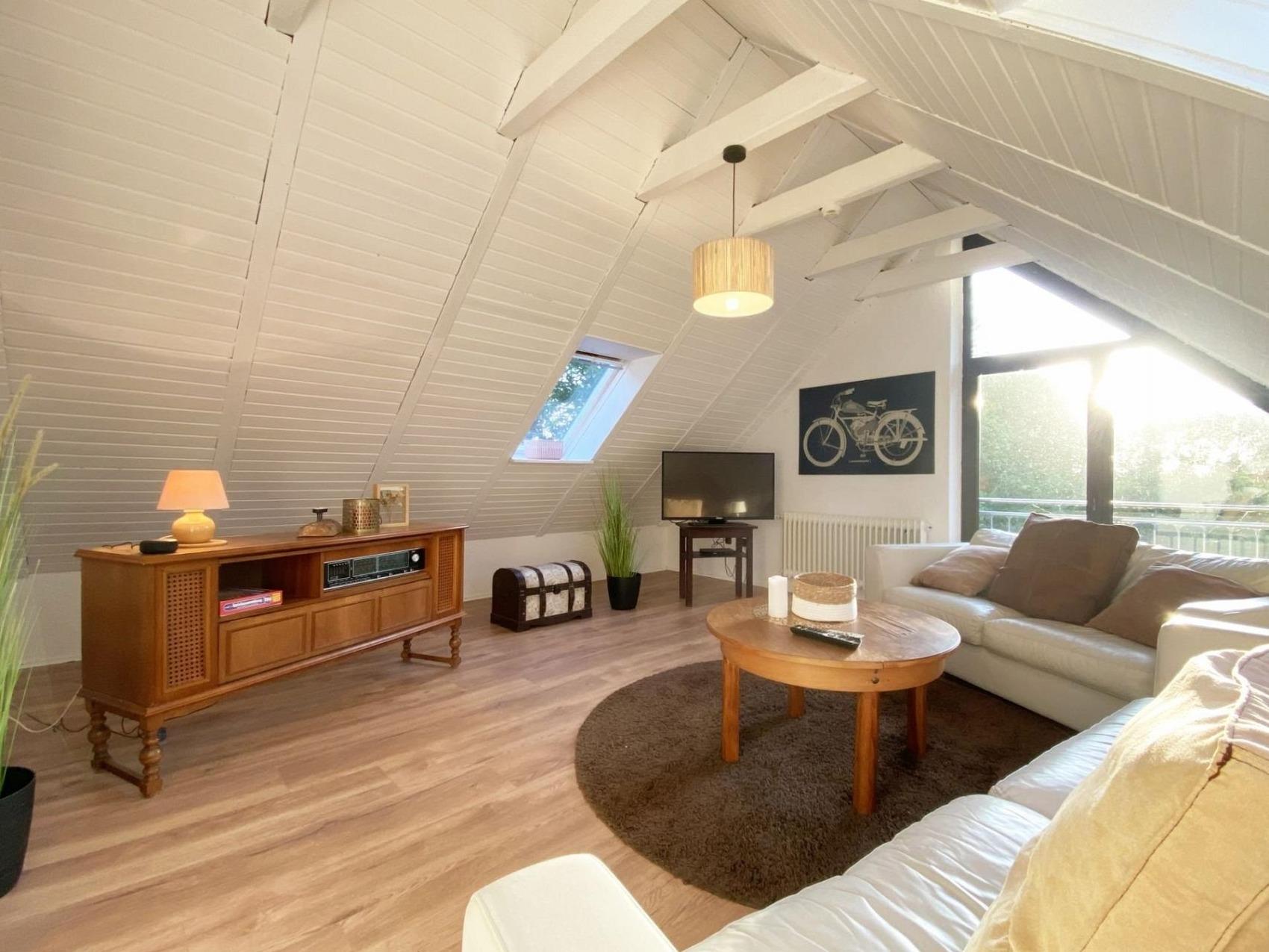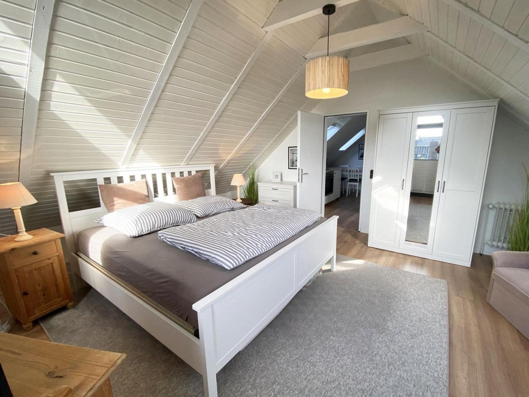 verbringen Sie Ihren Urlaub in unserer gemütlichen Apartment im Haus Wiesenweg, direkt im Herzen des touristisch geprägten Küstenbadeorts Horumersiel.Unser Ferienhaus liegt am Ende einer ruhigen Sackgasse, direkt am Kolksee.Die attraktive Ferienwohnung im Friesenstil ist fußläufig zum Dorfplatz und zum Strand. Erleben Sie Horumersiel zu Fuß oder mit dem Fahrrad. Die frisch renoviervte Wohnung mit ca 75m2 überzeugt durch Ihre freundliche Ausstattung, viel Licht, einem Tageslichtbadezimmer mit Dusche und einem Schlafzimmer mit großem Doppelbett. (Bitte denken Sie an ein großes Bettlaken 180x200cm, sofern Sie keinen Wäscheservice von uns buchen)Es steht im Wohnzimmer der Wohnung ein weiteres Bett (90x200cm) bereit.Bitte beachten Sie, die Wendeltreppe ins Dachgeschoss ist etwas steil.