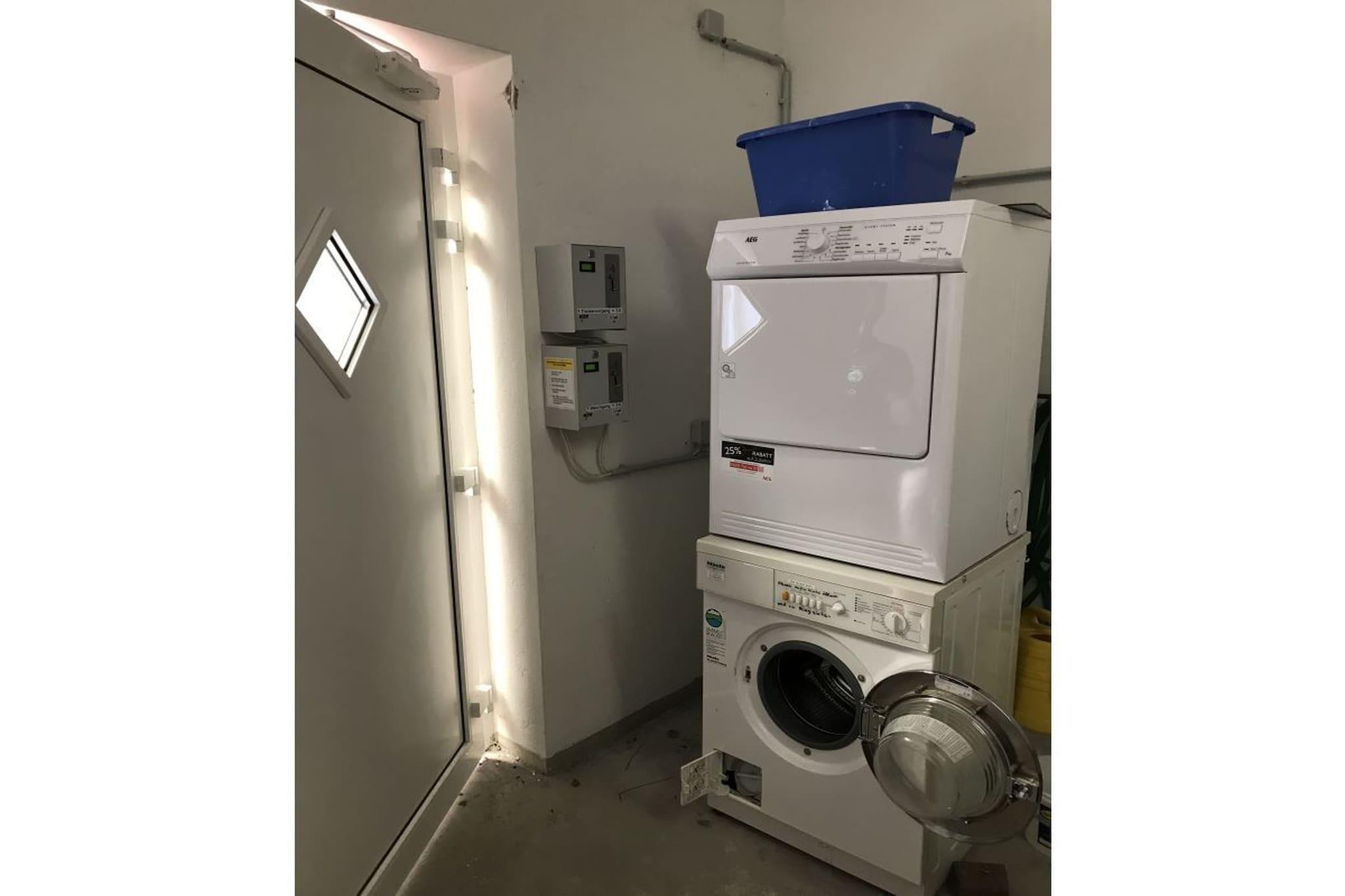 På 1. etage: (Stue(enkeltsovesofa, Fjernsyn, spisebord, radio, barnestol), Køkken(kakkelovn, kogeplade, elkedel, brødrister, kaffemaskine, ovn, mikrobølgeovn, opvaskemaskine , køleskab), soveværelse(enkeltseng, dobbeltseng), soveværelse(dobbeltseng, dobbeltseng), badeværelse(bruser, håndvask, toilet)) balkon, havemøbler, parkering, Parasol, strygejern