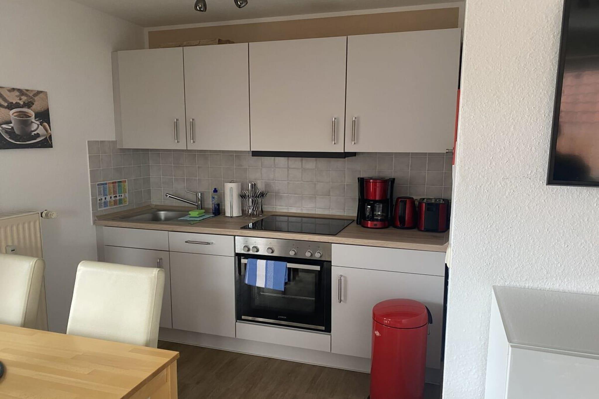 Ferielejligheden ligger på 1. sal og har 2 soveværelser, badeværelse og opholdsstue med tekøkken og spiseplads. Ferielejligheden har altan. Vaske- og tørrefaciliteter samt opbevaringsrum til cykler er til rådighed.