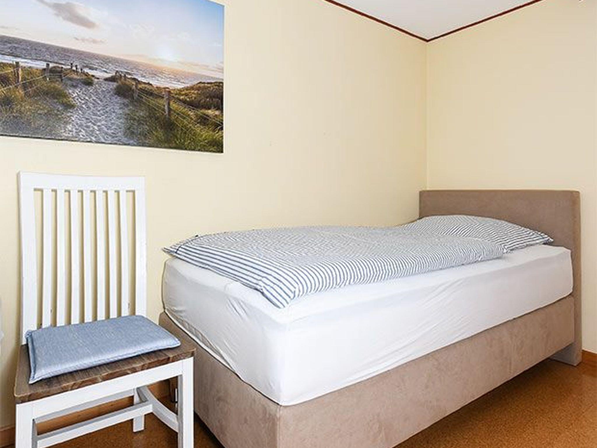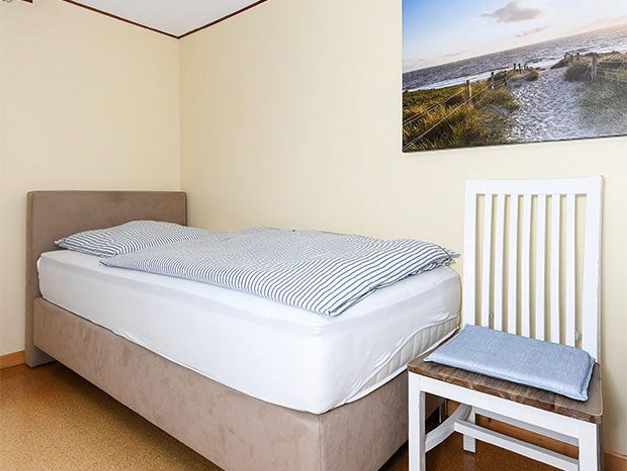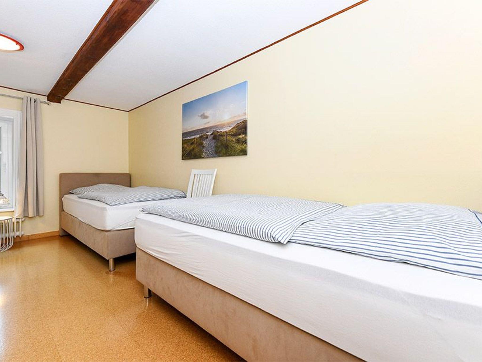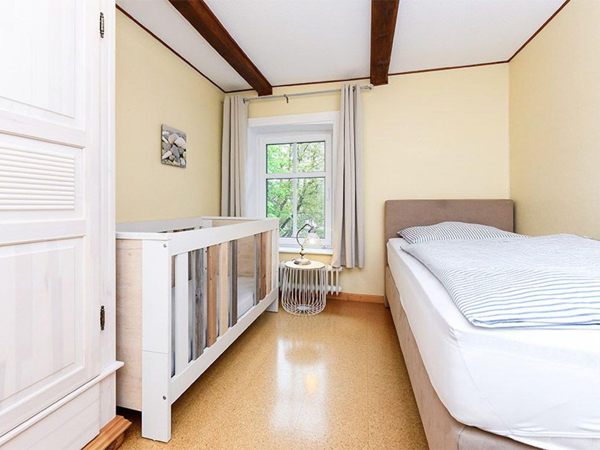 Größe ca. 60 Quadratmeter, Wohnraum mit integrierter Küche, Schlafzimmer, zweites separates Schlafzimmer/Kinderzimmer, Badezimmer mit Dusche, Waschtisch und WC, Obergeschoss, optimal für 2 bis 4 Personen.