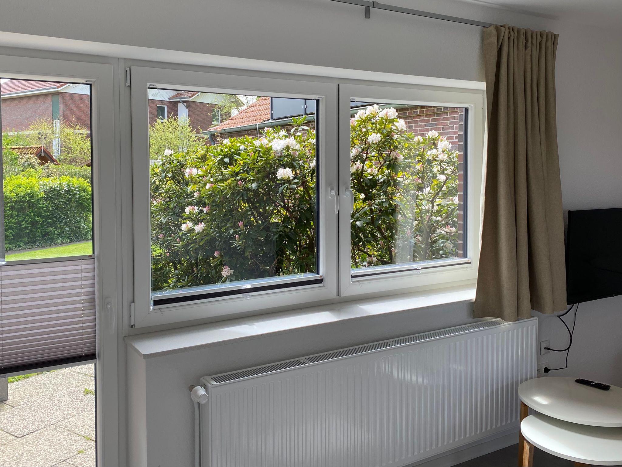 In unserer Ferienanlage Seeschwalbe in Schillig befindet sich das etwa 38 qm große 1-Raum-Appartement im Erdgeschoss mit einem 180 x 200 cm Doppelbett, Sofa, kleinem Esstisch, Küchenzeile (Mit Backofen, Spülmaschine, Toaster, Senseo Kaffeepadmaschine + Filterkaffeemaschine, Wasserkocher) und Duschbad. Die Wohnung ist für bis zu 2 Personen geeignet. Das Appartement hat eine überdachte Terrasse mit Blick in unseren Garten.