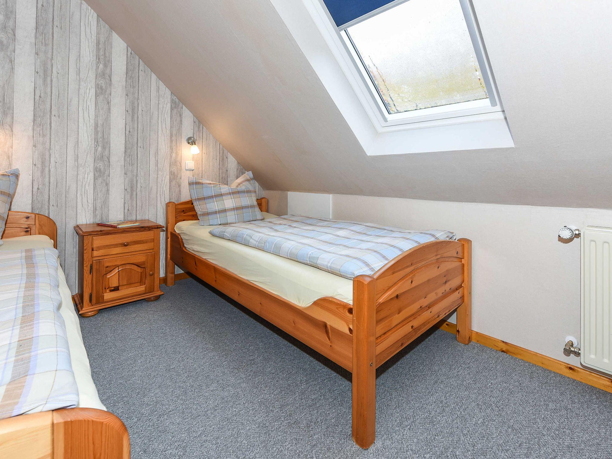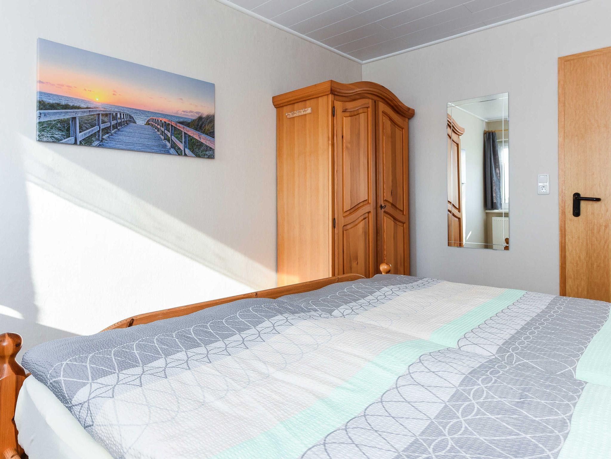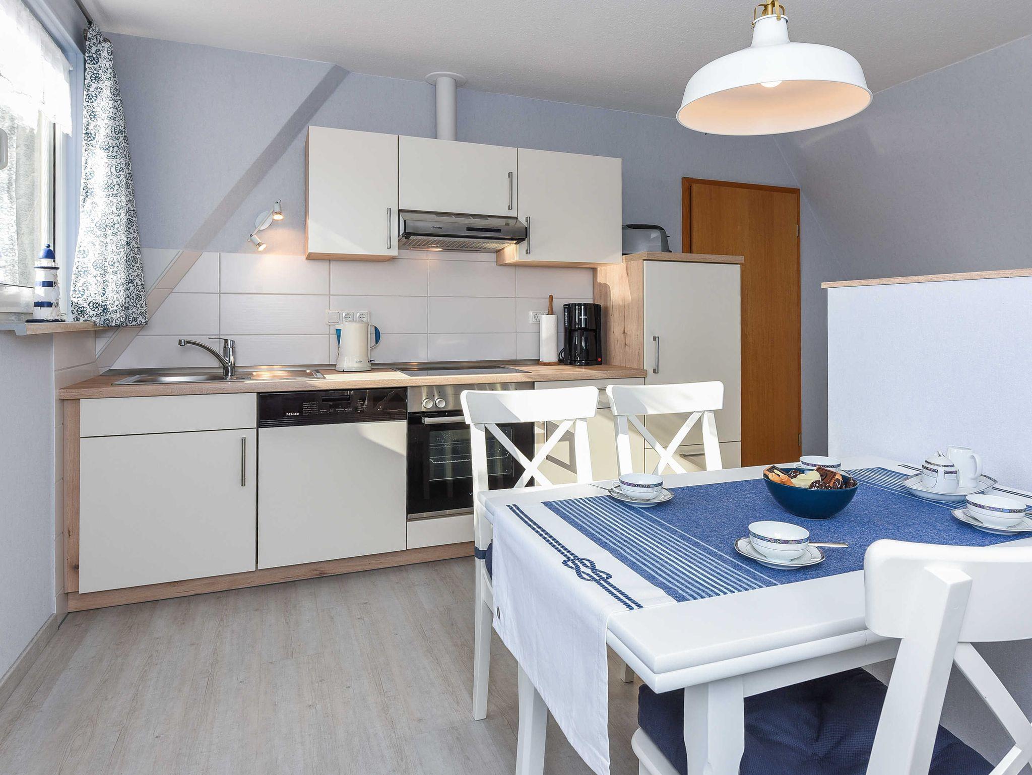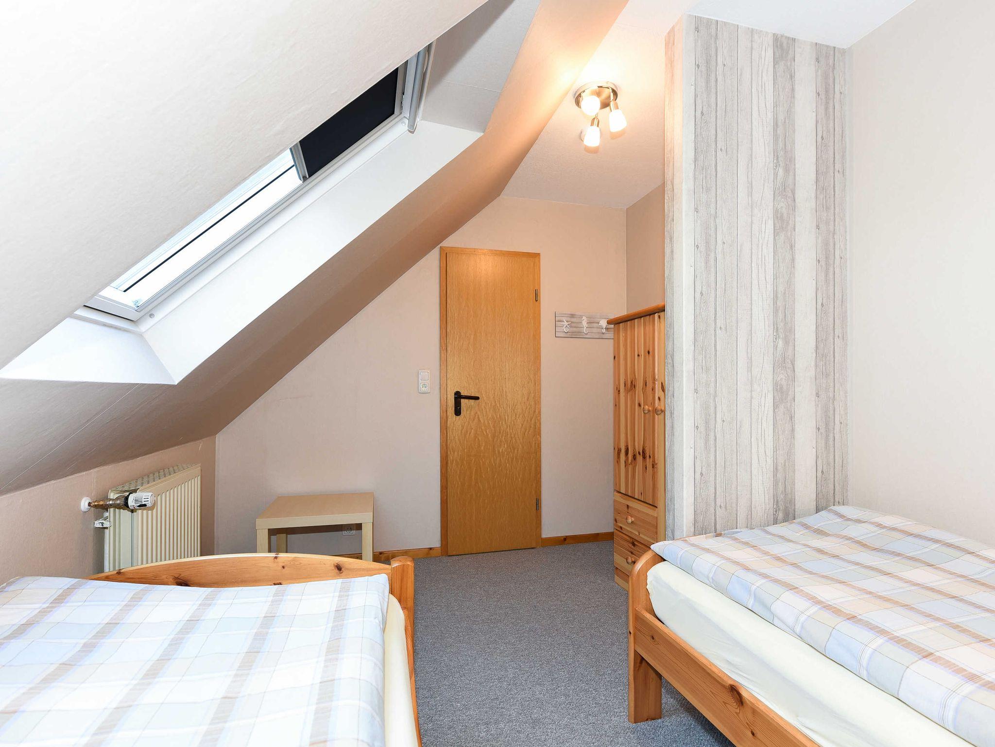 Größe ca. 65 Quadratmeter, Wohnraum mit integrierter Küche, Schlafzimmer, zweites separates Schlafzimmer, Badezimmer mit Dusche, Waschtisch und WC, Obergeschoss, Parkplatz (reserviert), optimal für 2 bis 4 Personen.