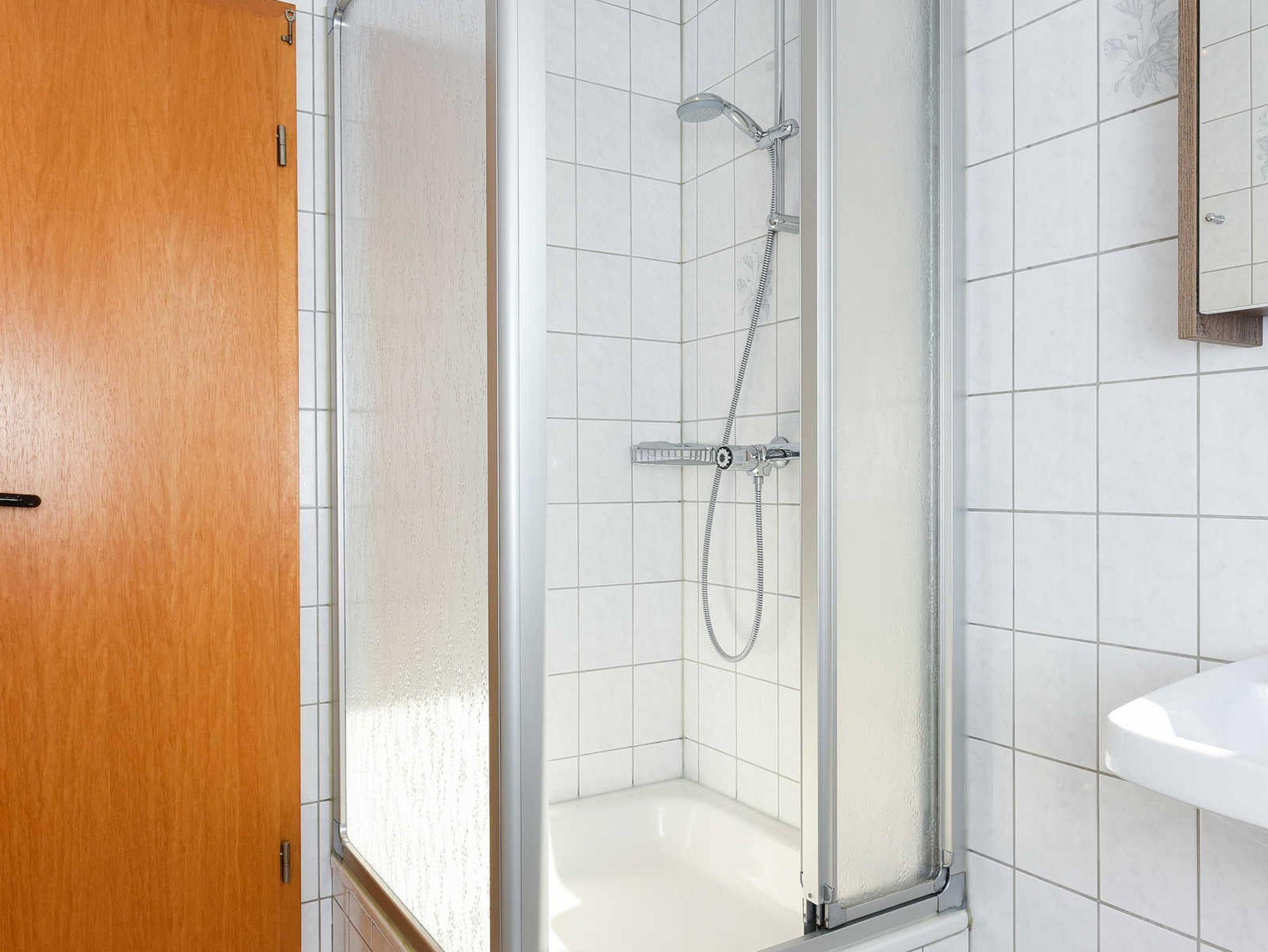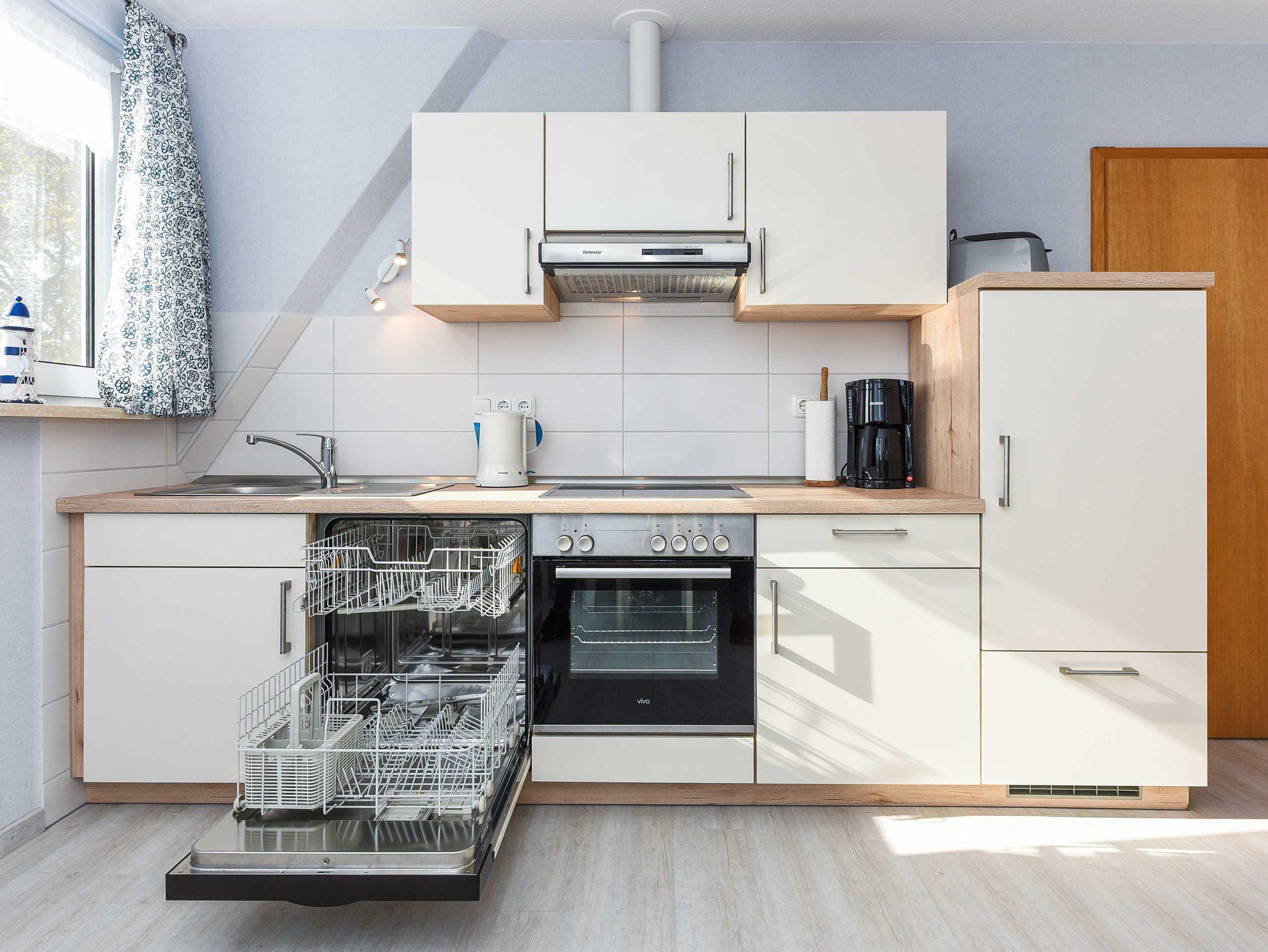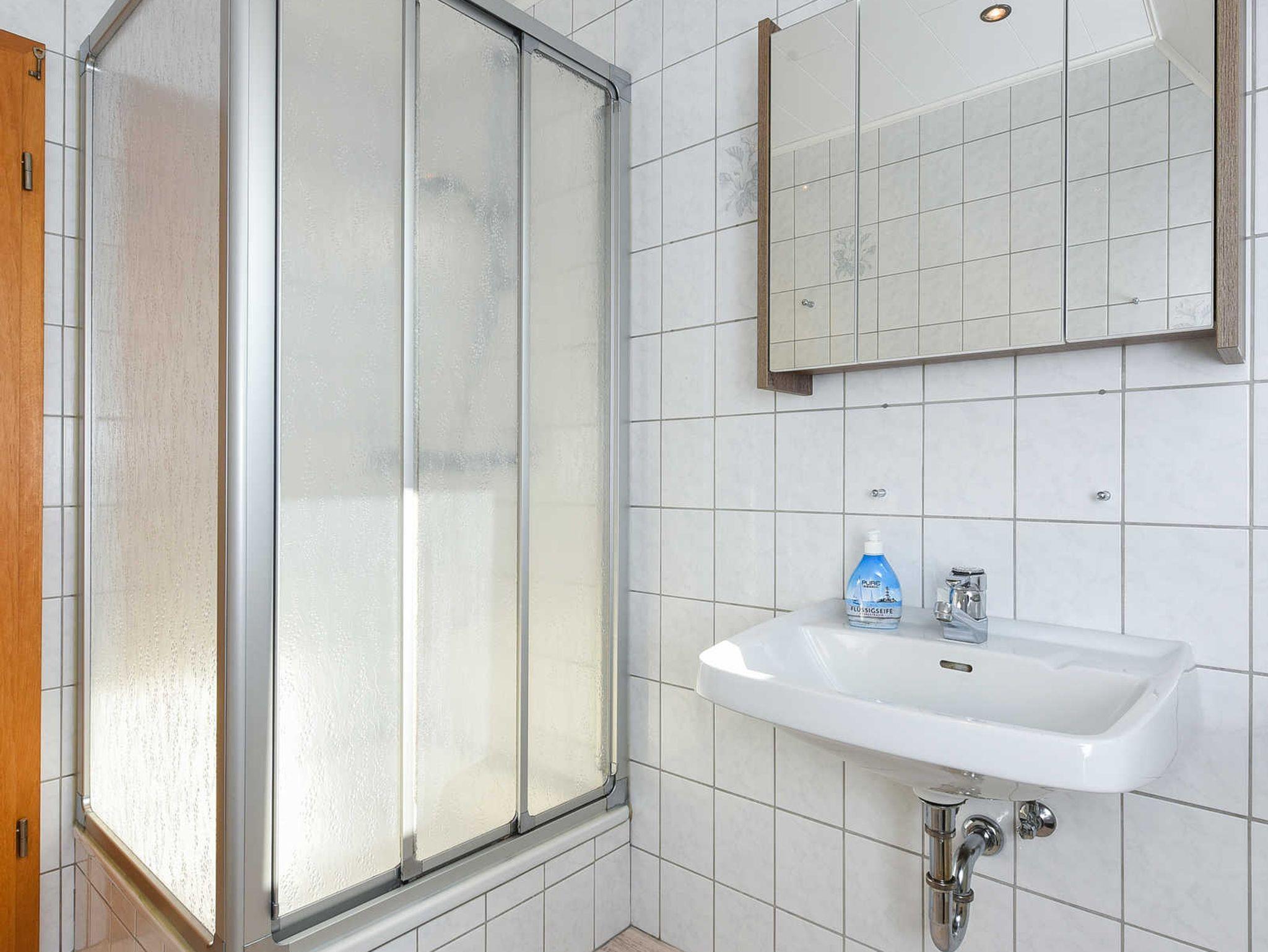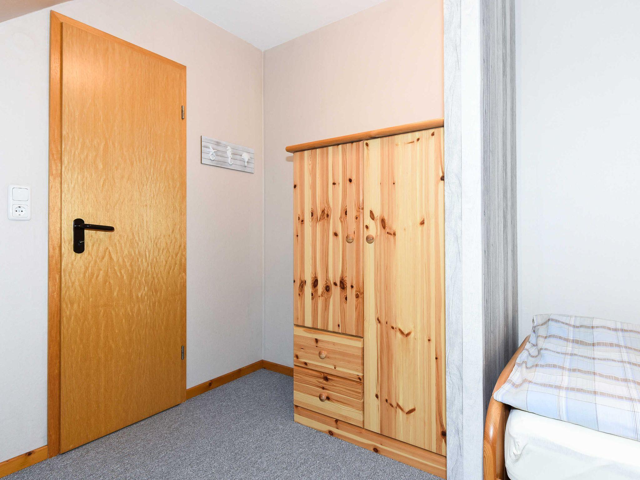 Größe ca. 65 Quadratmeter, Wohnraum mit integrierter Küche, Schlafzimmer, zweites separates Schlafzimmer, Badezimmer mit Dusche, Waschtisch und WC, Obergeschoss, Parkplatz (reserviert), optimal für 2 bis 4 Personen.