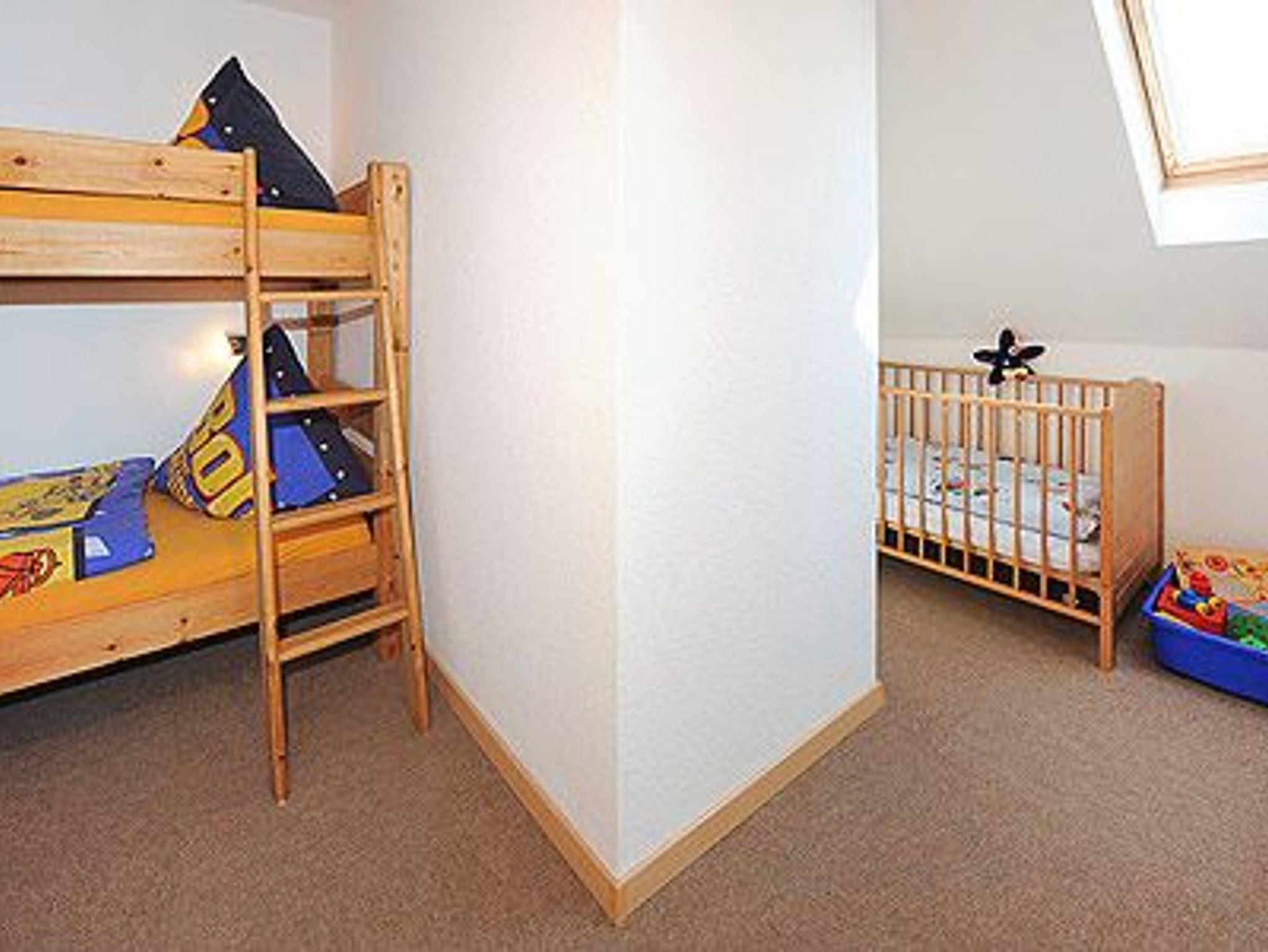 Größe ca. 80 Quadratmeter, Wohnraum mit integrierter Küche, Schlafzimmer, zweites separates Schlafzimmer/Kinderzimmer, Kinderzimmer, Badezimmer mit Badewanne (mit Dusche), Waschtisch und WC, Obergeschoss, Terrasse, optimal für 2 bis 6 Personen und zusätzlich ein Kleinkind.
