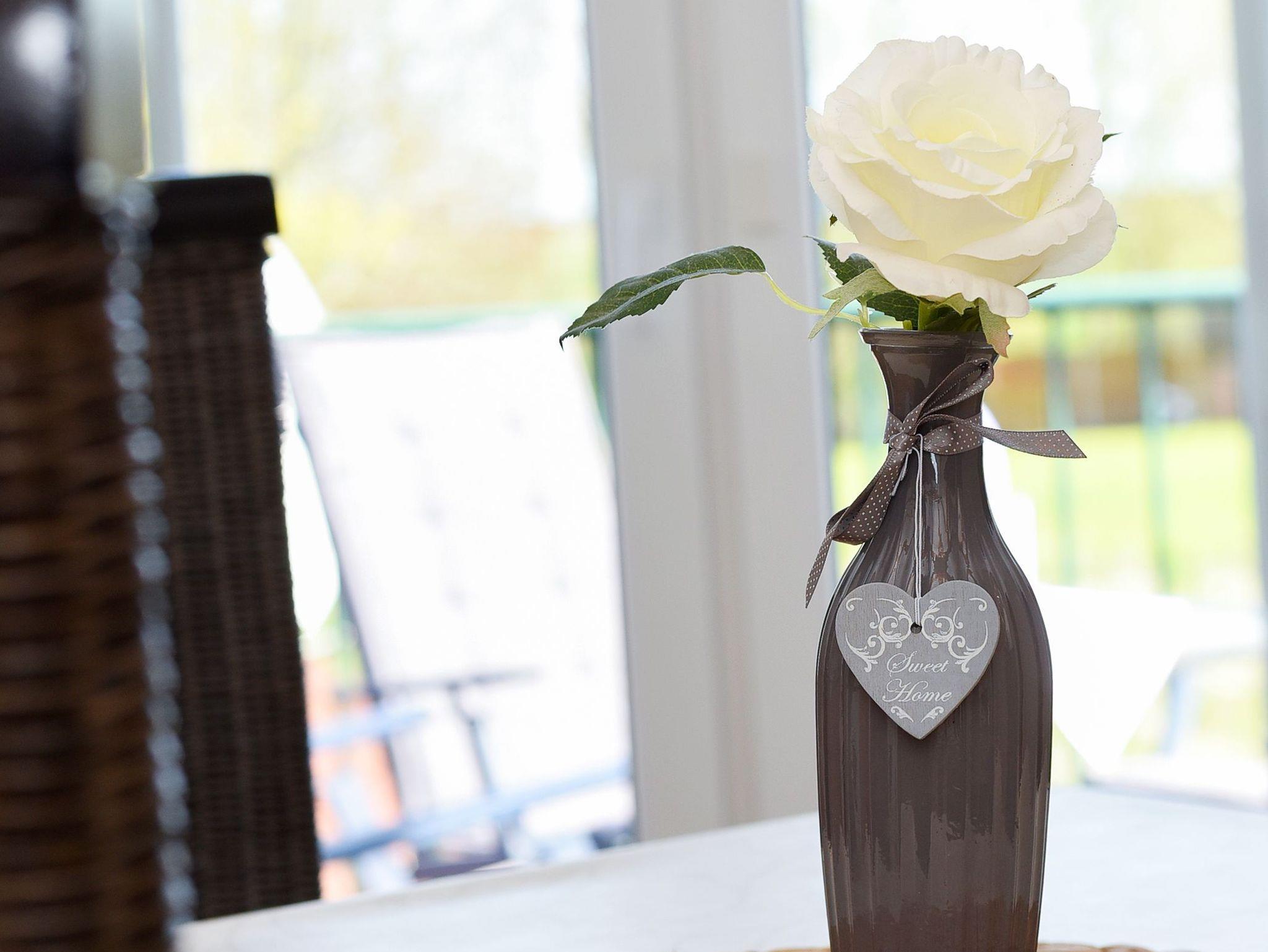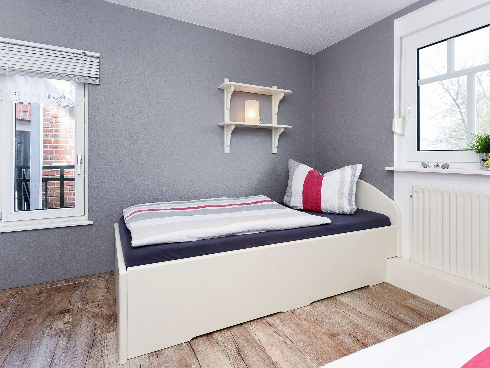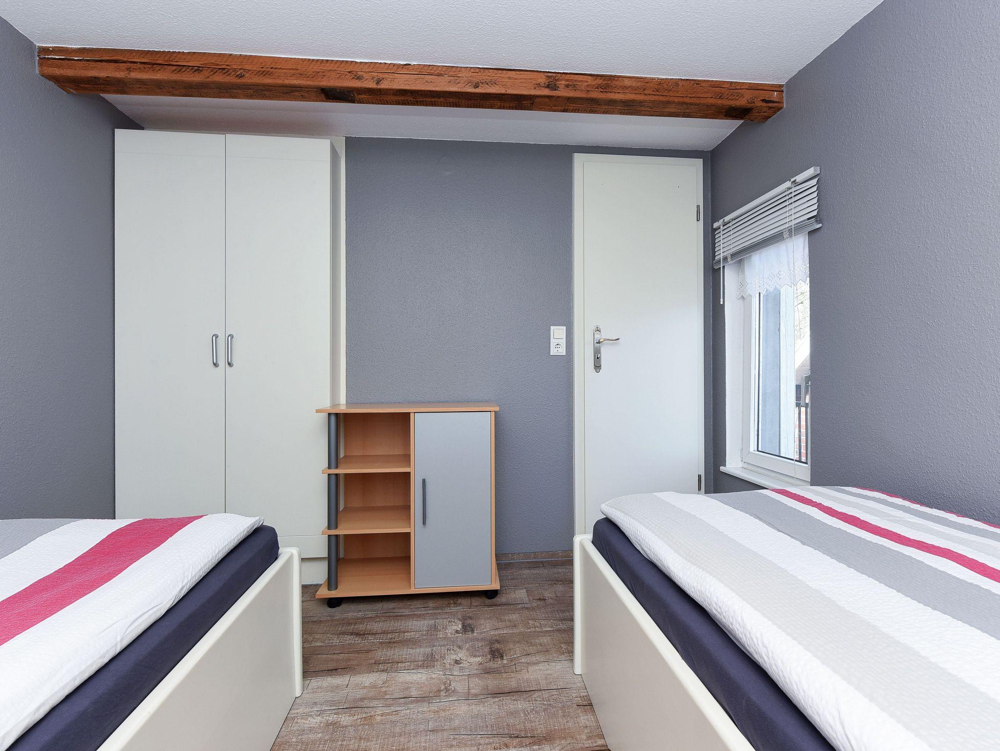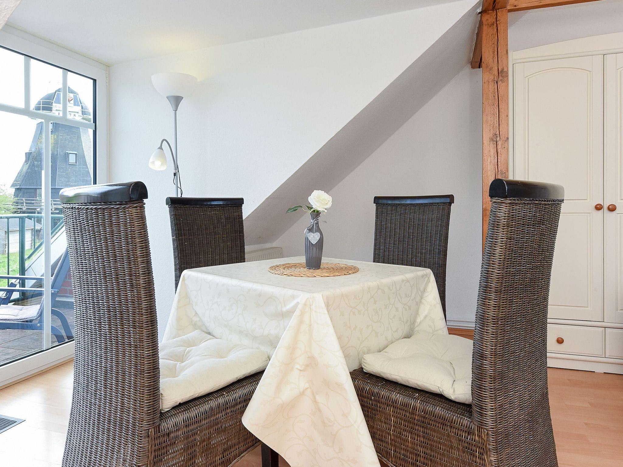 Größe ca. 60 Quadratmeter, Wohnraum mit integrierter Küche, Schlafzimmer, zweites separates Schlafzimmer/Kinderzimmer, Badezimmer mit Dusche, Waschtisch und WC, Obergeschoss, Gartennutzung, Waschmaschine, optimal für 2 bis 4 Personen und zusätzlich ein Kleinkind.