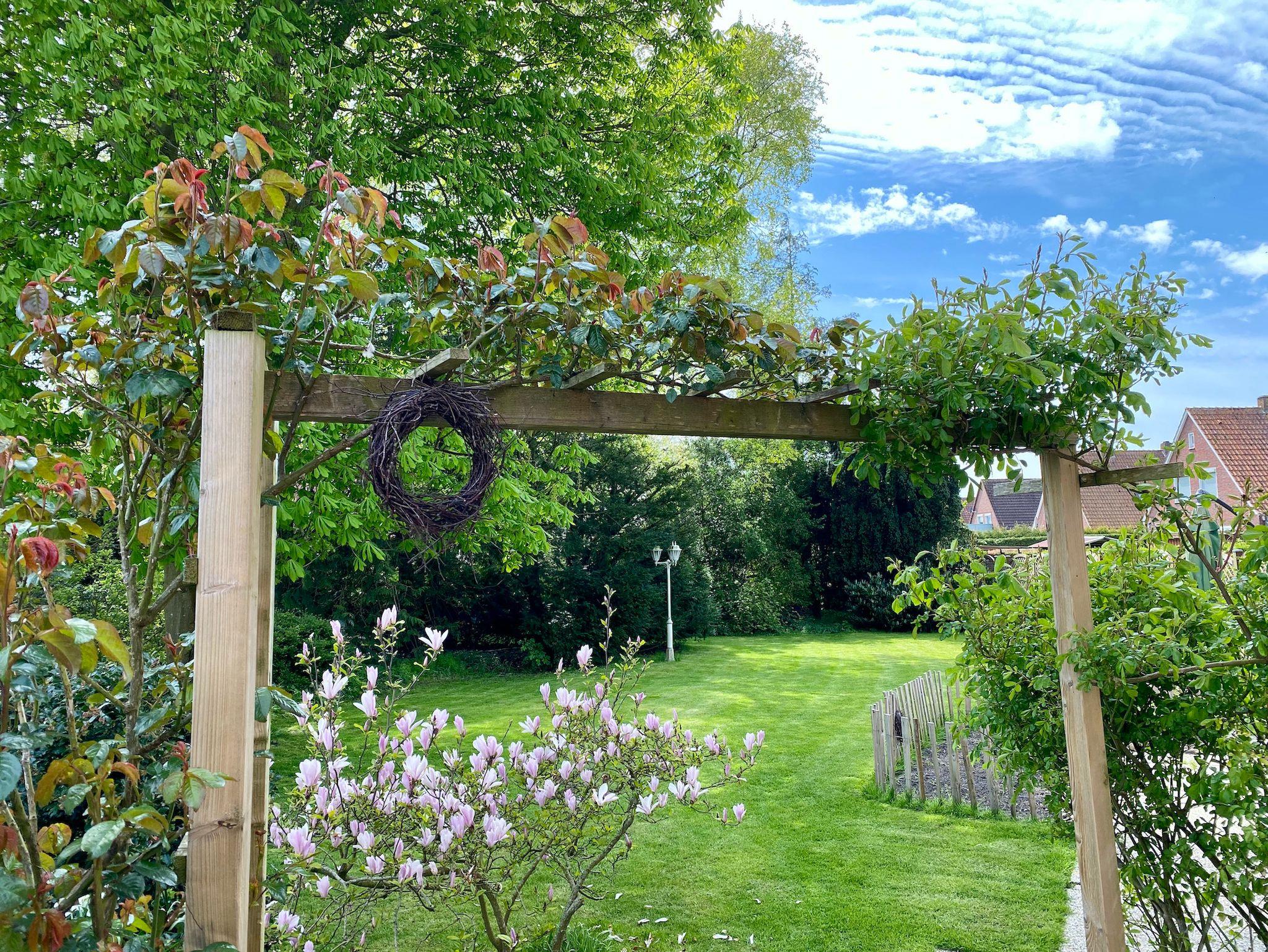 Im Garten befindet sich ein kleiner Grillplatz mit einem Steinofengrill. Außerdem haben wir zwei Bollerwagen, die von unseren Gästen gerne benutzt werden dürfen. Für jede Wohnung steht ein Pkw-Stellplatz direkt vor dem Haus zur Verfügung. Auch für Ihre Fahrräder gibt es einen trockenen Unterschlupf in unserer Garage.