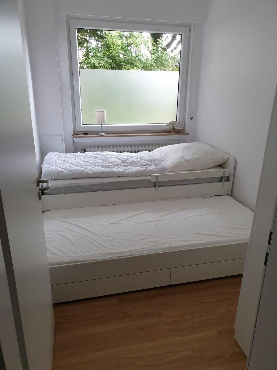 Ein Video von der Wohnung finden Sie unter folgendem Link: https://www.youtube.com/watch?v=RqB_KrCsjssDie moderne Ferienwohnung mit einer Wohnfläche von ca. 97 m², für max. 8 Personen liegt im Erdgeschoss eines Zweifamilienhauses in einer Sackgasse. Sie liegt nur wenige Minuten vom Meer, Strand, Hafen, Einkaufsmöglichkeiten und Schwimmbad entfernt. Sie verfügt über 3 Schlafzimmer die wie folgt aufgeteilt sind: Ein großes Elternschlafzimmer mit einem Boxspringbett 180x200 cm Bett und einem Kinderbett. Das zweite Schlafzimmer hat ein 160x200 cm großes Bett und das dritte Schlafzimmer hat ein Ausziehbett das sich von 90x200 auf 180x200 auf einer zweiten Ebene erweitern lässt. Im Wohnzimmer befindet sich zusätzlich ein Schlafsofa 140x200 cm, welches für zwei weitere Personen eine Schlafmöglichkeit bietet. Die Küche ist von dem großen Wohnzimmer abgetrennt. Es ist ein Gäste-WC und ein Badezimmer mit Dusche und Badewanne vorhanden. Im Abstellraum finden Sie eine Waschmaschine. Zwei Terrassen laden zum Sonnenbaden oder gemütlichen Beisammensein zu jeder Tageszeit ein. An unsere kleinen Feriengäste haben wir auch gedacht. Die Steckdosen haben einen erhöhtem Berührungsschutz. Spiele, Bücher, Spielzeug und eine Kinderküche sind vorhanden.Mit Rücksicht auf die nicht rauchenden Feriengäste und Allergiker haben wir die Ferienwohnung zur "rauchfreien und tierfreien Zone" erklärt. Selbstverständlich ist das Rauchen auf den beiden Terrassen gestattet. Die Ferienwohnung liegt in einer Sackgasse, dort finden Sie auch Ihren Parkplatz für Ihr Auto. Ebenso gibt es eine abschließbaren Garage wo Sie z.B. Ihre Fahrräder unterbringen können.