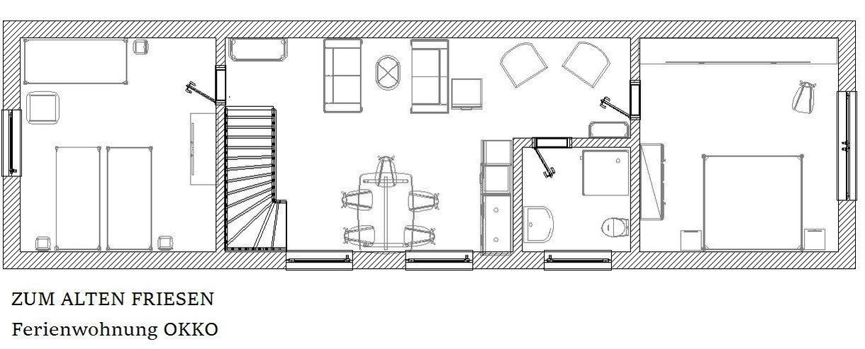 Herzlich Willkommen in der gemütlichen Fewo OKKO in Wangerland. Unser Ferienhaus "Zum alten Friesen" befindet sich naturnah vor den Toren Hooksiels. In dieser Fewo finden Sie eine Wohnraum mit offener Küche, 2 Schlafzimmer und 1 Dusch-Bad.