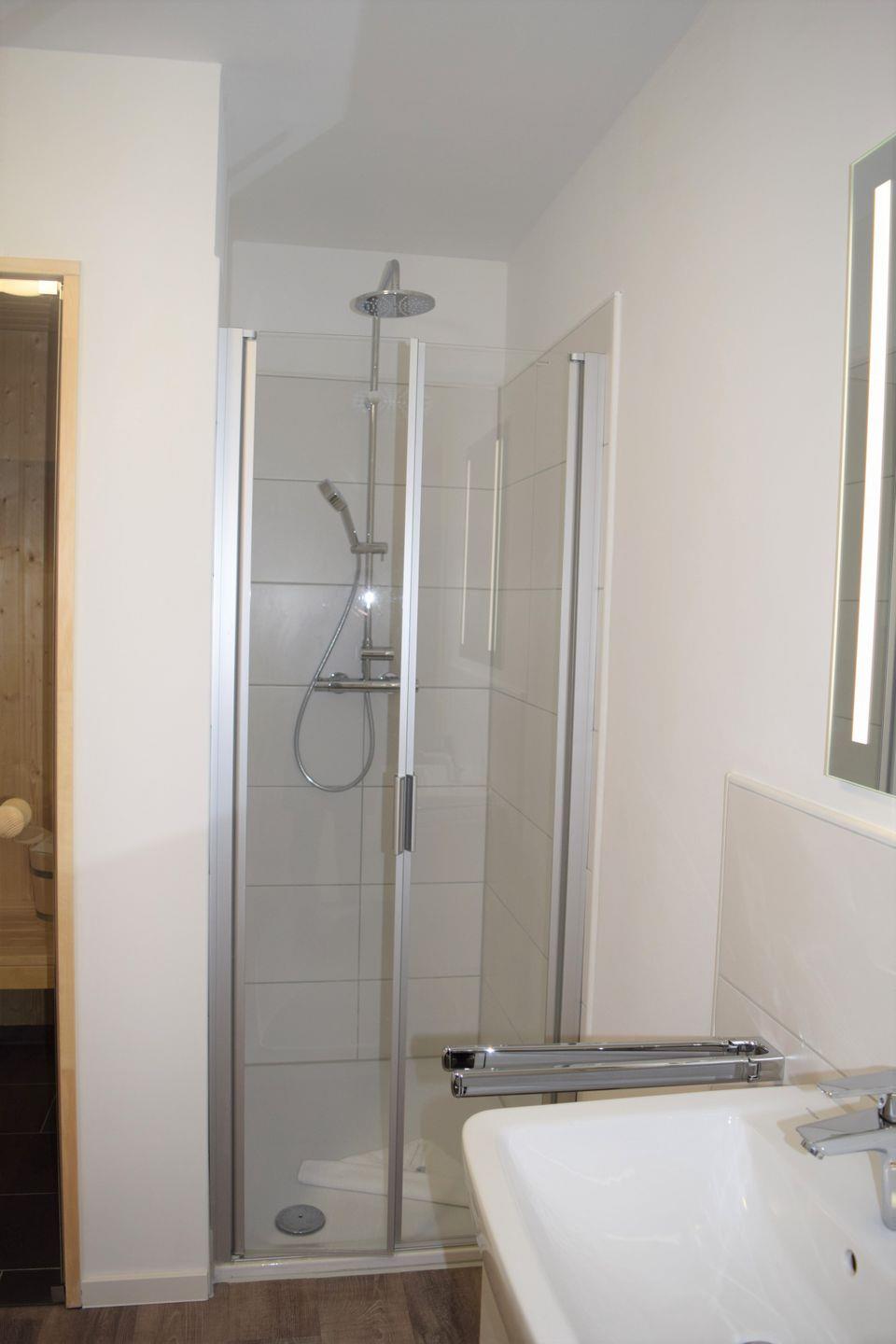 Eine Sauna, eine Regendusche und eine Badewanne bieten den nötigen Komfort zur Erholung. Saunadüfte für Ihre persönlichen Saunamomente können Sie an unserer Rezeption erwerben.