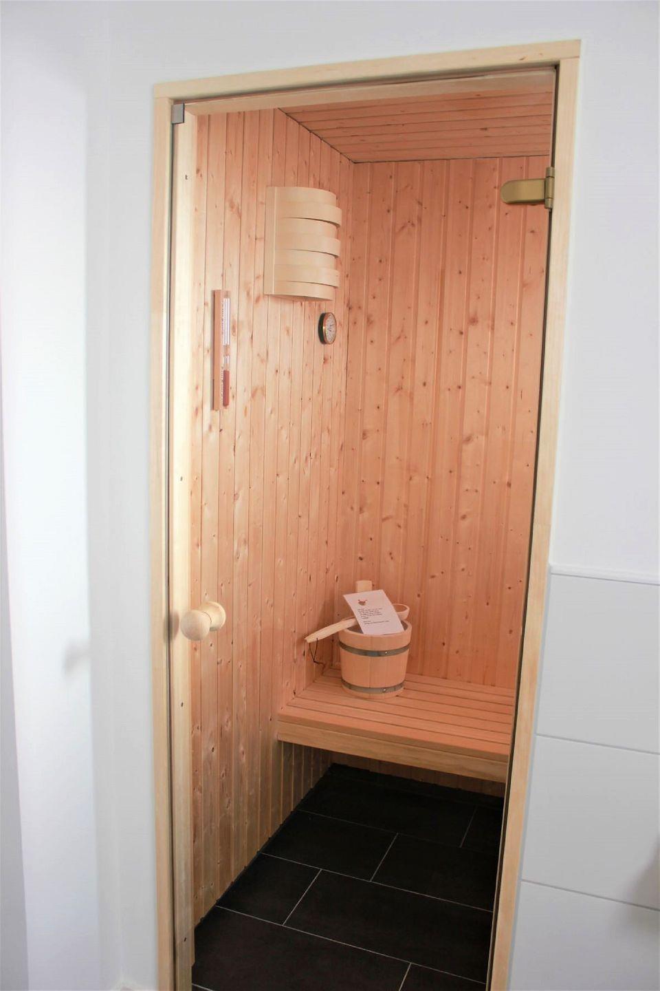 Eine Sauna, eine Regendusche und eine Badewanne bieten den nötigen Komfort zur Erholung. Saunadüfte für Ihre persönlichen Saunamomente können Sie an unserer Rezeption erwerben.
