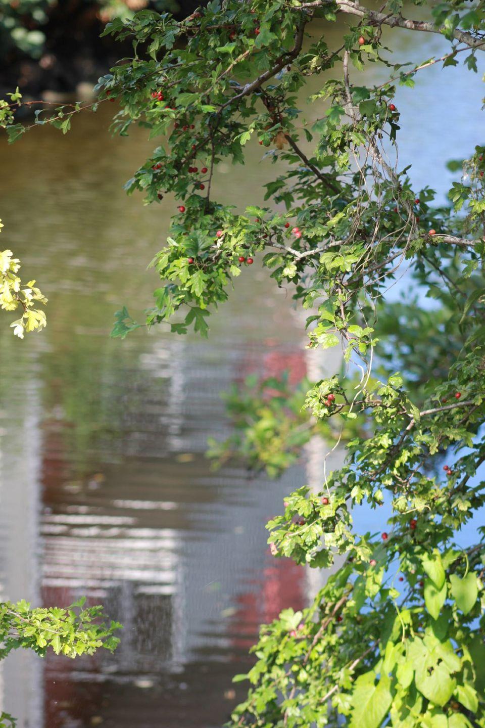 Ein großzügiger, möblierter und überdachter, nach Süden zum Wasserlauf ausgerichteter Balkon lädt zum Verweilen ein.